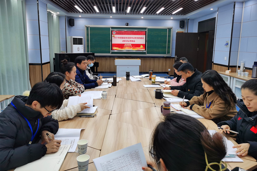 会上,奚泰来向与会人员介绍2021年度基层党支部书记抓党建述职考核工作的要求和范围、主要内容和工作安排,并对参与现场述职的4个支部做了简单的介绍,要求所有参会考评支部书记,针对他们各自述职以及在深入学习、履行职责、党史学习教育、“三会一课”活动开展,尤其是特色做法、培养党员典型和党员发挥模范作用等方面工作实际进行考核评价。