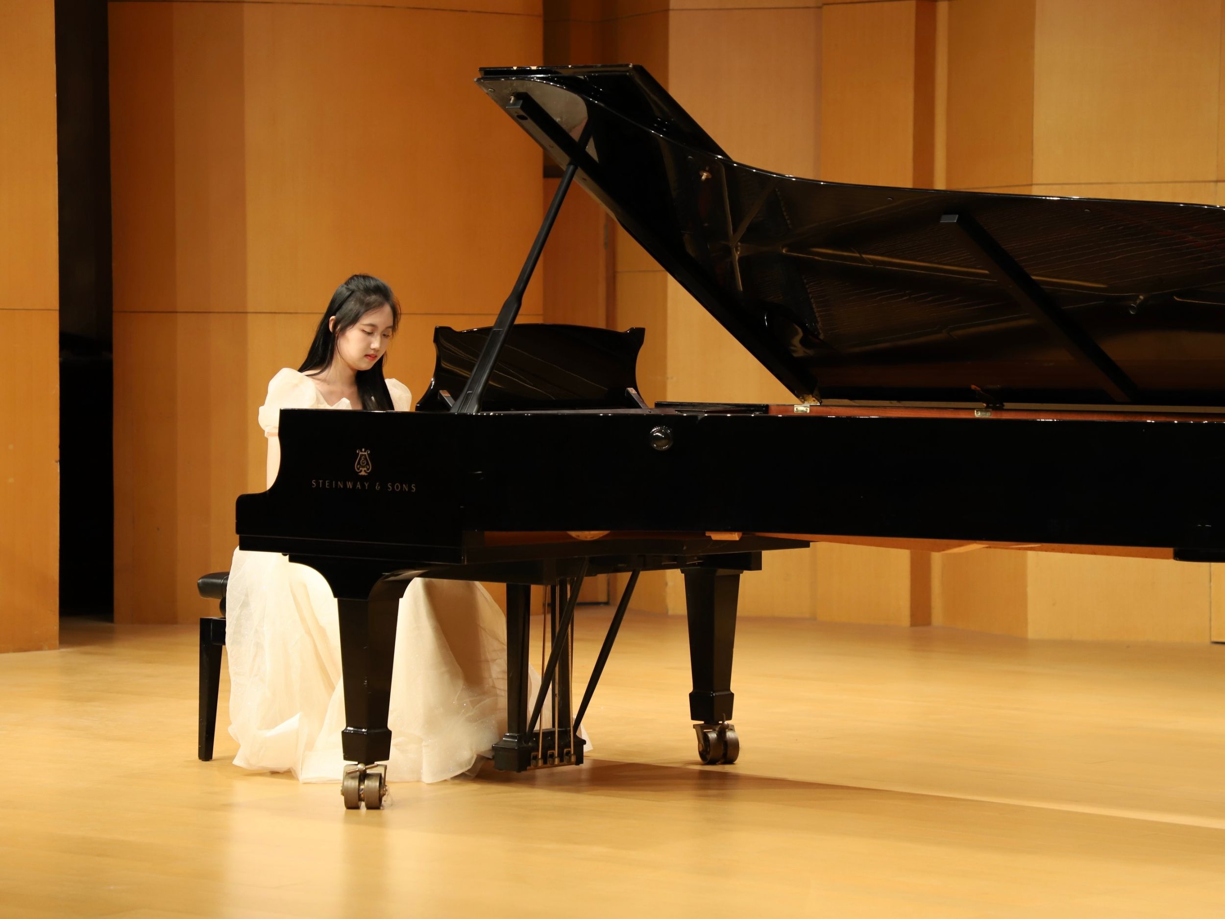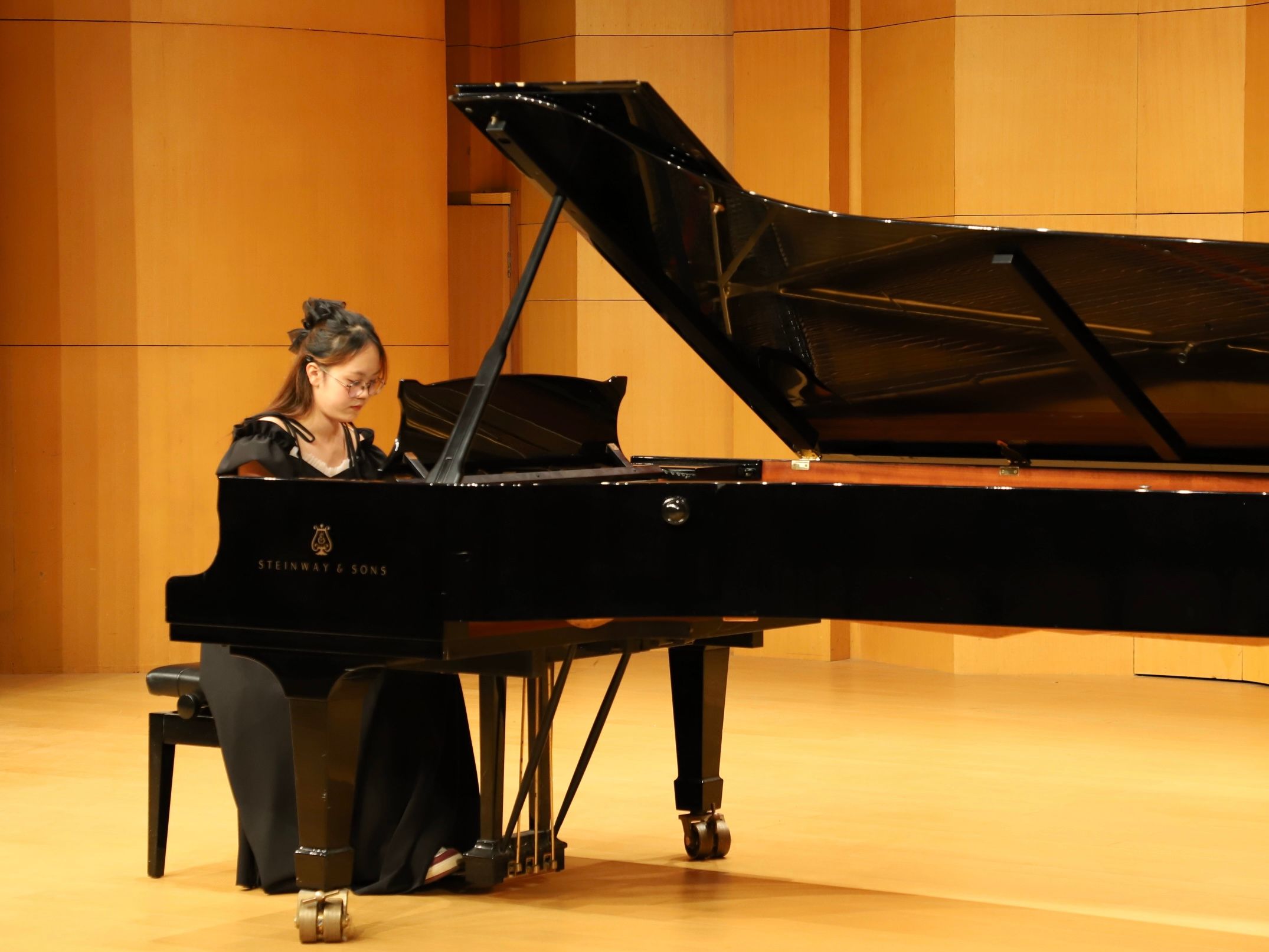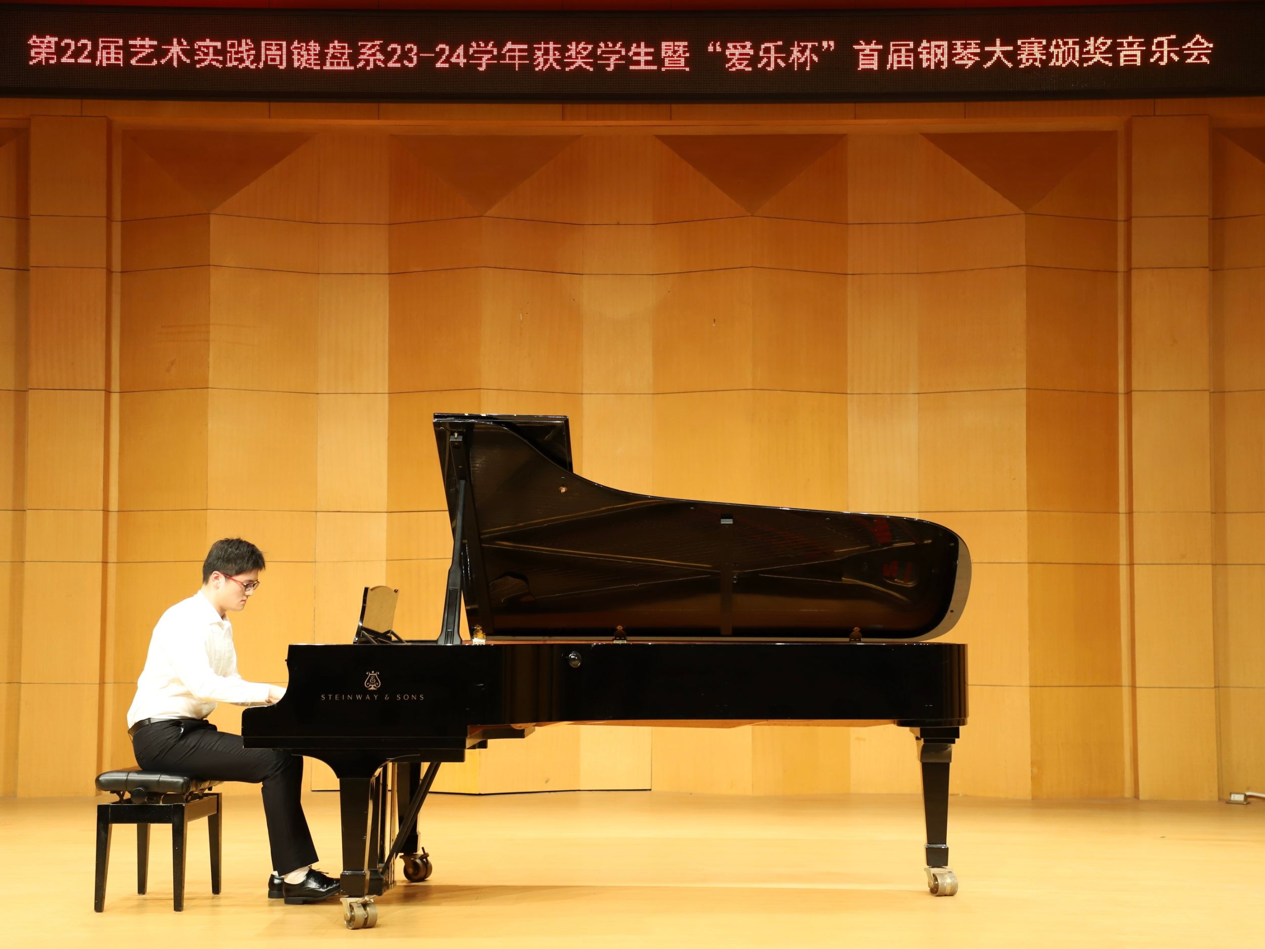 颁奖典礼结束后,音乐会由获奖同学演奏作曲家张朝的钢琴作品《皮黄》拉开序幕。从古典的优雅到现代的激情,有西方多种时期与风格的作品如《月光》《爱之梦》等,也有民族音乐元素及风格鲜明的中国作品《春舞》《努玛阿美》等,整场音乐会曲目风格各异、主题色彩突出,为台下观众带来了一场别开生面的钢琴艺术盛宴。