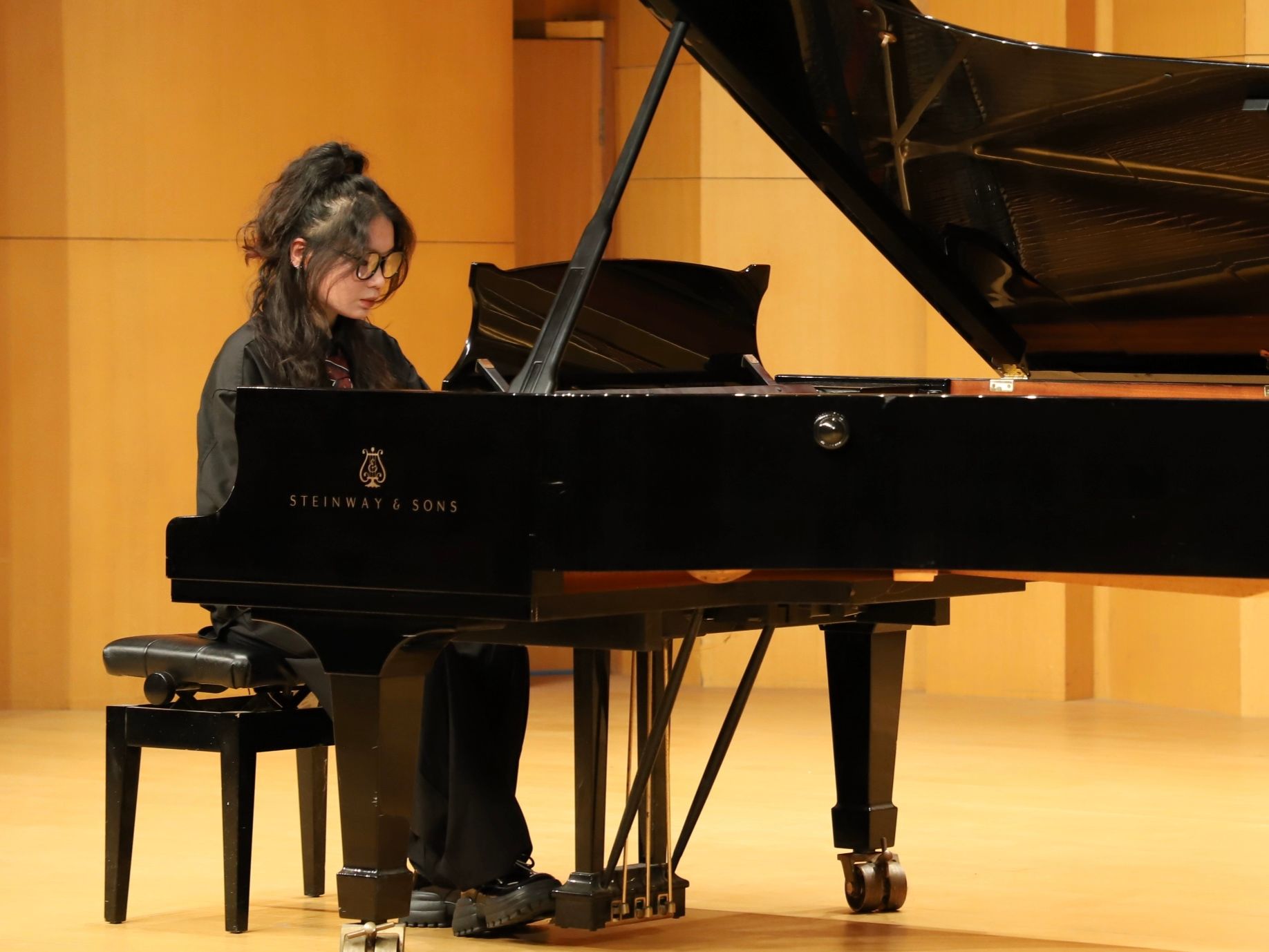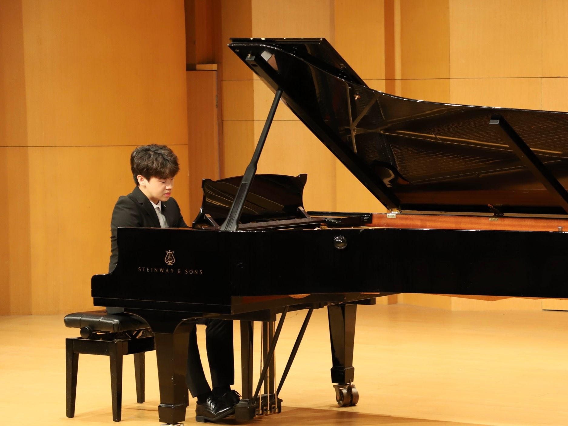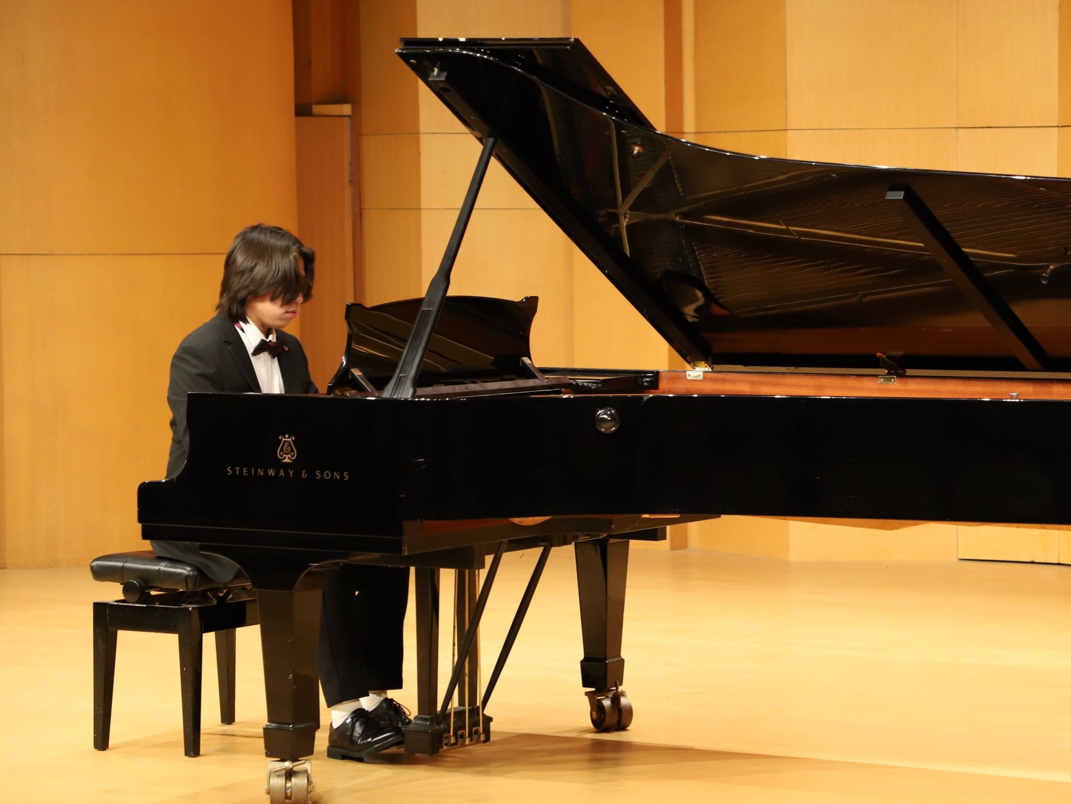 颁奖典礼结束后,音乐会由获奖同学演奏作曲家张朝的钢琴作品《皮黄》拉开序幕。从古典的优雅到现代的激情,有西方多种时期与风格的作品如《月光》《爱之梦》等,也有民族音乐元素及风格鲜明的中国作品《春舞》《努玛阿美》等,整场音乐会曲目风格各异、主题色彩突出,为台下观众带来了一场别开生面的钢琴艺术盛宴。