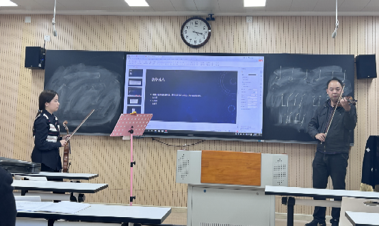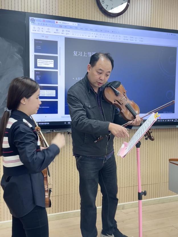 教学过程中,袁老师为同学做了多次示范演奏,使员工能更深刻的领会演奏中强弱对比、揉弦技巧、跳弓等技巧的运用,对旋律情感、动态、歌唱性和表现力的表达效果,并要求员工课后多加练习,熟练运用。