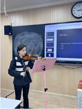 袁老师所授课程为《个别课(器乐)-小提琴》,本次示范观摩课曲目为莫扎特《A大调第五小提琴协奏曲(K.219)》第一乐章。袁泉老师通过对上节课的课程回顾,引入本节课的教学内容,强调莫扎特的《A大调第五小提琴协奏曲(K.219)》第一乐章以其爽朗的快板、清晰的结构和精湛的旋律构建而著称,在演奏过程中要特别注意旋律的流畅性,使得旋律既有歌唱性,又富有表现力,能够直接触动听众的情感;要想表现出流畅自然就要在换弦过程中注意衔接,以及右手胳膊与弓子的配合,同时注意节奏和动态的对比,演奏古典主义时期的作品节奏要与谱面保持一致严丝合缝。