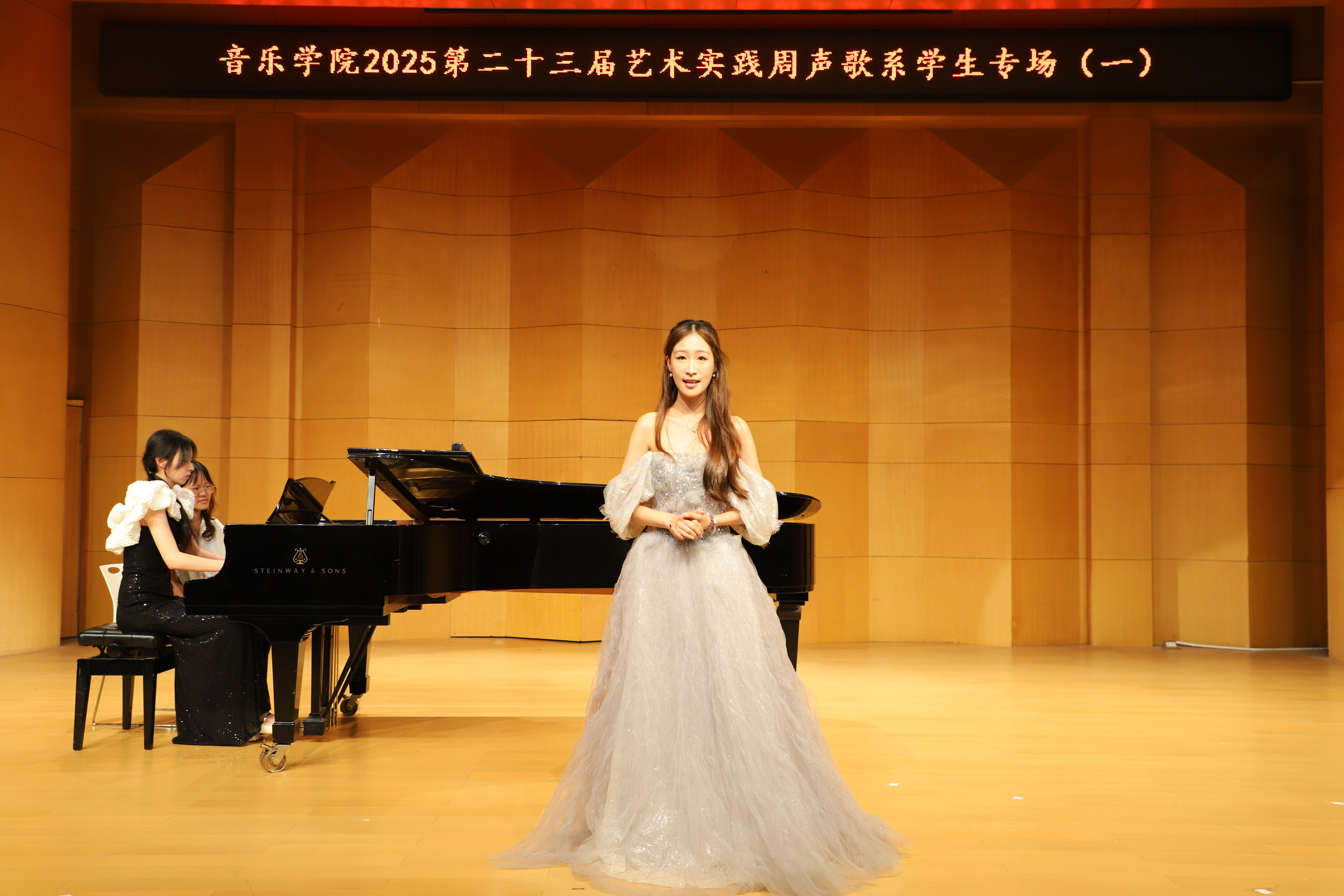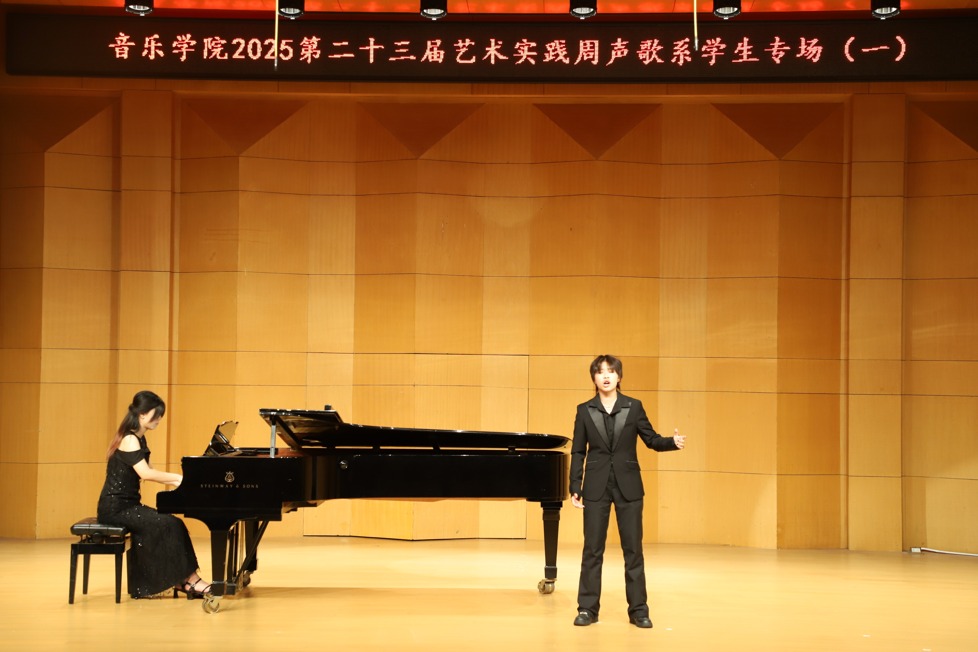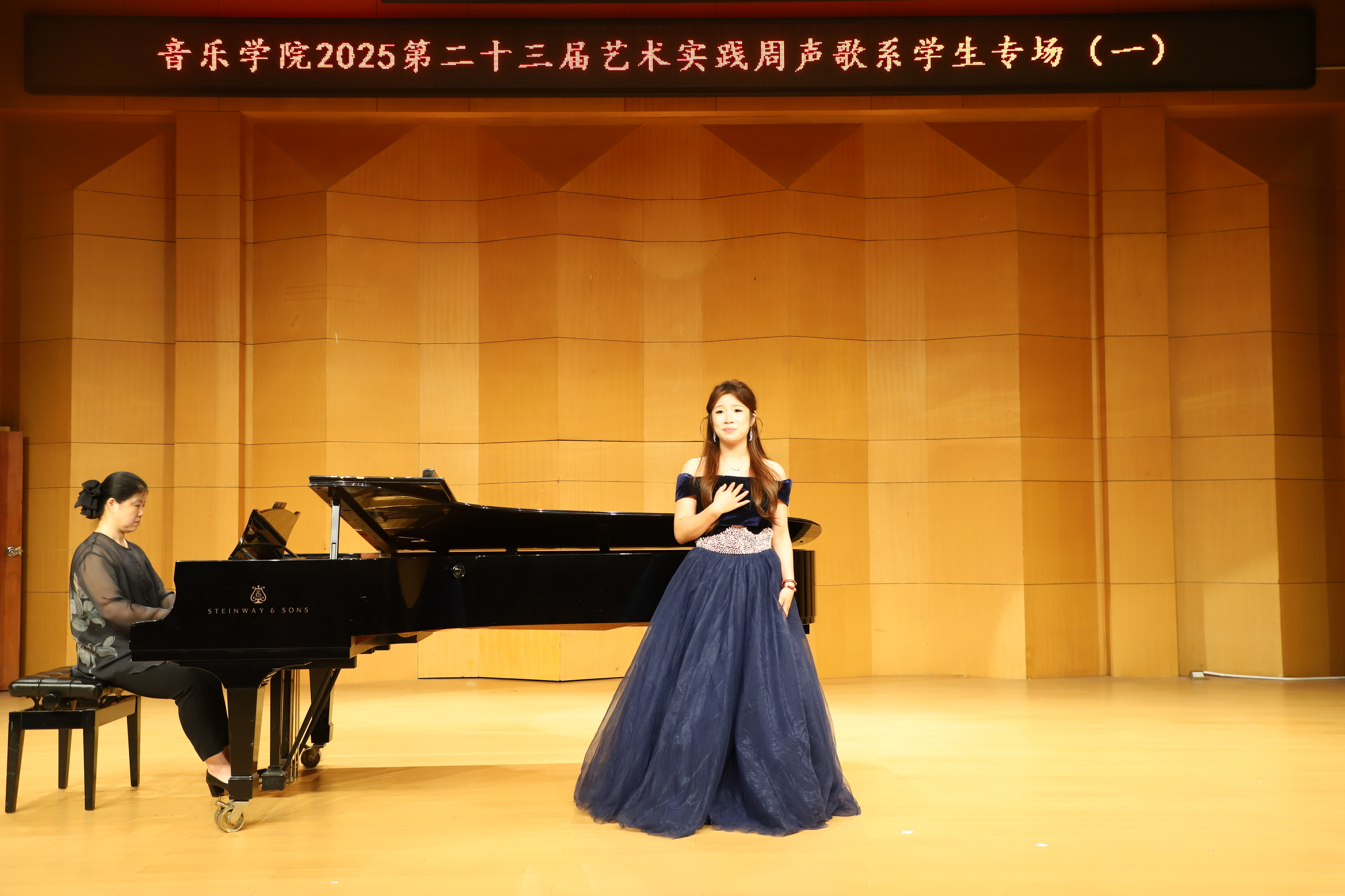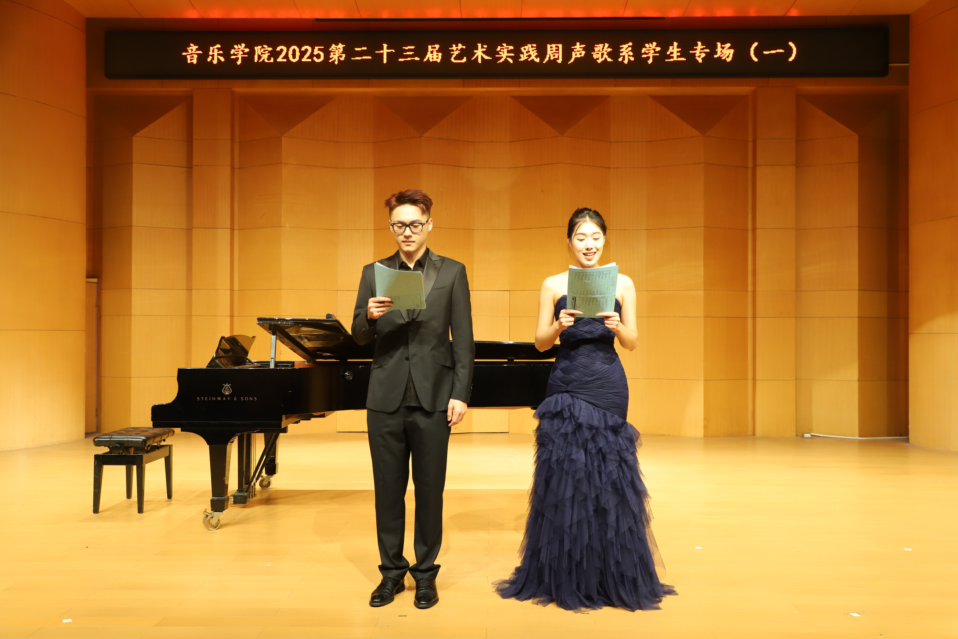 (本网讯 文/郭宇 图/许恺霖)10月11日晚,声歌系举办的员工声乐专场音乐会第一场圆满结束,26名声歌系员工登台演唱,曲目包含中国艺术歌曲、民族民间音乐、歌剧选段以及西方各个时期经典声乐作品,展现出员工对于不同风格声乐作品的驾驭。员工们以细腻的情感处理、精准的戏剧张力、科学的演唱技巧为观众们带来一场酣畅淋漓的音乐之旅。