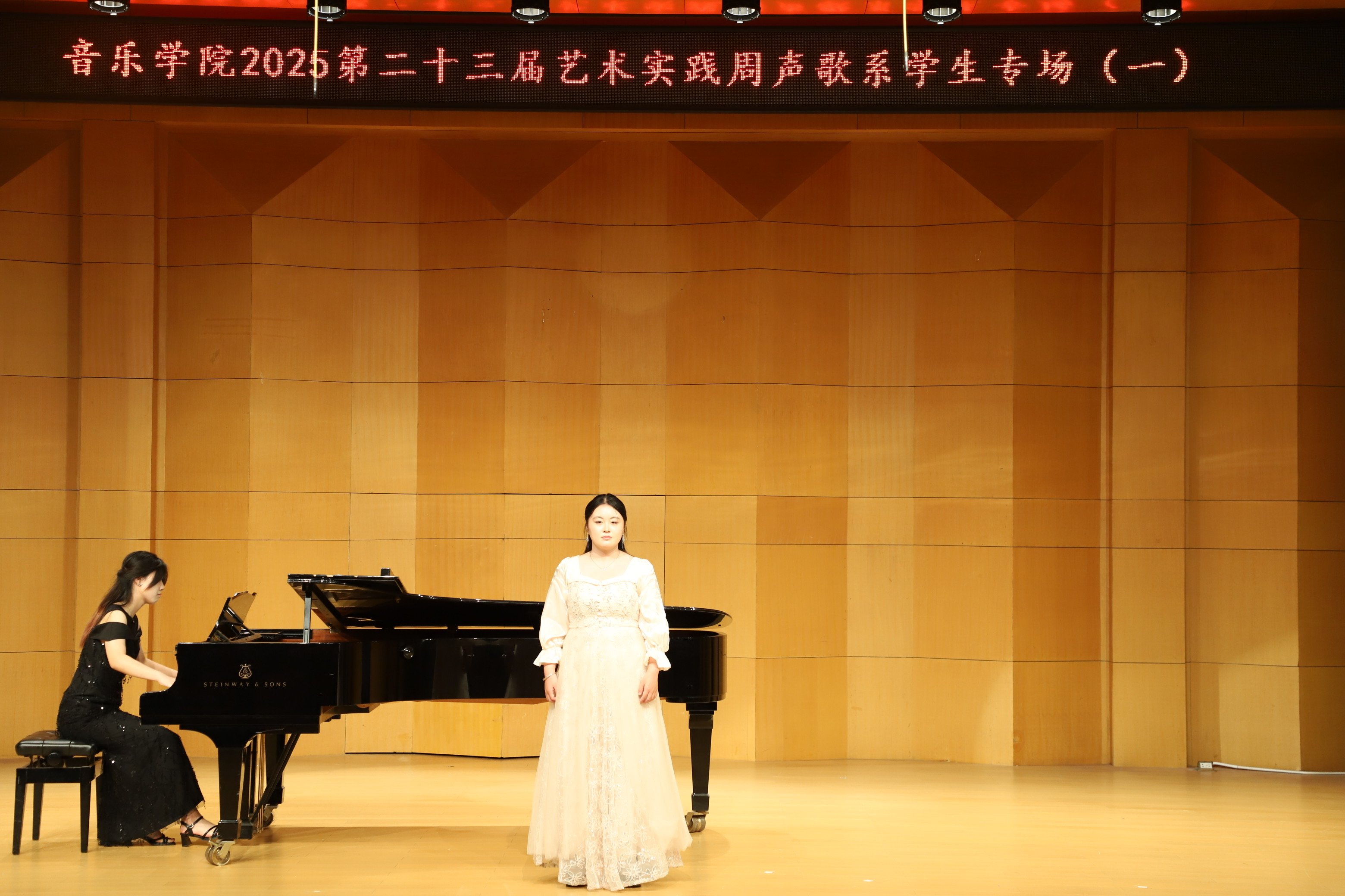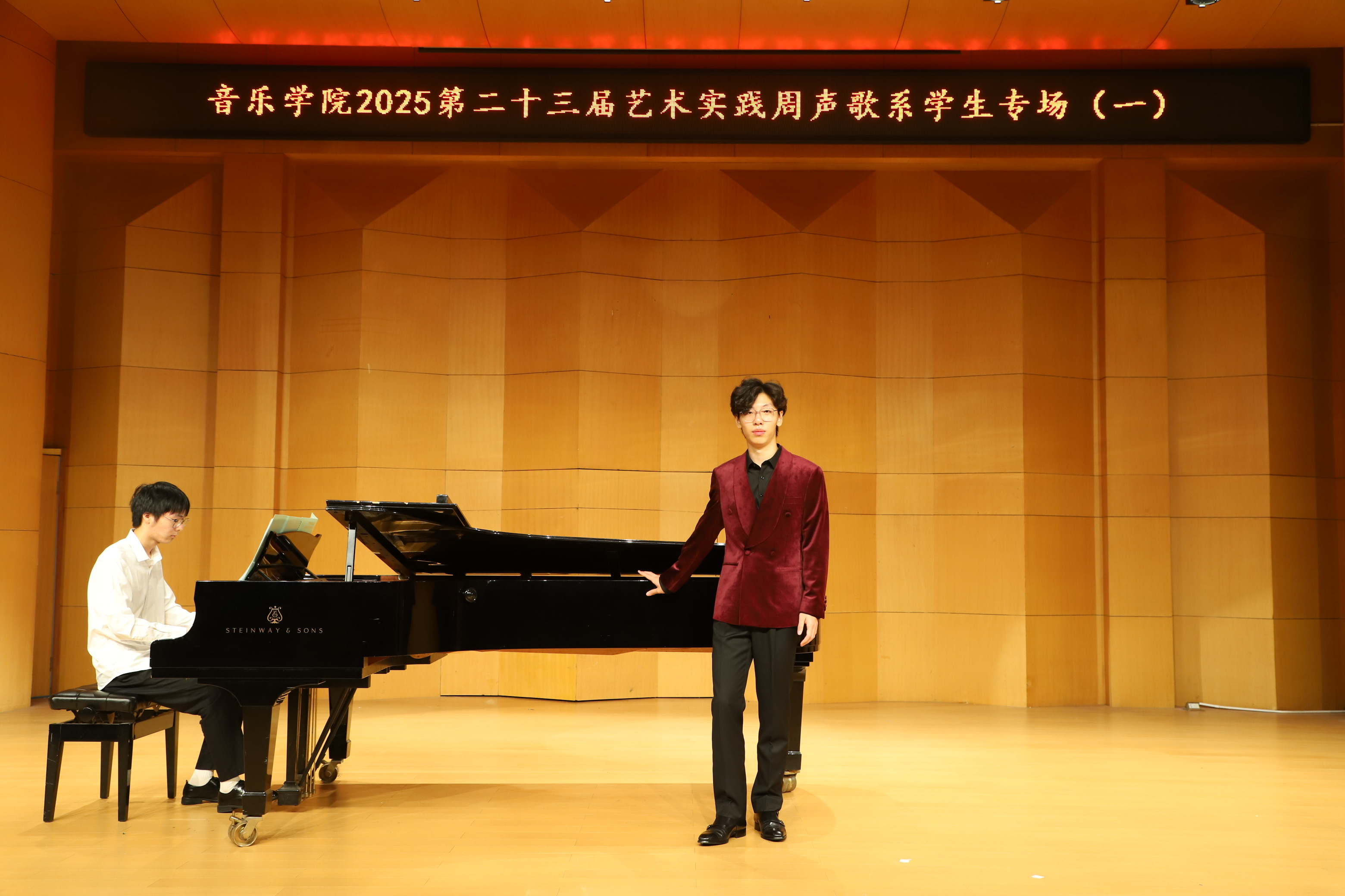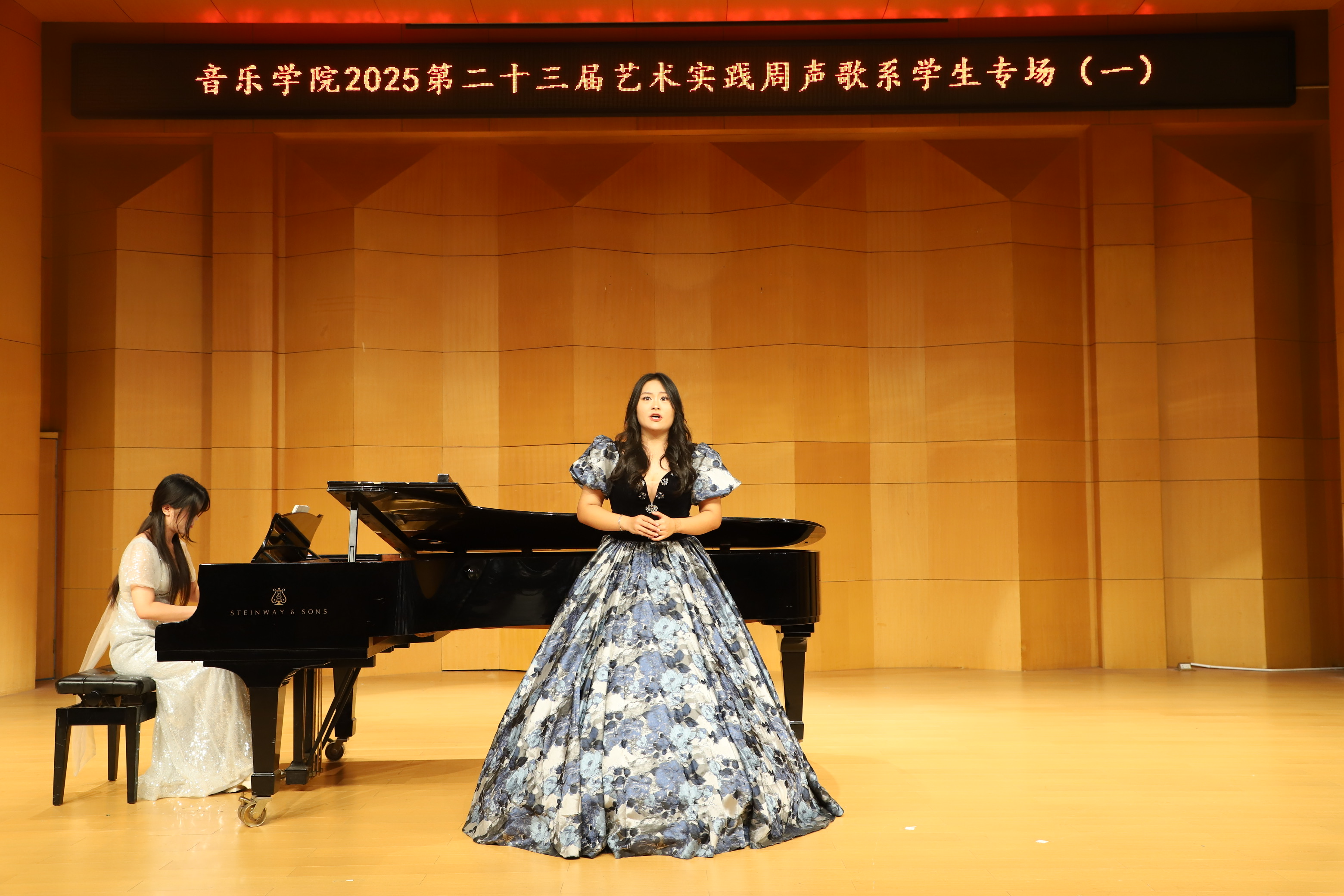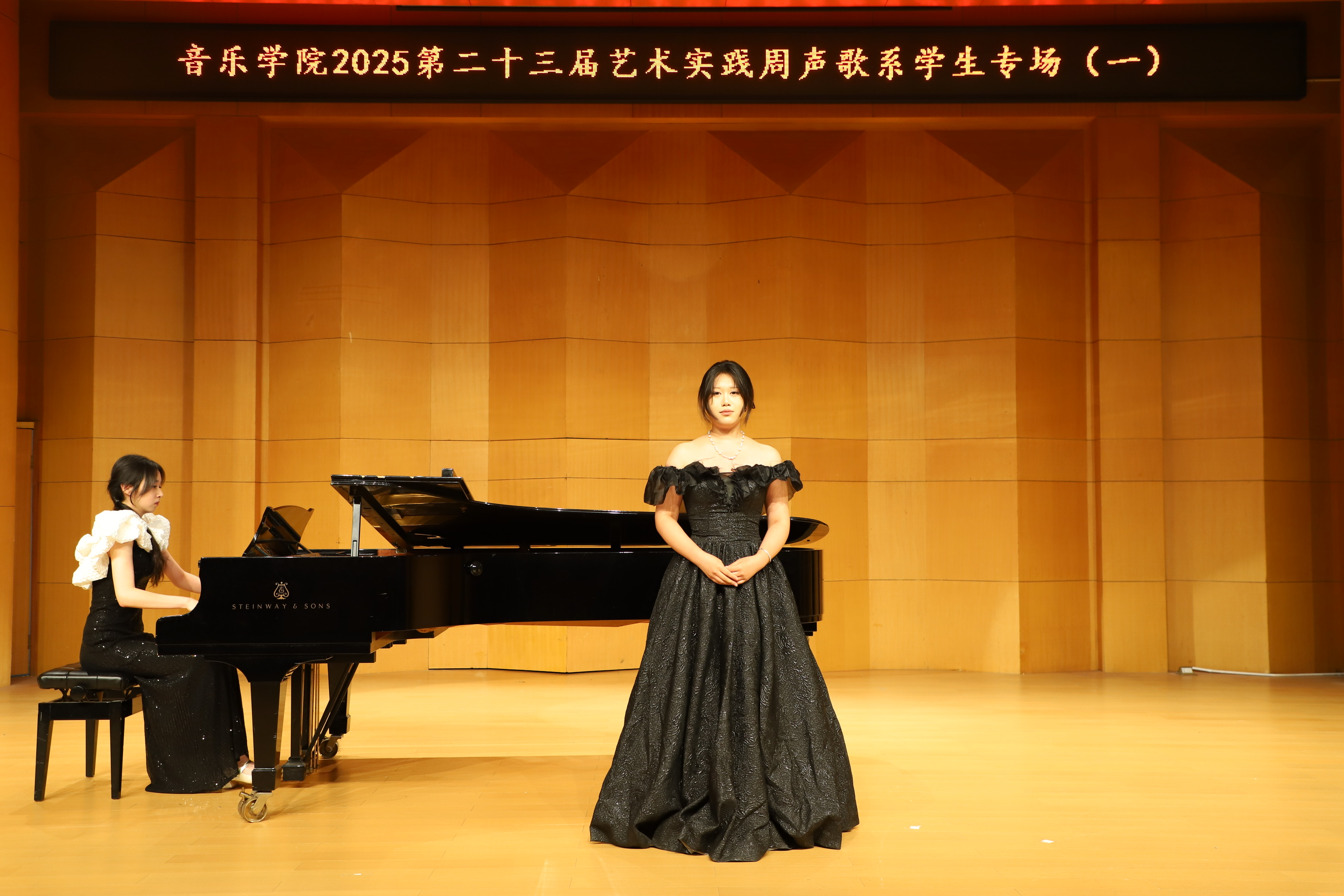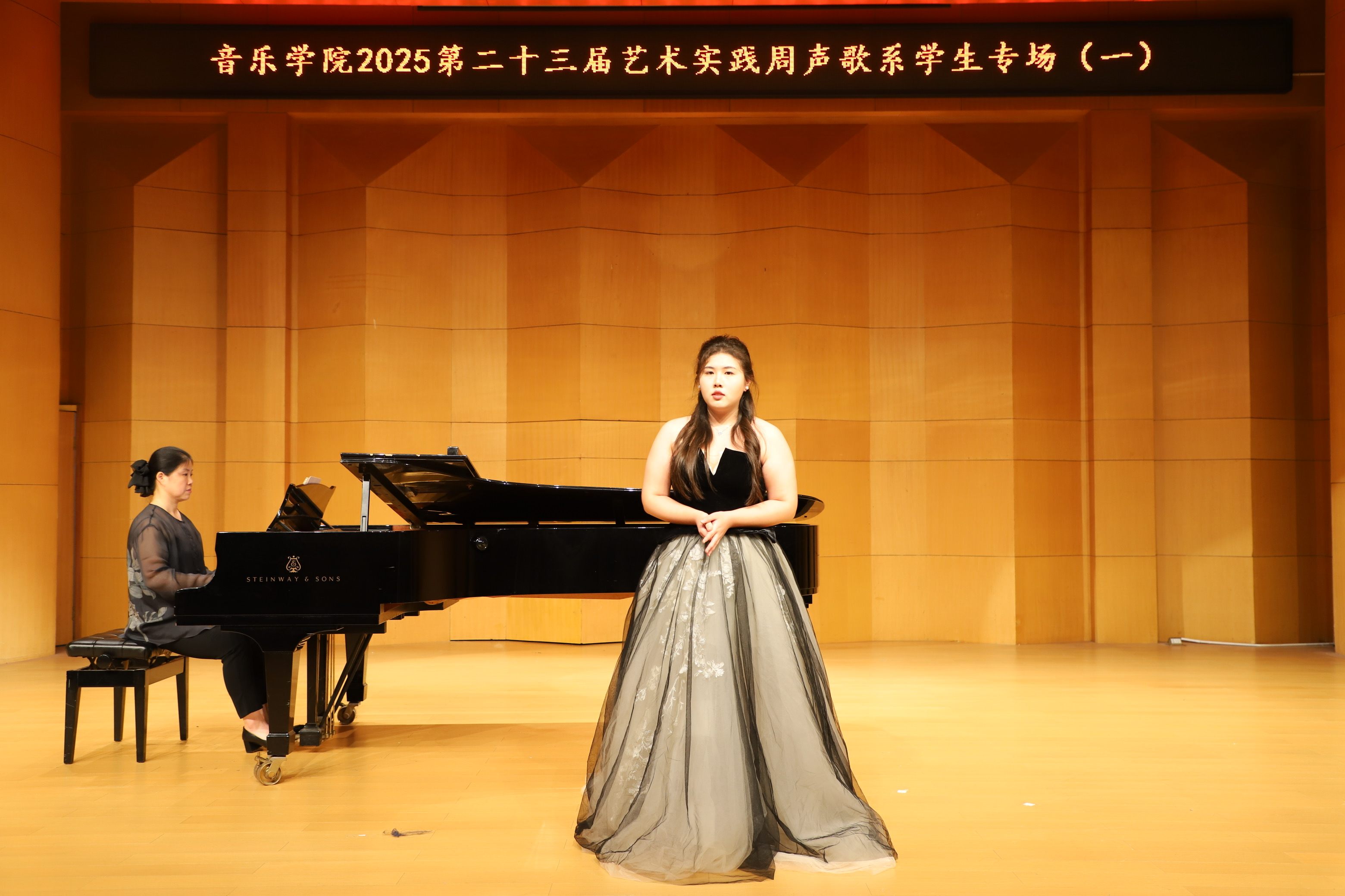 (本网讯 文/郭宇 图/许恺霖)10月11日晚,声歌系举办的员工声乐专场音乐会第一场圆满结束,26名声歌系员工登台演唱,曲目包含中国艺术歌曲、民族民间音乐、歌剧选段以及西方各个时期经典声乐作品,展现出员工对于不同风格声乐作品的驾驭。员工们以细腻的情感处理、精准的戏剧张力、科学的演唱技巧为观众们带来一场酣畅淋漓的音乐之旅。