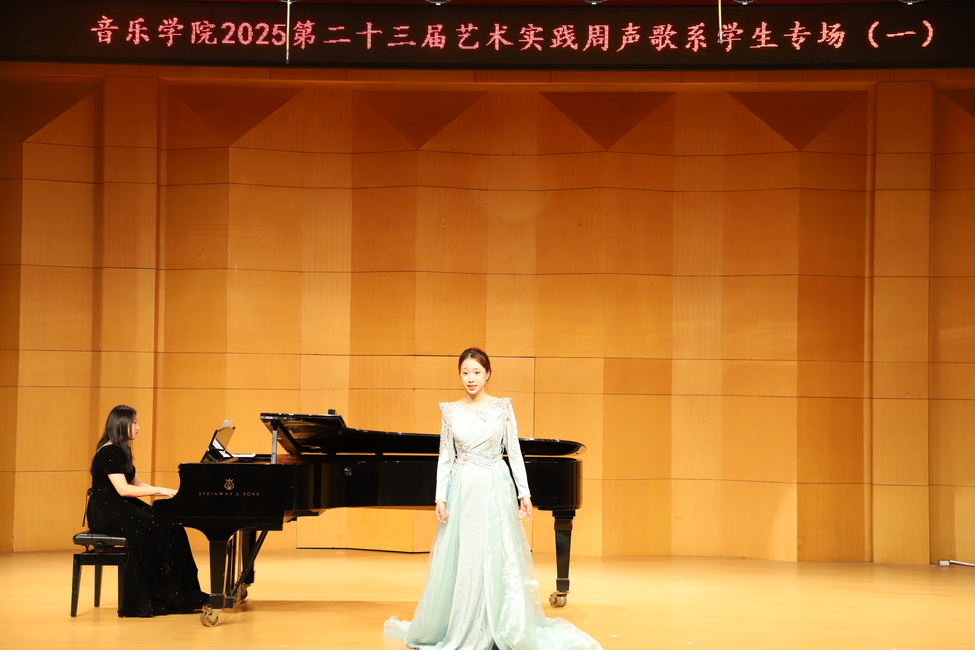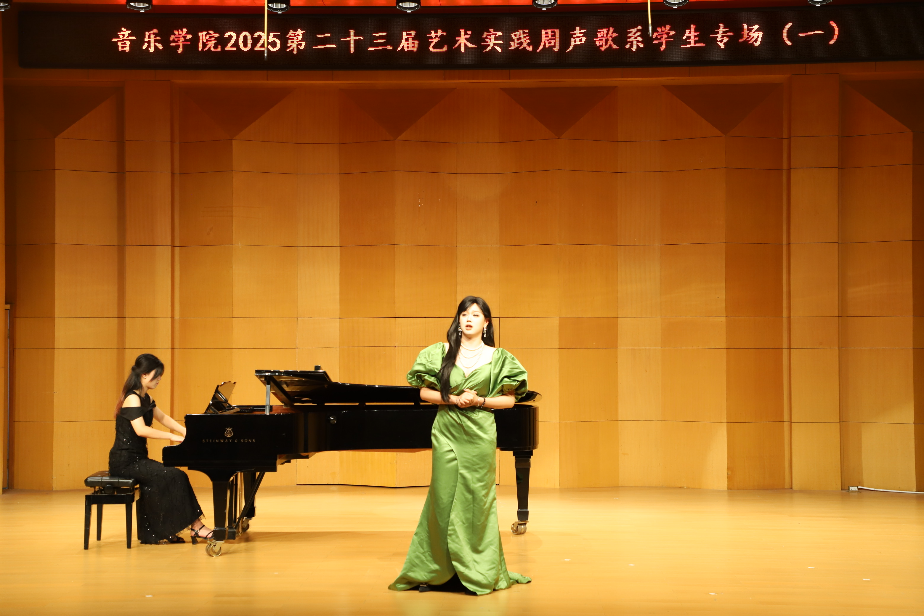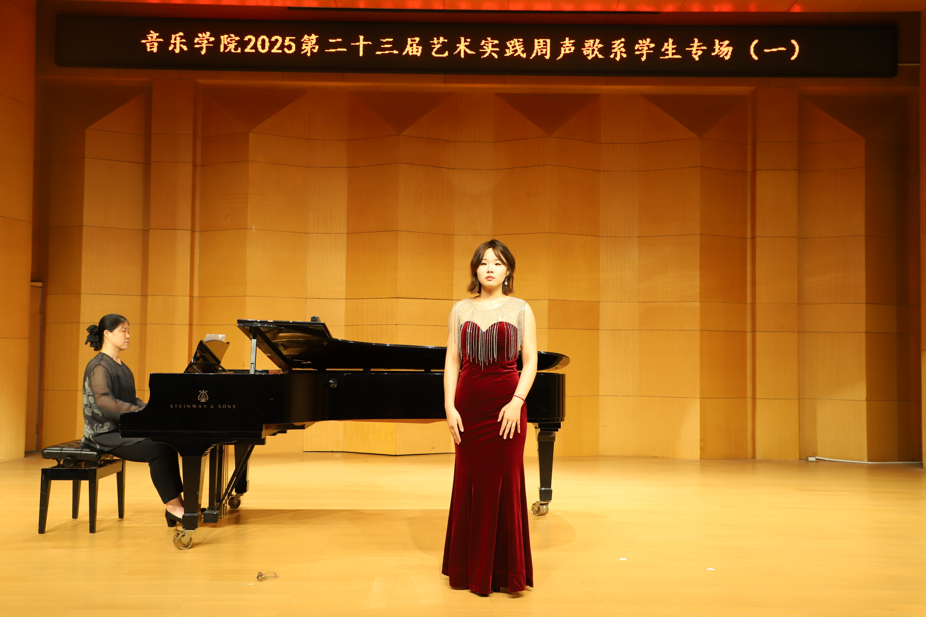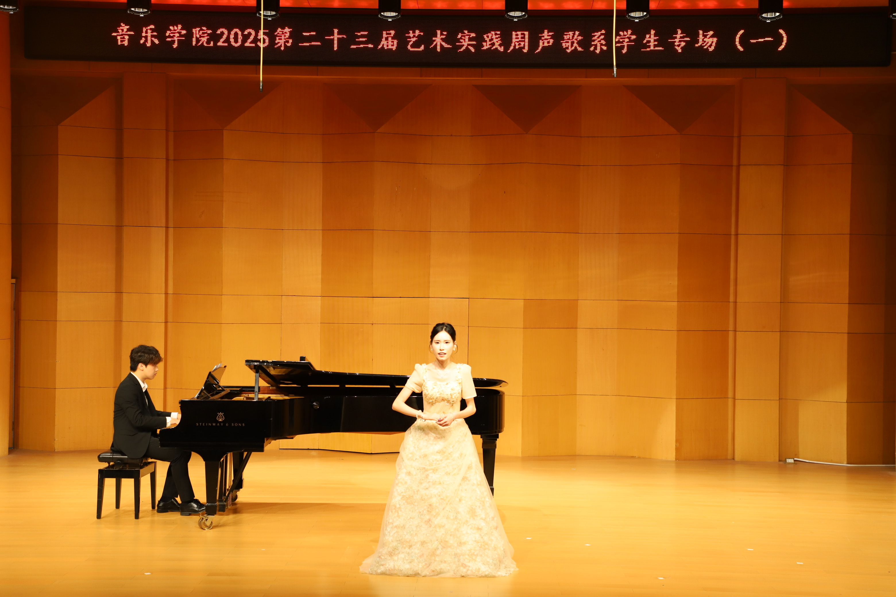 (本网讯 文/郭宇 图/许恺霖)10月11日晚,声歌系举办的员工声乐专场音乐会第一场圆满结束,26名声歌系员工登台演唱,曲目包含中国艺术歌曲、民族民间音乐、歌剧选段以及西方各个时期经典声乐作品,展现出员工对于不同风格声乐作品的驾驭。员工们以细腻的情感处理、精准的戏剧张力、科学的演唱技巧为观众们带来一场酣畅淋漓的音乐之旅。