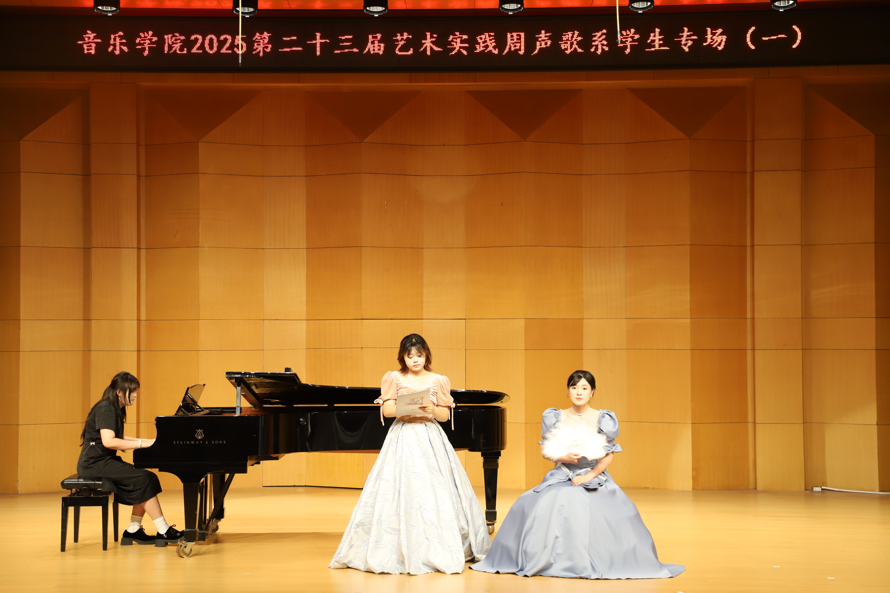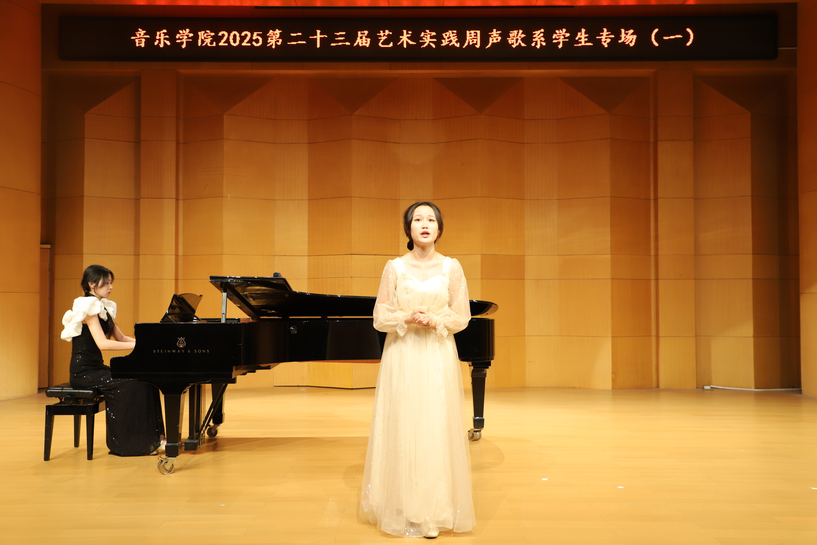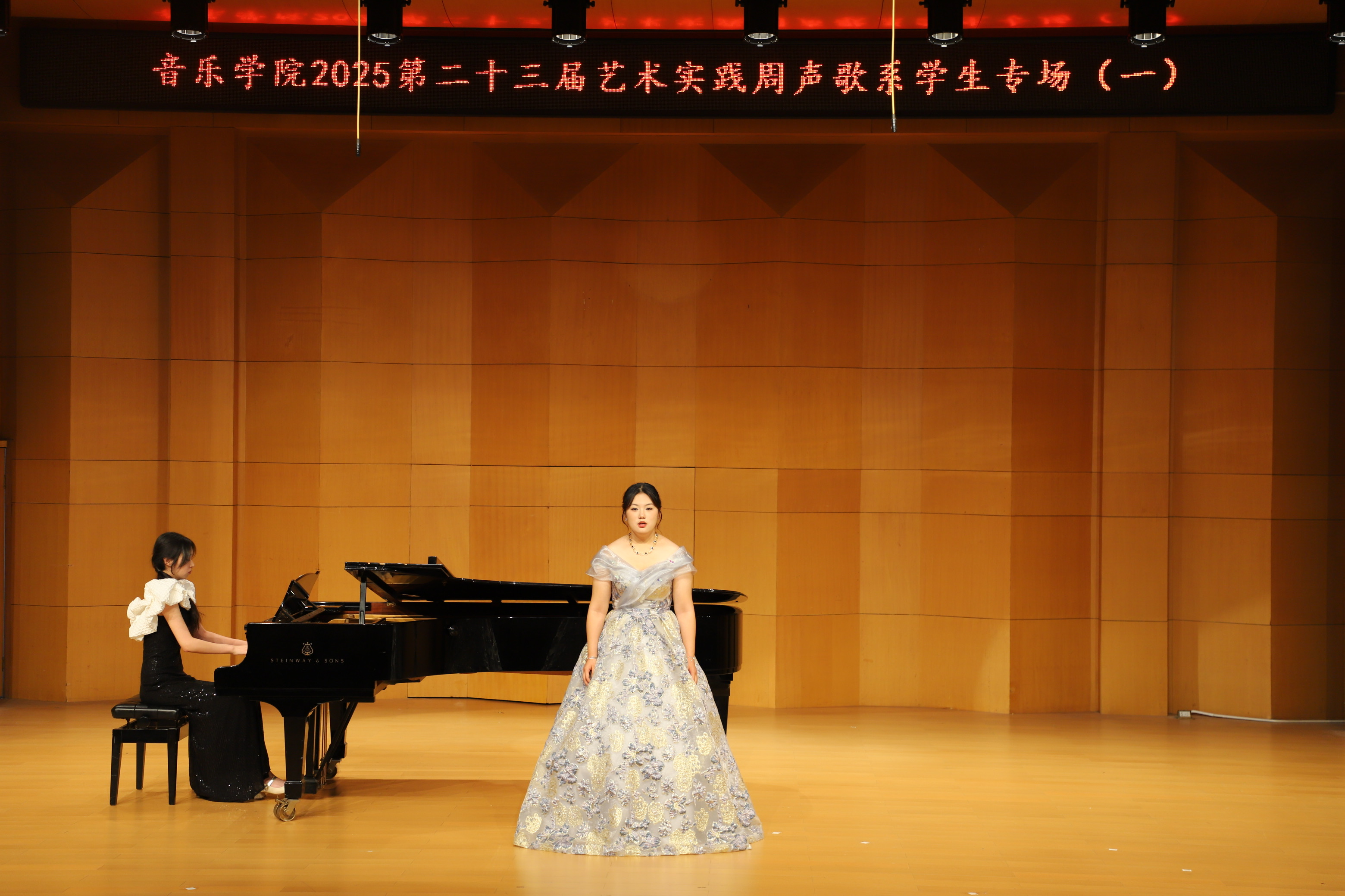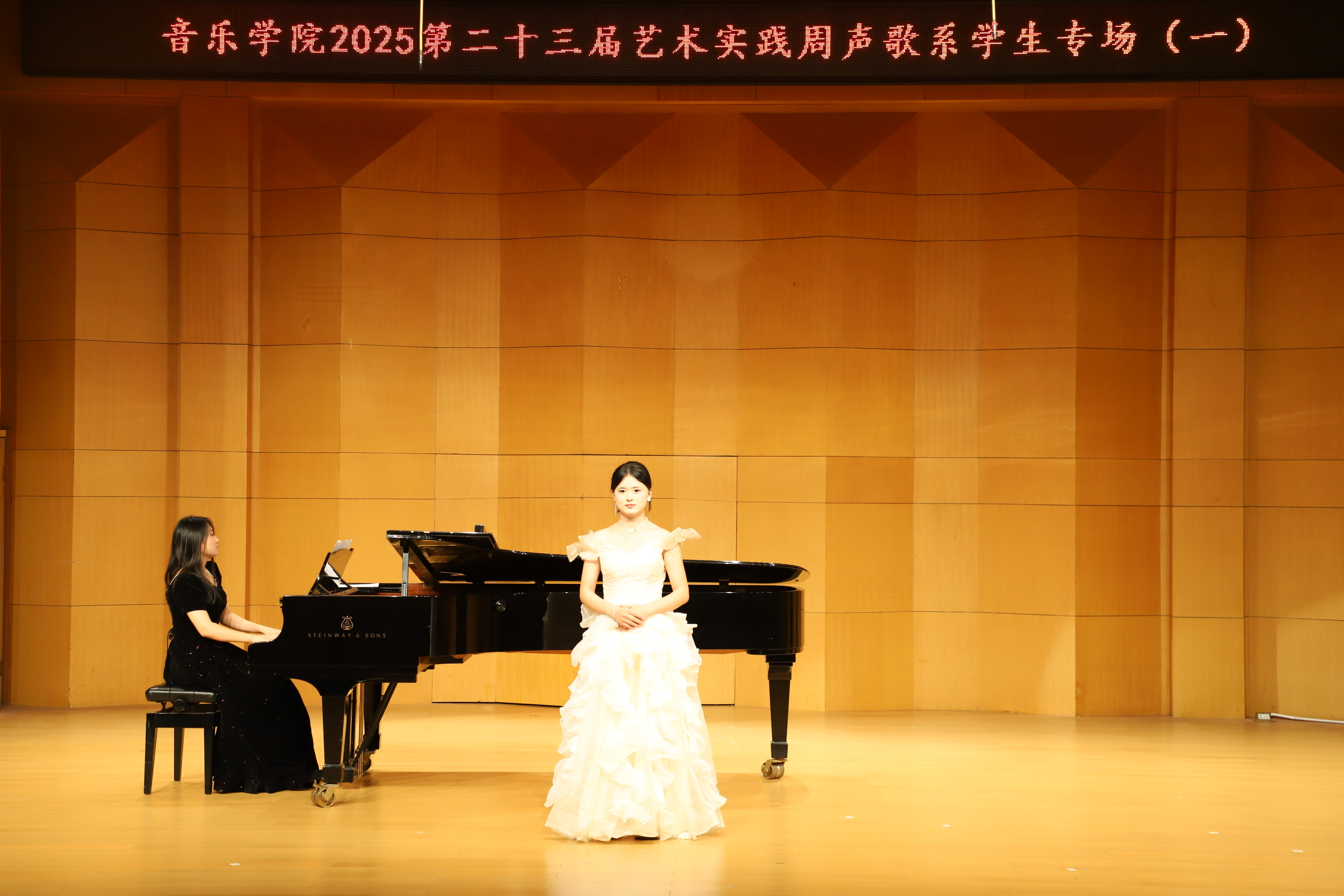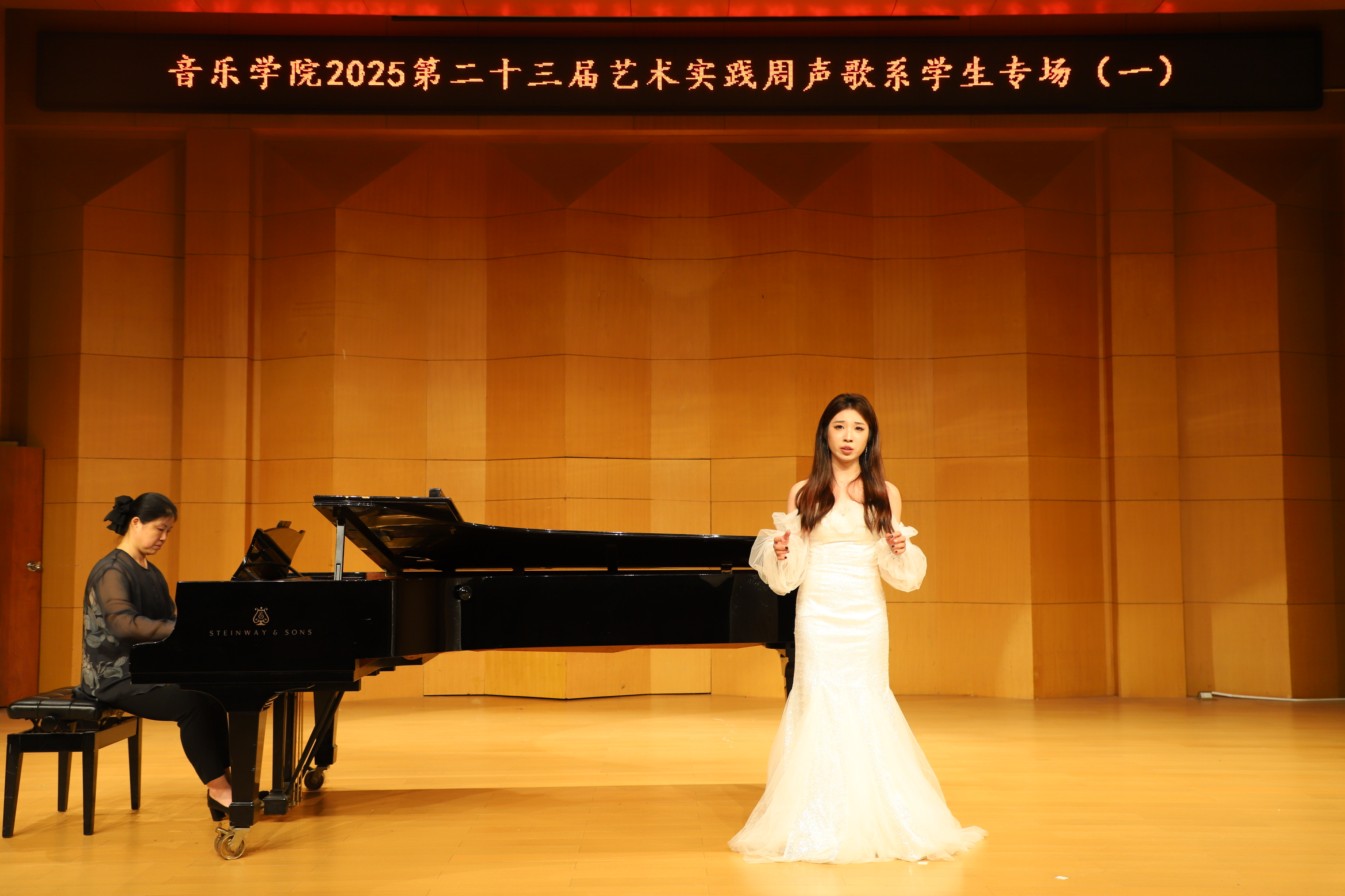 (本网讯 文/郭宇 图/许恺霖)10月11日晚,声歌系举办的员工声乐专场音乐会第一场圆满结束,26名声歌系员工登台演唱,曲目包含中国艺术歌曲、民族民间音乐、歌剧选段以及西方各个时期经典声乐作品,展现出员工对于不同风格声乐作品的驾驭。员工们以细腻的情感处理、精准的戏剧张力、科学的演唱技巧为观众们带来一场酣畅淋漓的音乐之旅。