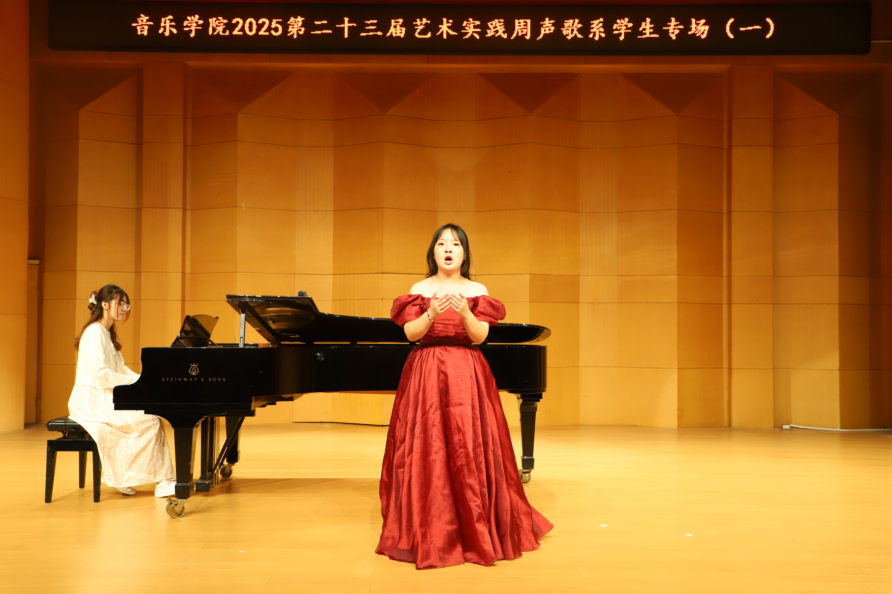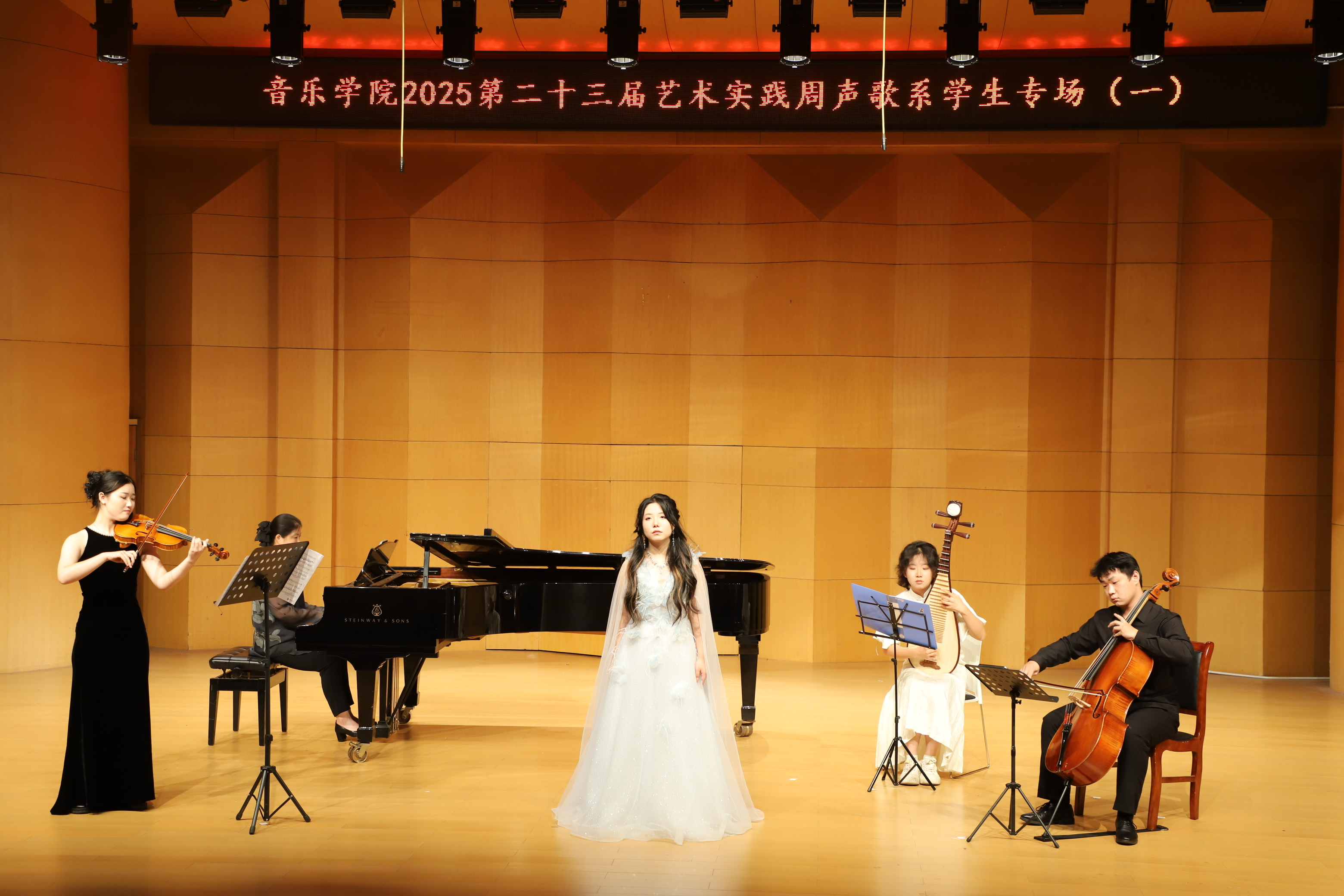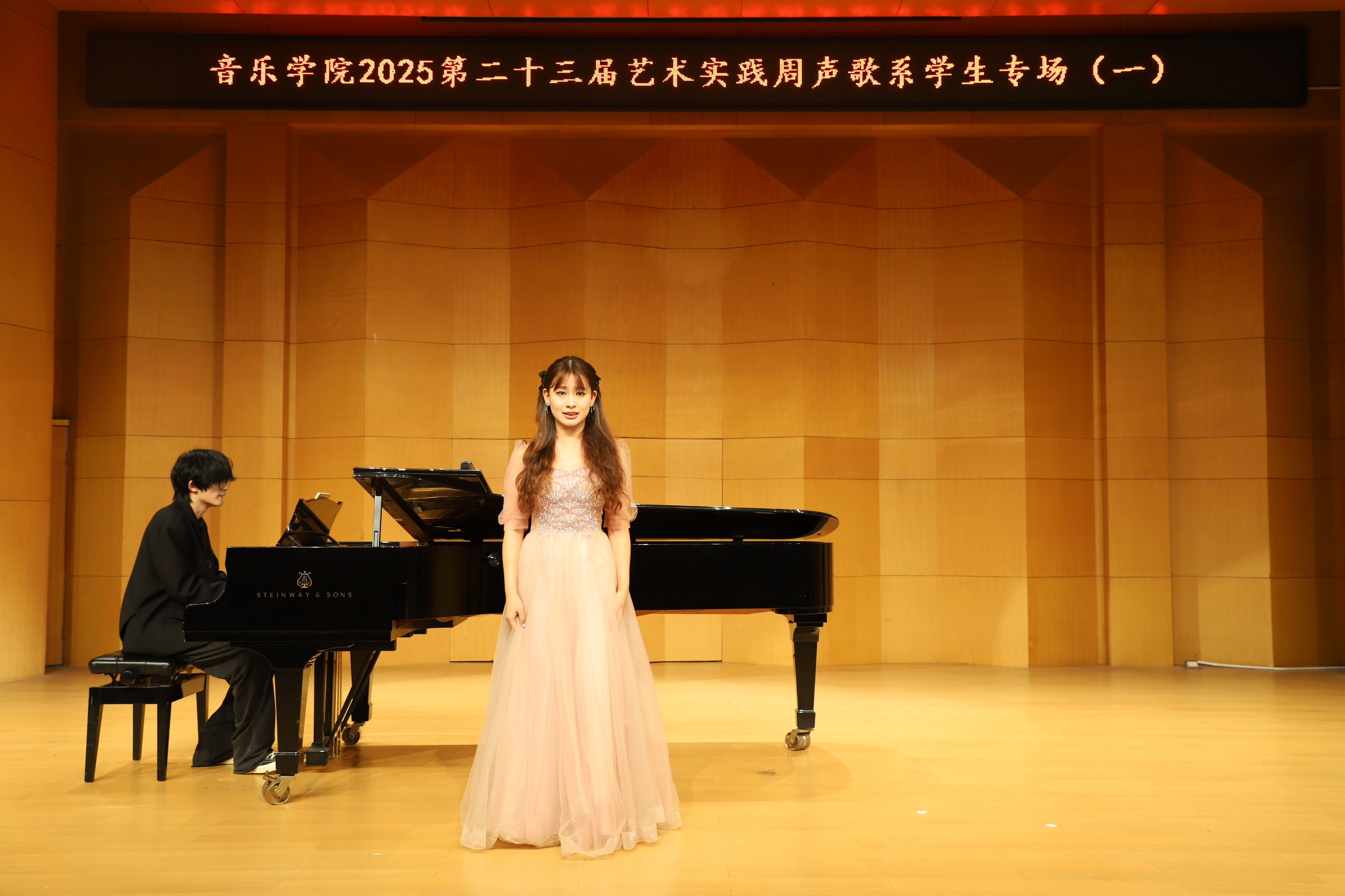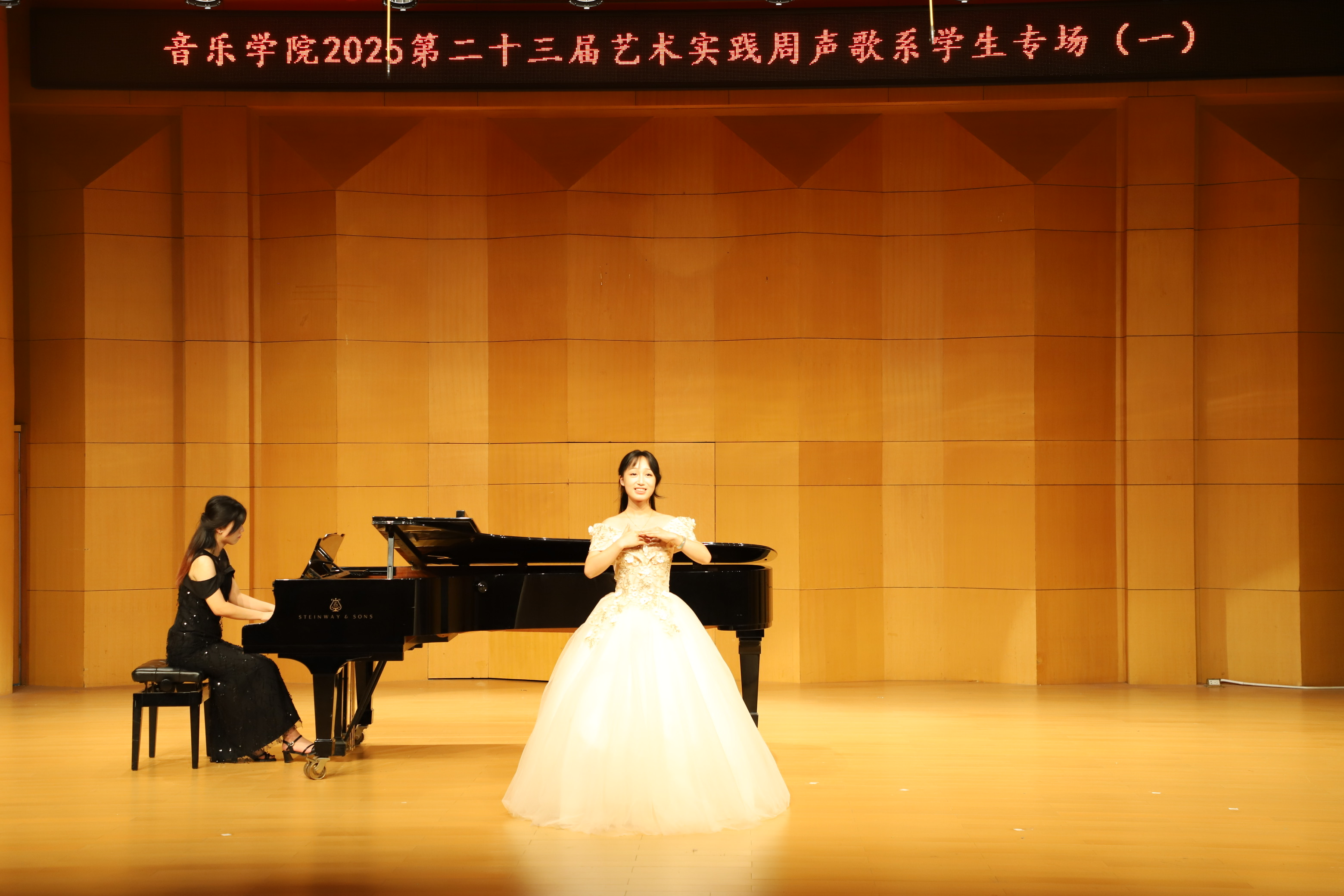 (本网讯 文/郭宇 图/许恺霖)10月11日晚,声歌系举办的员工声乐专场音乐会第一场圆满结束,26名声歌系员工登台演唱,曲目包含中国艺术歌曲、民族民间音乐、歌剧选段以及西方各个时期经典声乐作品,展现出员工对于不同风格声乐作品的驾驭。员工们以细腻的情感处理、精准的戏剧张力、科学的演唱技巧为观众们带来一场酣畅淋漓的音乐之旅。