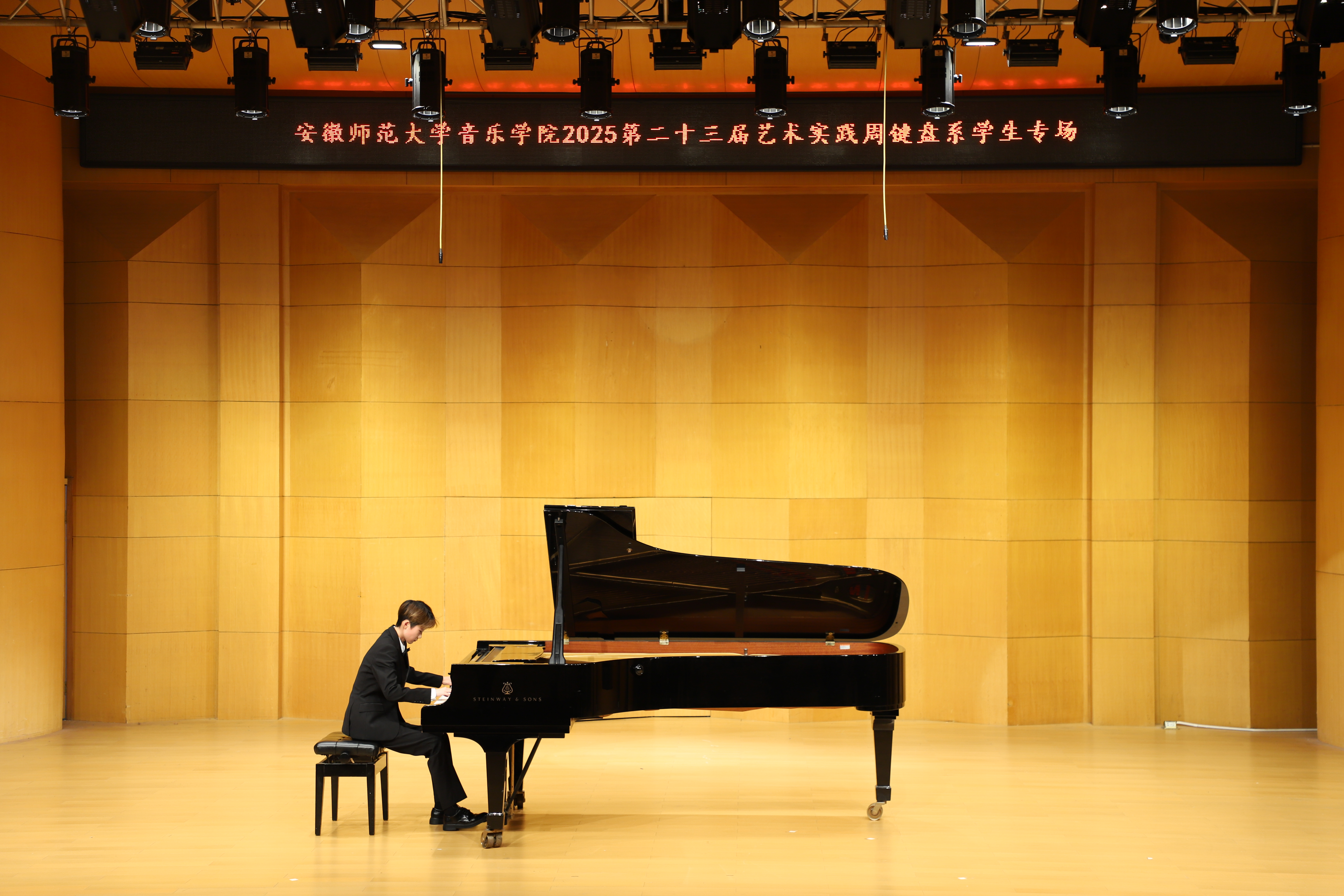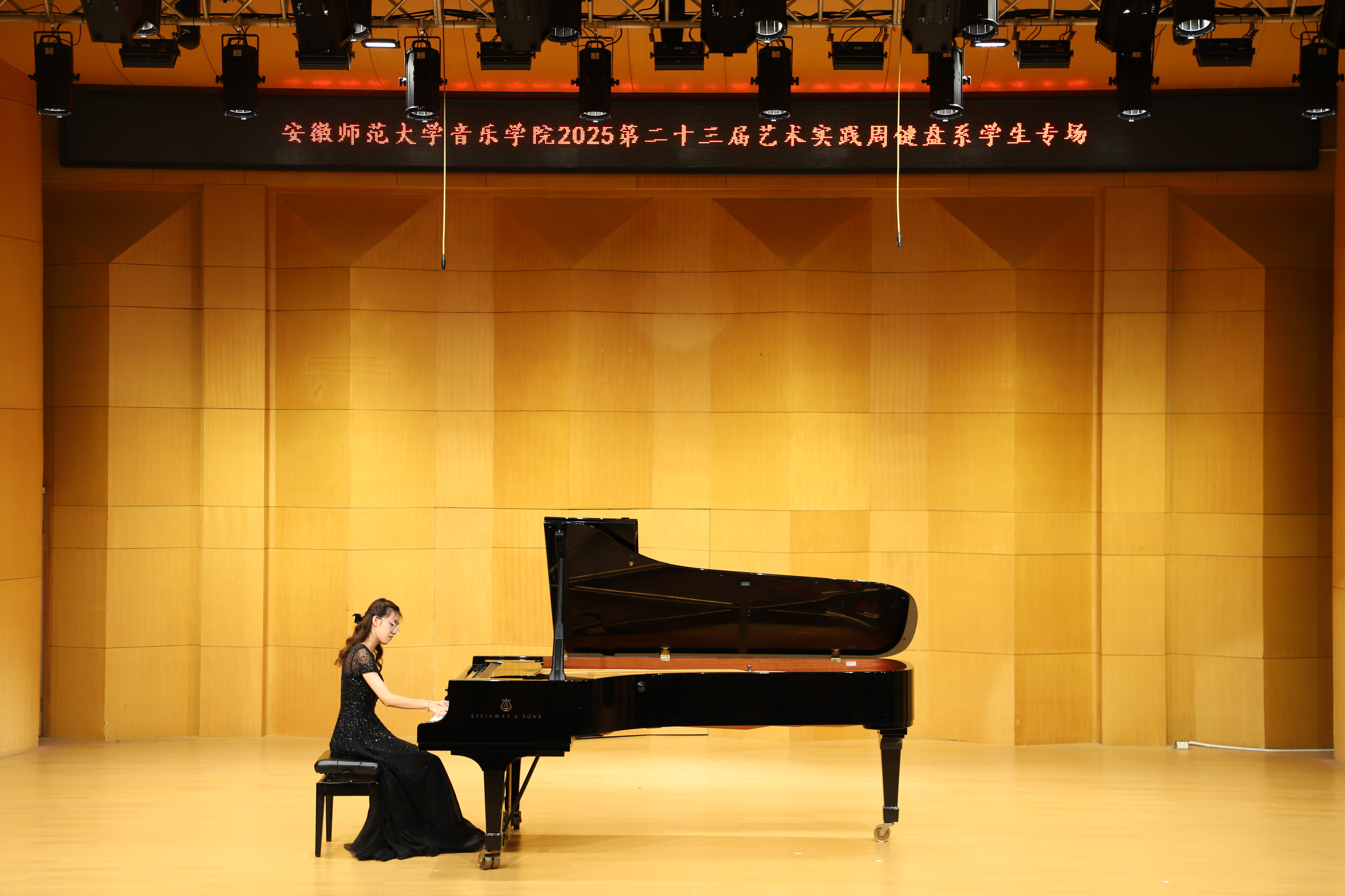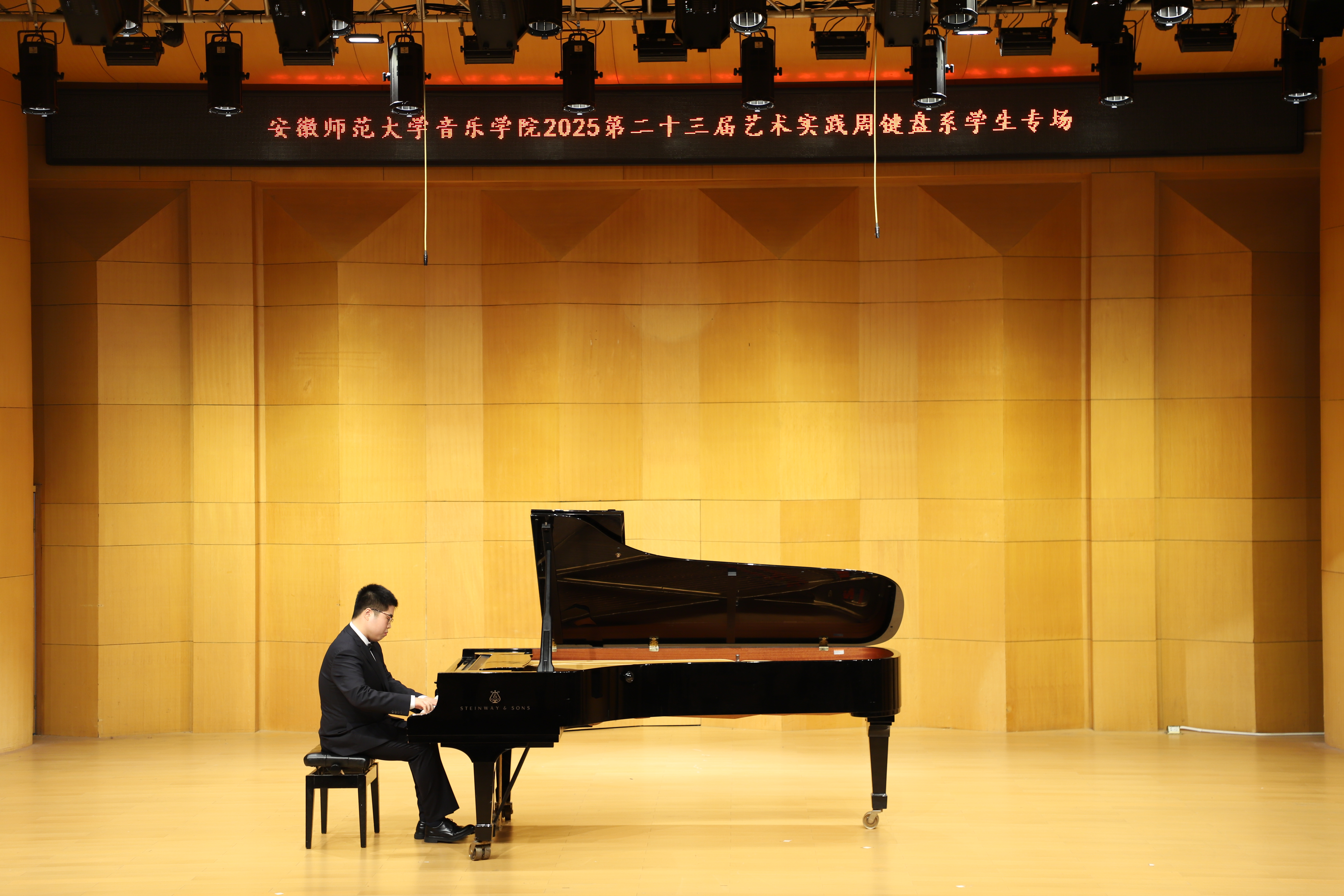 (本网讯 文/郭宇 图/许恺霖)10月14日晚,由公司键盘系举办的员工专场音乐会圆满结束,来自键盘系的安韦怡、吴昊骏、樊佳玮等15位学子依次登台,以精湛技艺演绎了张朝的《努玛阿美》、李斯特《叹息》、肖邦《练习曲Op.25-11》等古典、浪漫及现代中外不同风格的经典作品,展现了扎实的专业功底与多元的艺术表达。