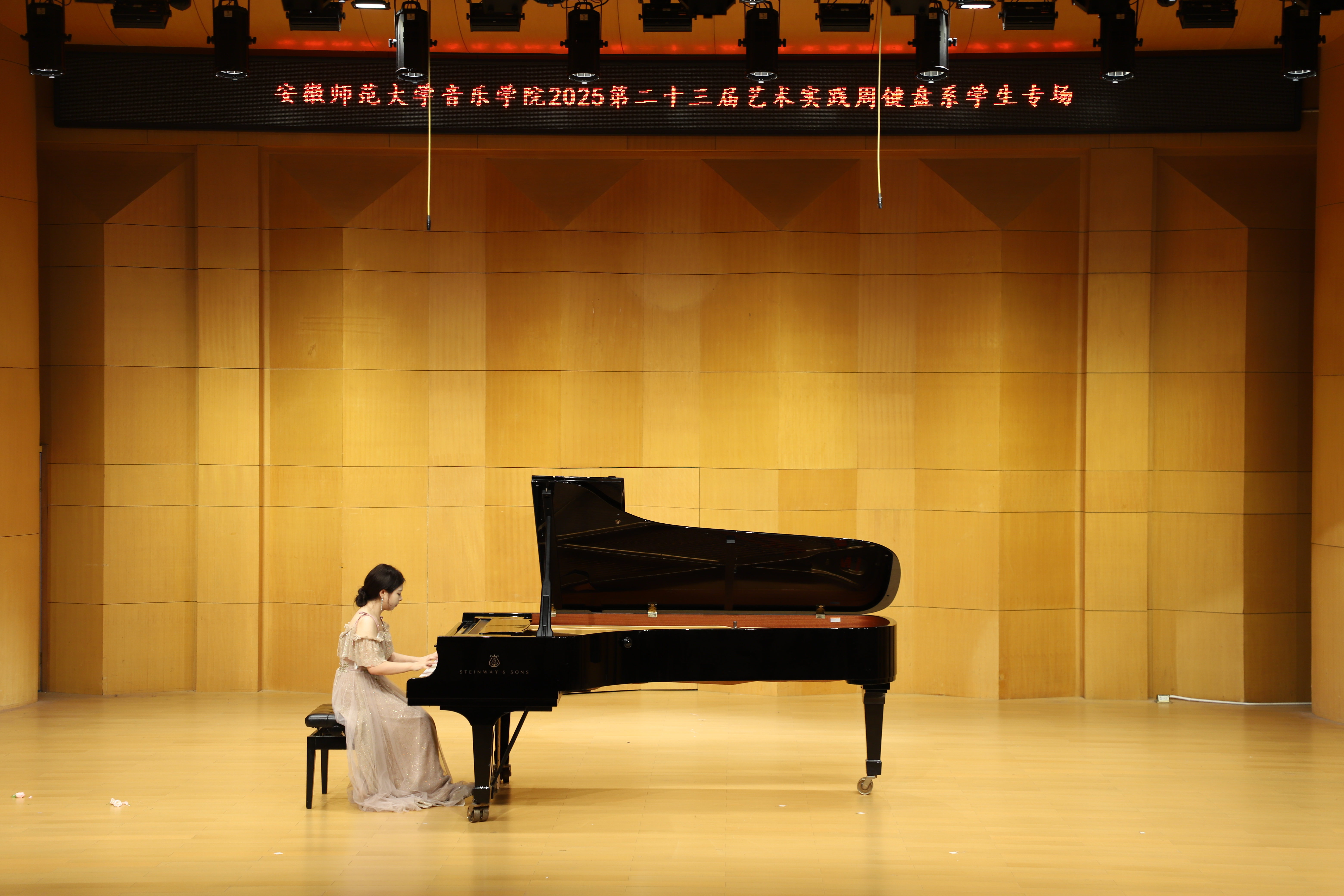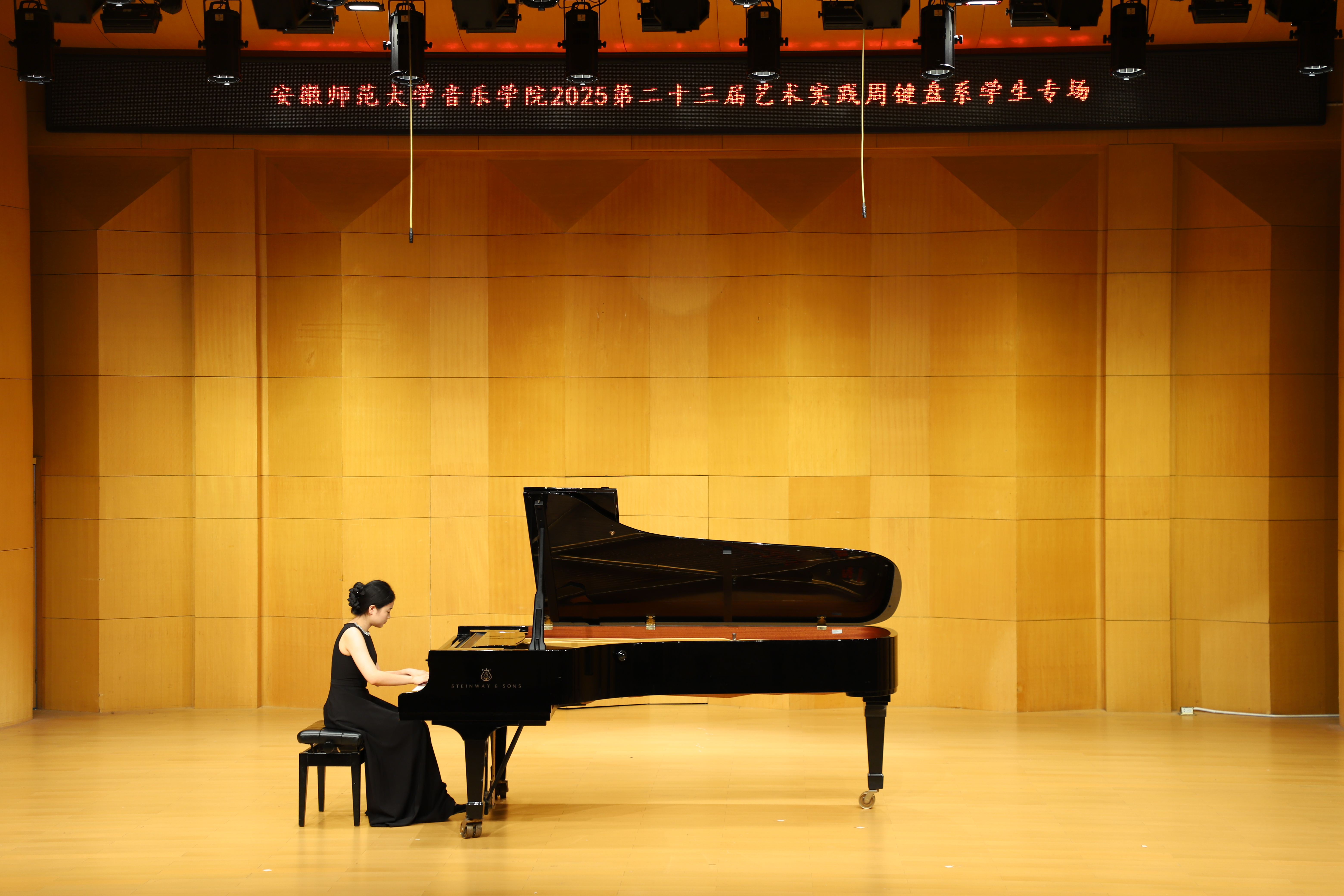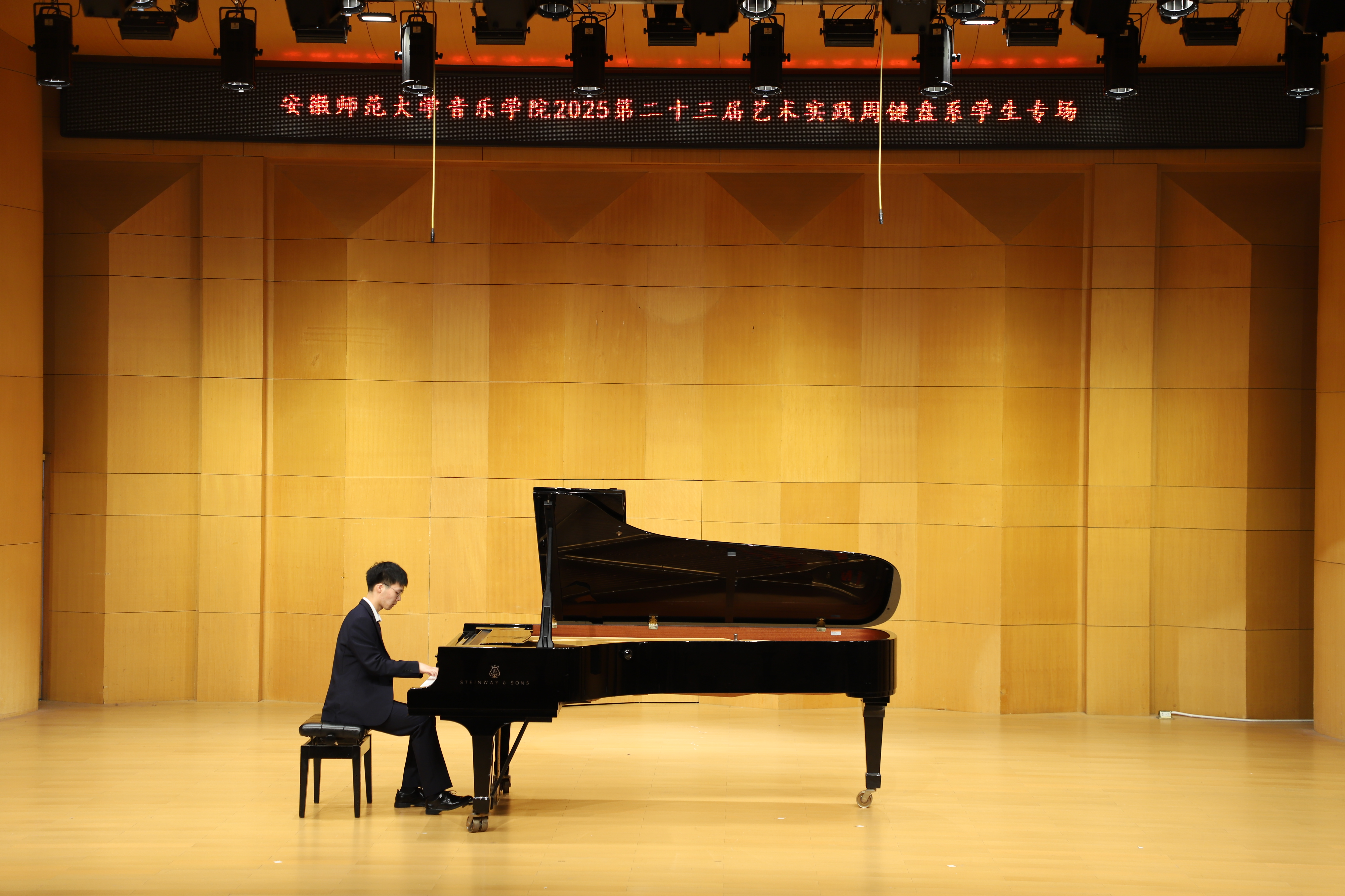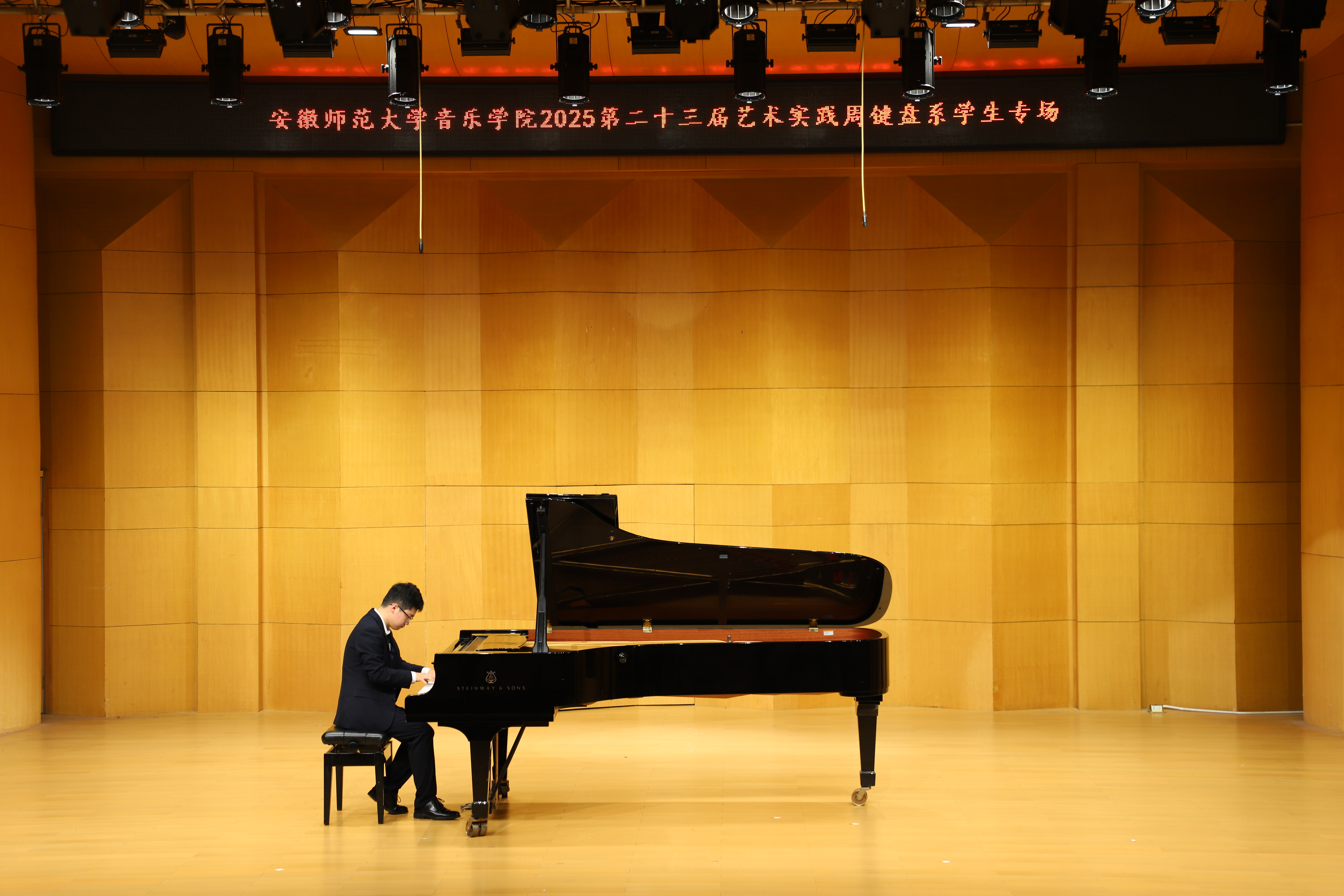 (本网讯 文/郭宇 图/许恺霖)10月14日晚,由公司键盘系举办的员工专场音乐会圆满结束,来自键盘系的安韦怡、吴昊骏、樊佳玮等15位学子依次登台,以精湛技艺演绎了张朝的《努玛阿美》、李斯特《叹息》、肖邦《练习曲Op.25-11》等古典、浪漫及现代中外不同风格的经典作品,展现了扎实的专业功底与多元的艺术表达。