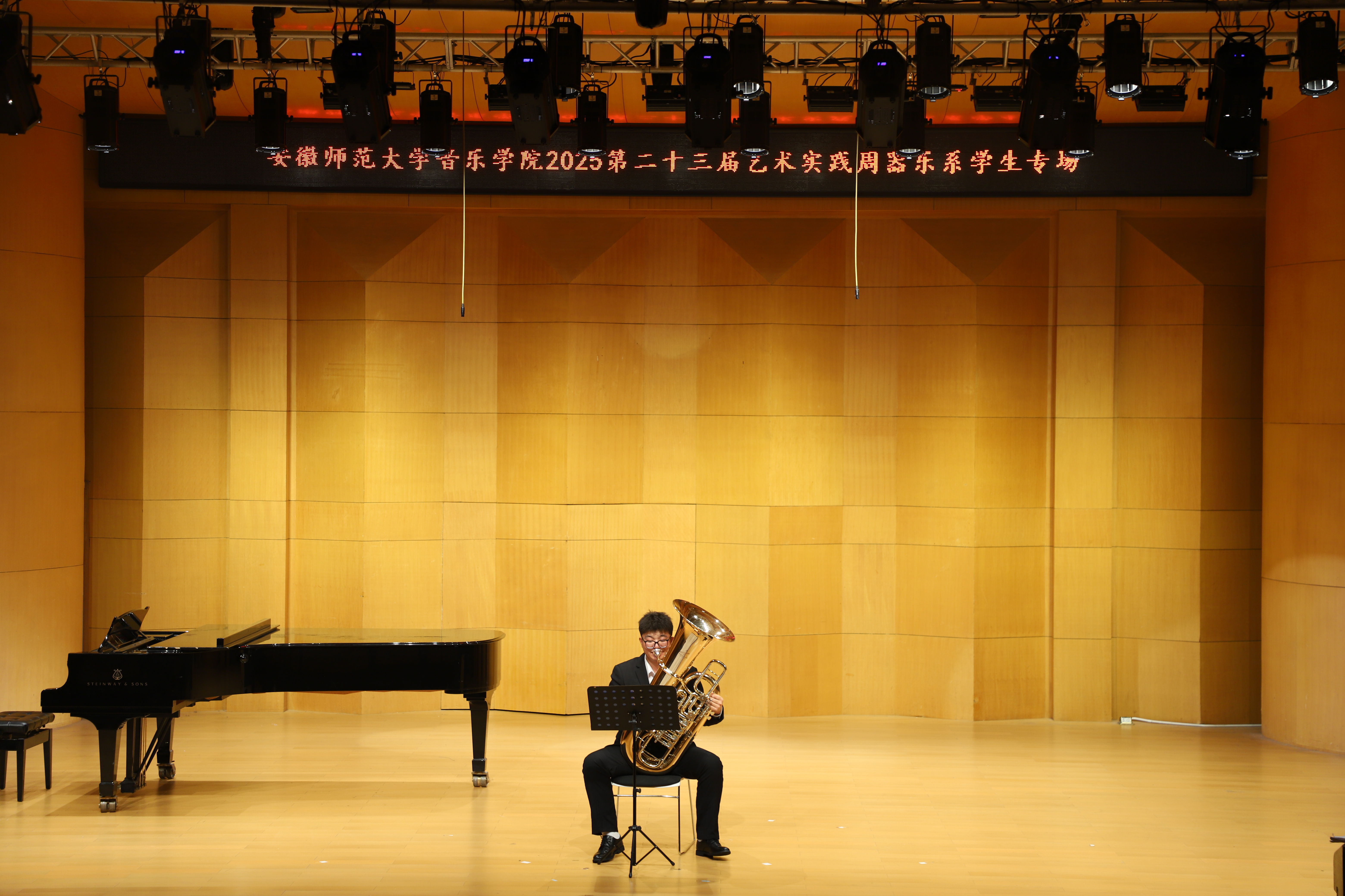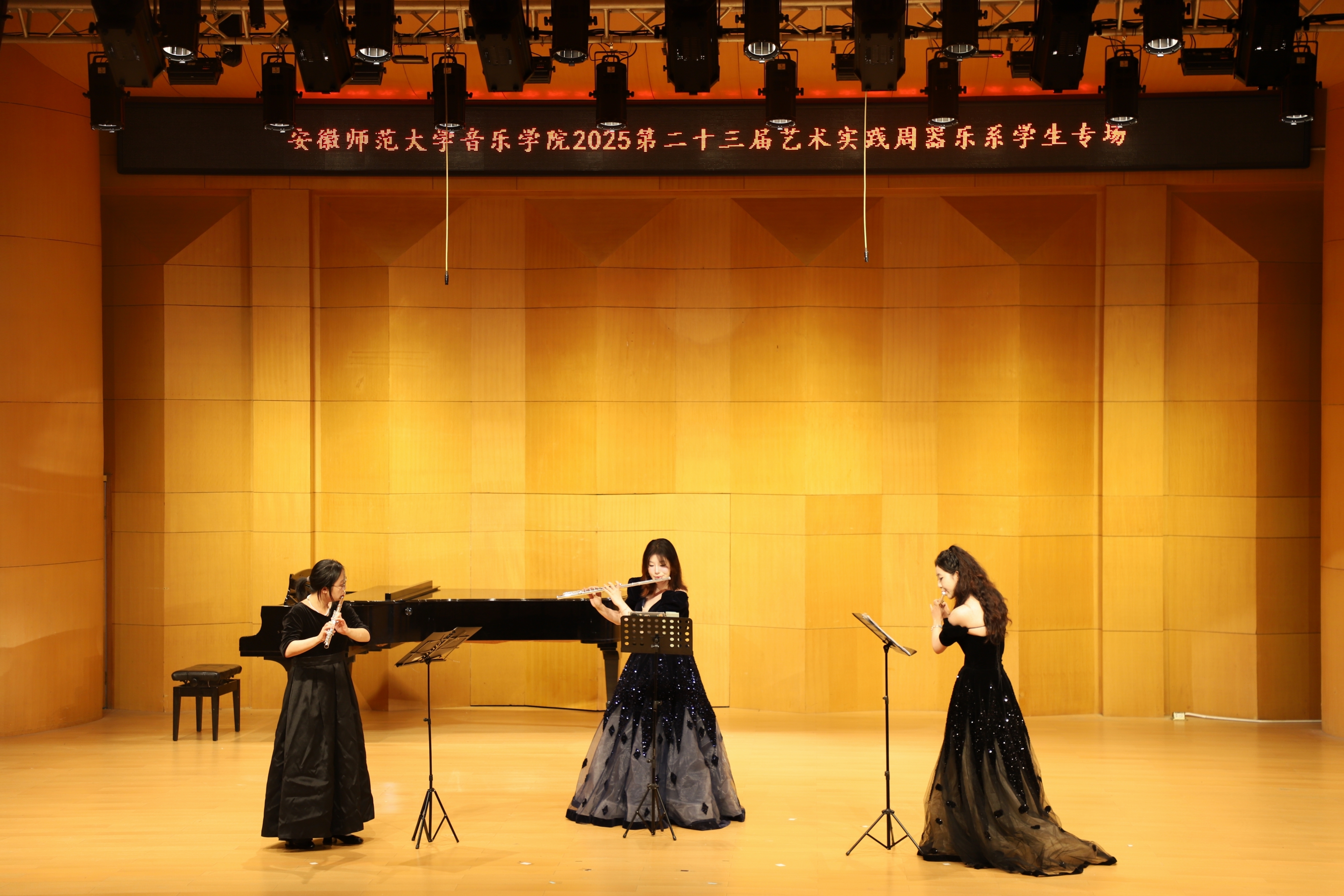 (本网讯 文/郭宇 图/许恺霖)10月15日晚,由公司器乐系举办的员工专场音乐会精彩上演,汇聚器乐系各专业员工力量,打造了一场跨越中西音乐文化的音乐盛宴。音乐会上,小提琴与中提琴婉转低回,长笛和单簧管清亮悠扬,大号与萨克斯沉稳回荡,西洋乐器次第登场;古筝流珠、琵琶切切、中阮浑厚,民族乐器亦纷纷亮相,各展风华。演奏形式丰富多元,或独奏凝神,或重奏谐鸣,或合奏磅礴。既有《秦土情》的乡土深情,又有《酒狂》的古典逸趣;既回荡《西贝柳斯C大调二重奏》的西式浪漫,亦洋溢《一步之遥》的现代爵士风情。整场演出既彰显出同学们扎实的专业功底,更透露出他们独具匠心的艺术表达。
