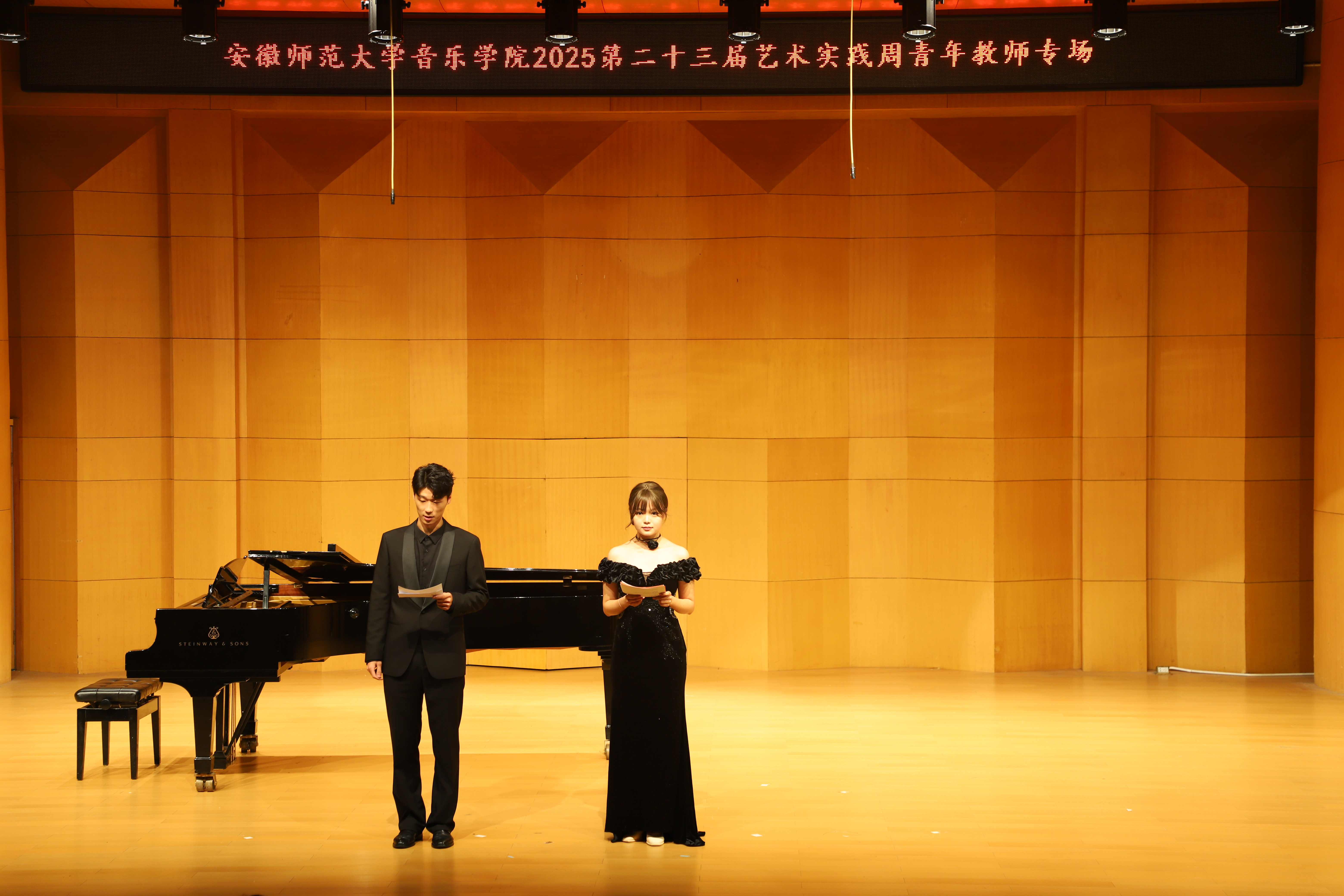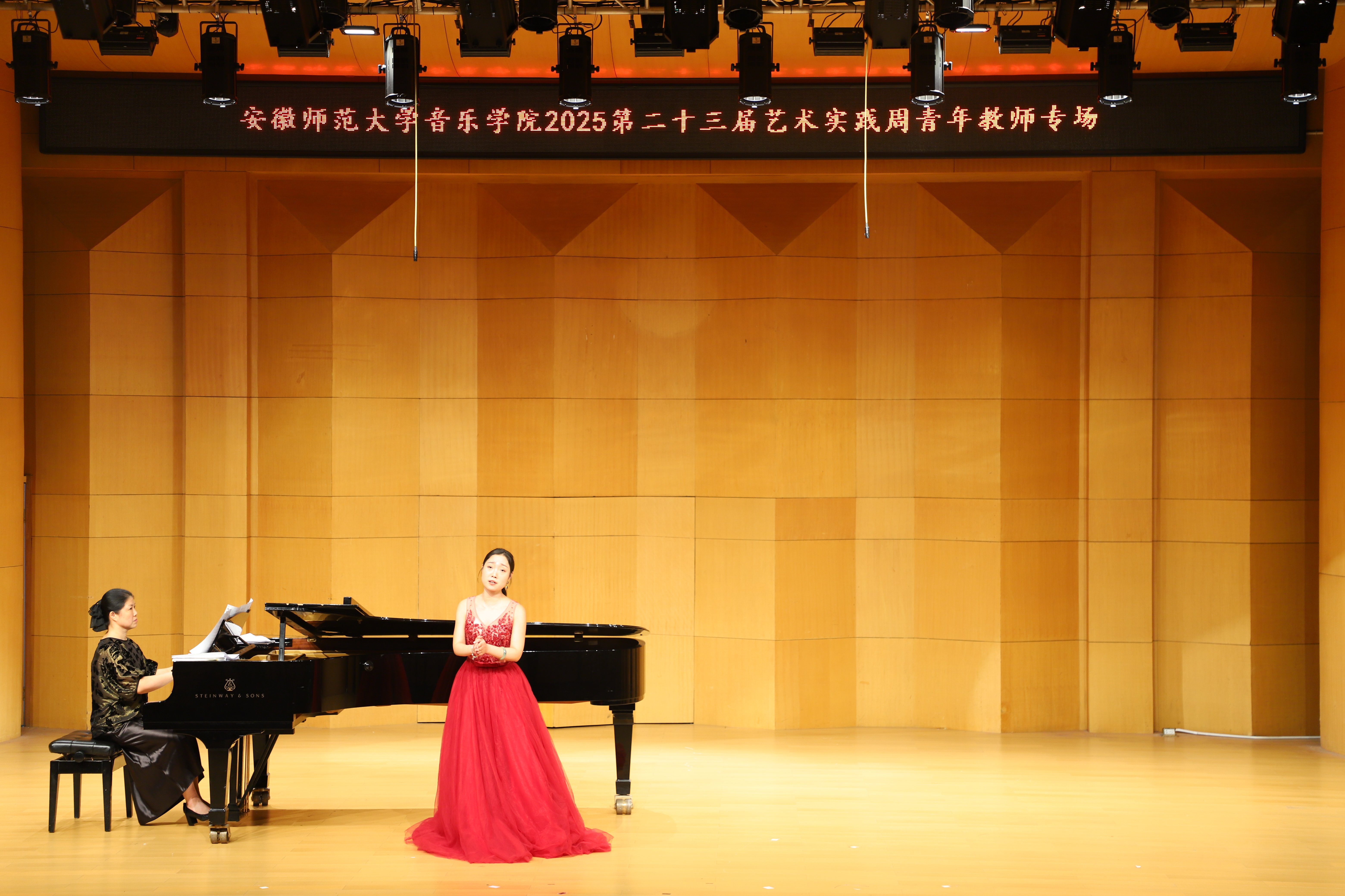由声歌系青年教师登台,吴圆圆老师带来女声独唱《飞跃彩虹》与《别君叹》,前者旋律灵动,后者古韵悠长,尽显声乐艺术的多元表达;陈奕如老师演绎歌剧《恶魔罗伯特》咏叹调“罗伯特,我爱你”与《汉宫春·立春日》,在西洋歌剧与中国古典诗词的碰撞中,展现声乐技巧与文化内涵。
