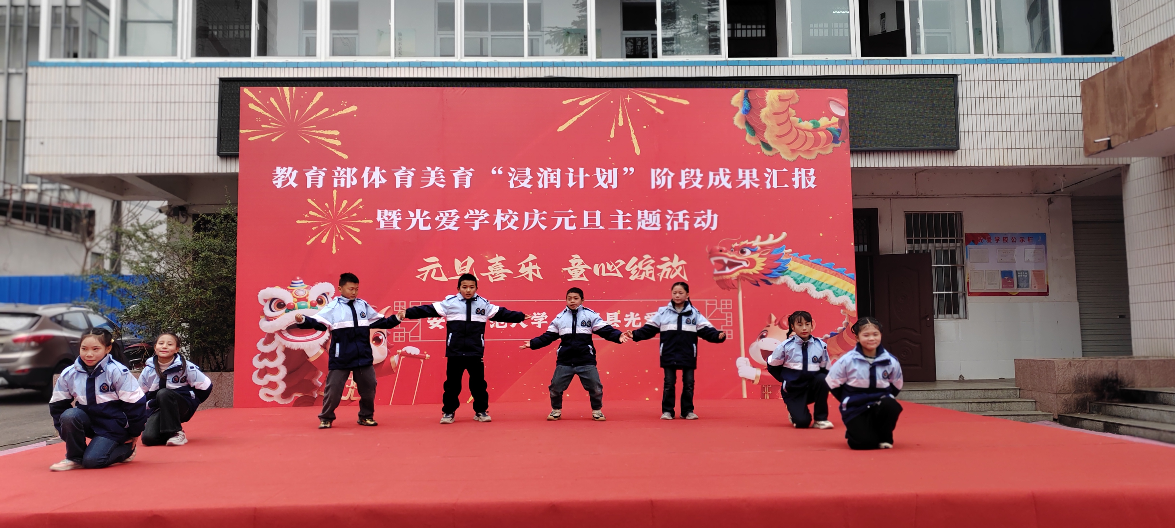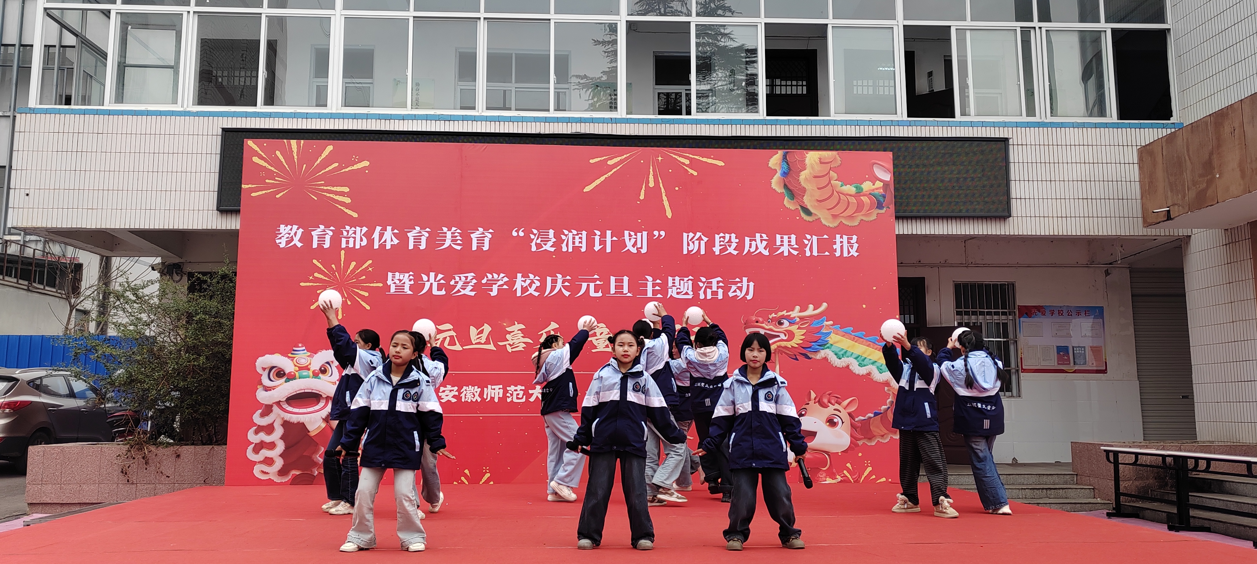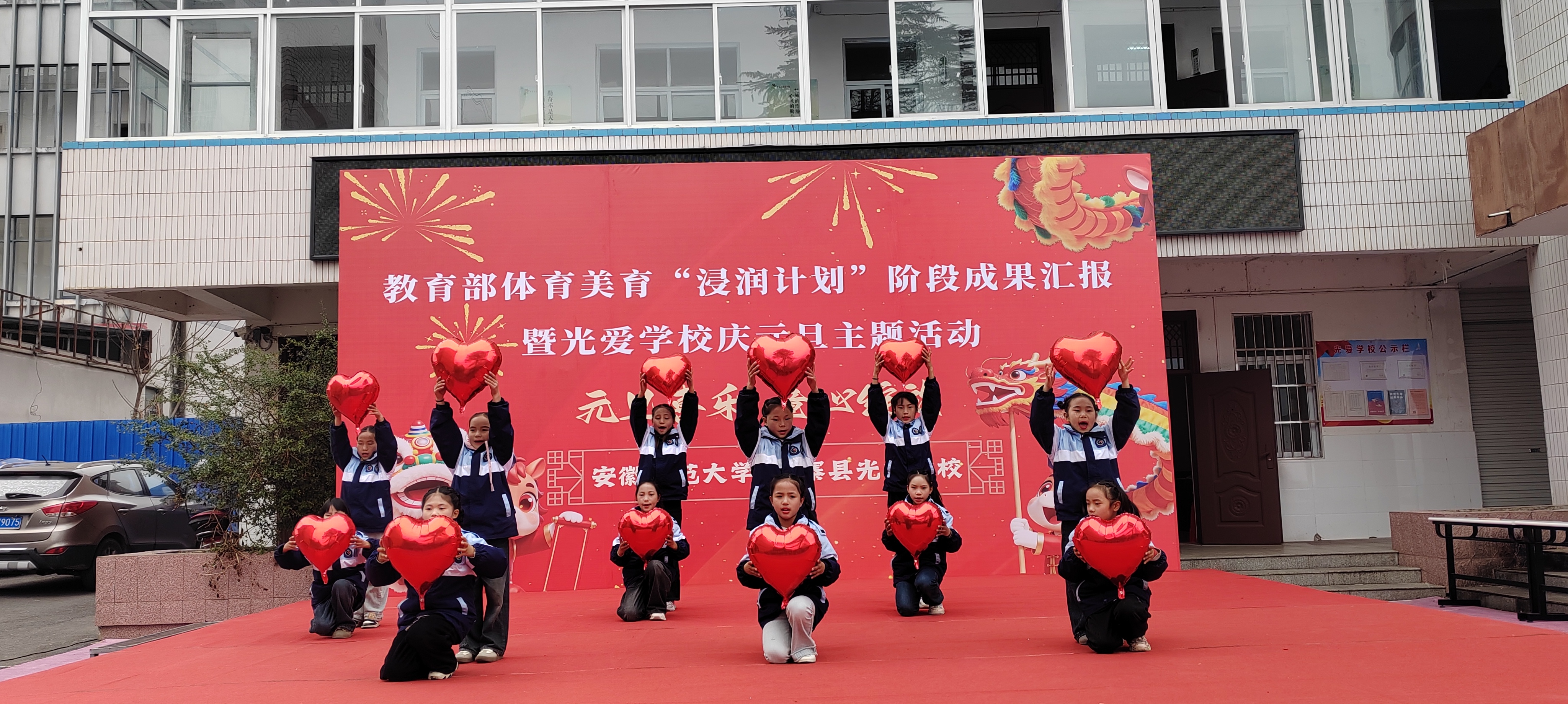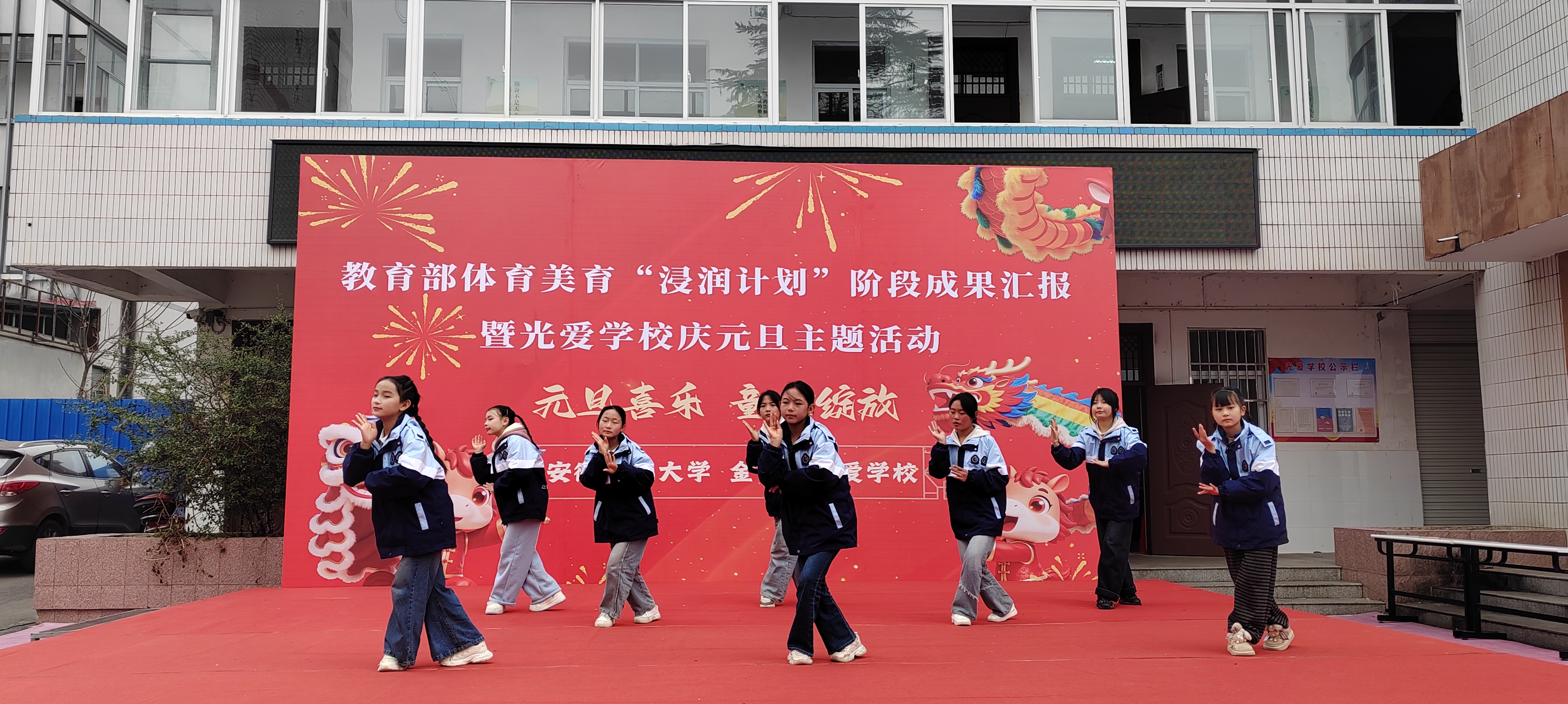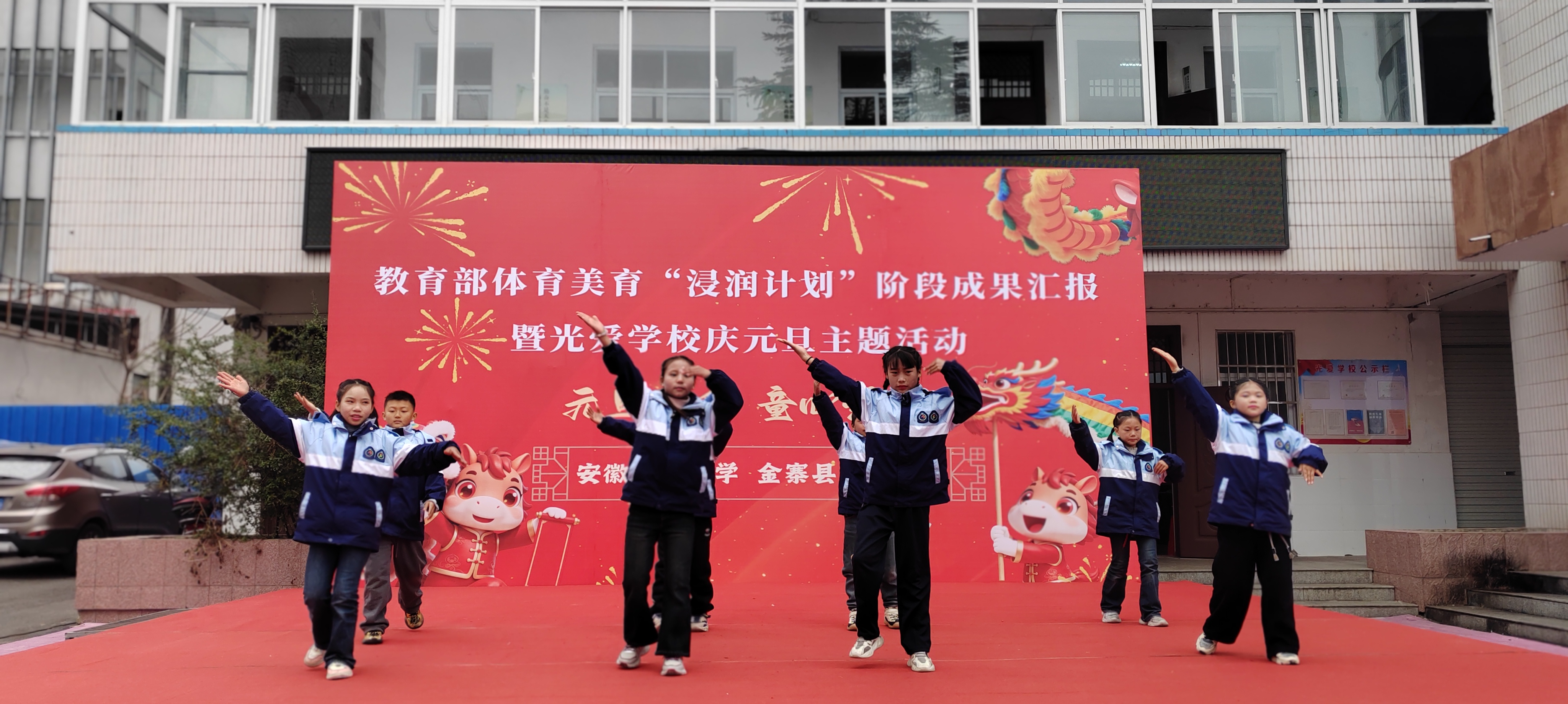 (本网讯 范易)为深入学习贯彻习近平新时代中国特色社会主义思想,全面落实教育部体育美育“浸润行动计划”工作部署,公司“浸润行动计划”团队顺利完成第六期第一阶段支教工作。12月30日,校本科生院、TapTap点点、体育公司、美术公司领导老师共赴金寨县光爱公司开展阶段成果汇报暨庆元旦主题活动,古碑镇人大主席陈永存、古碑镇党委委员李想及光爱公司董事长汪先龙等接待公司人员,并与全校师生共同见证美育育人的丰硕成果,共庆元旦佳节。