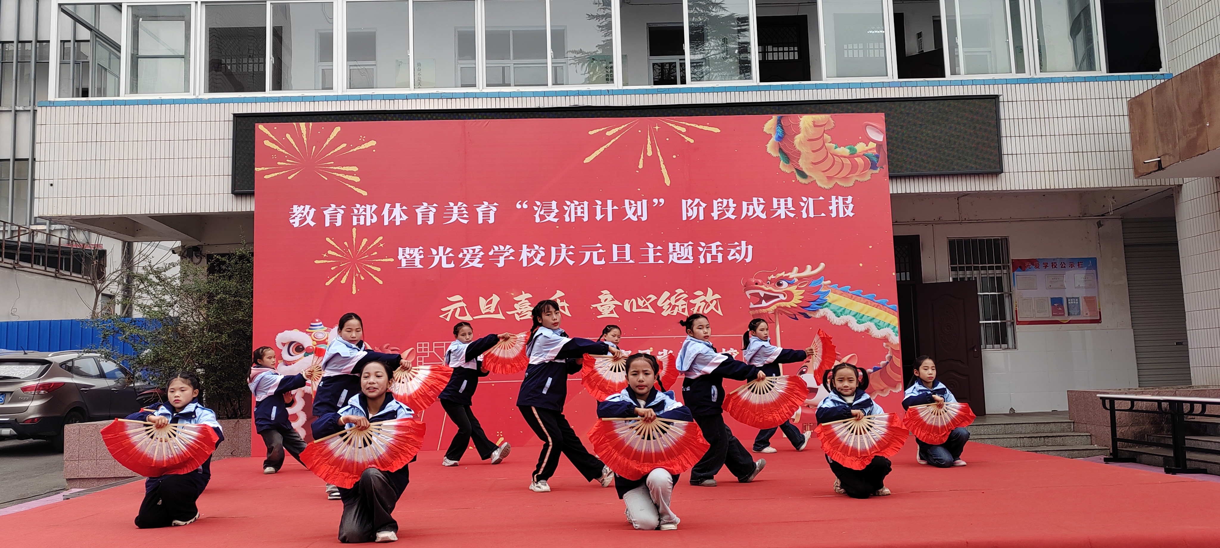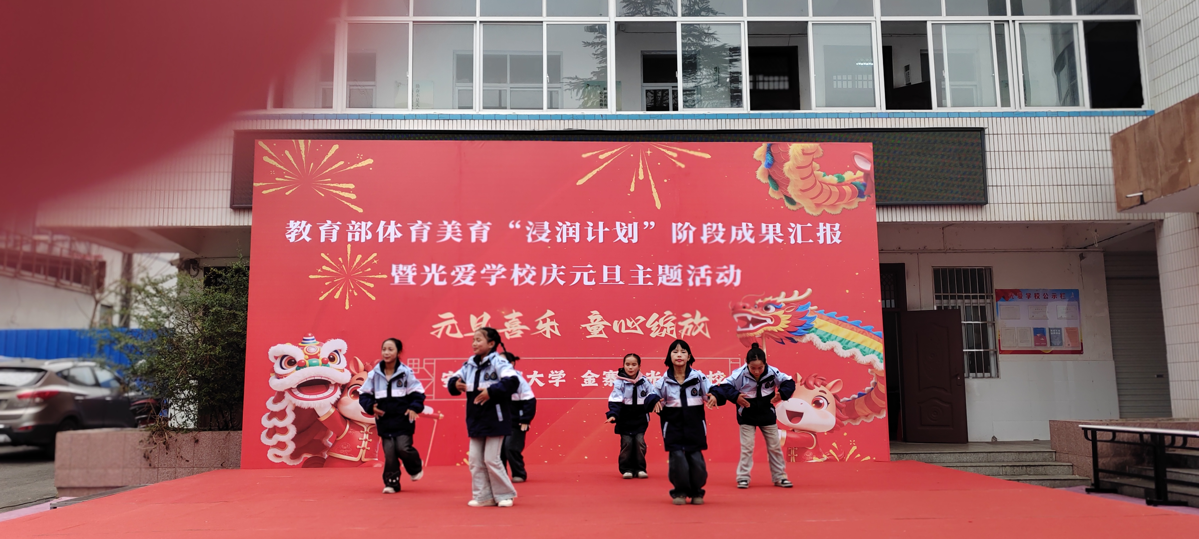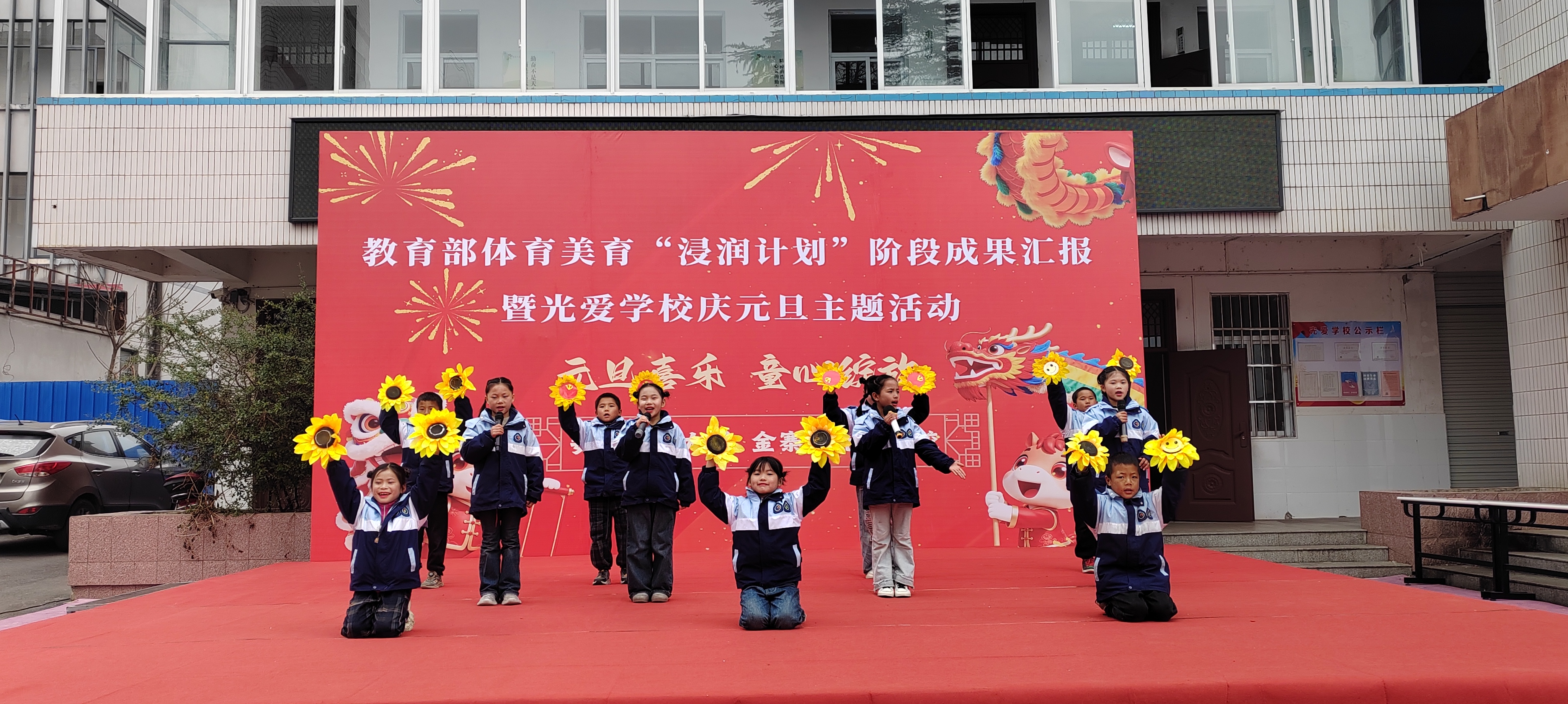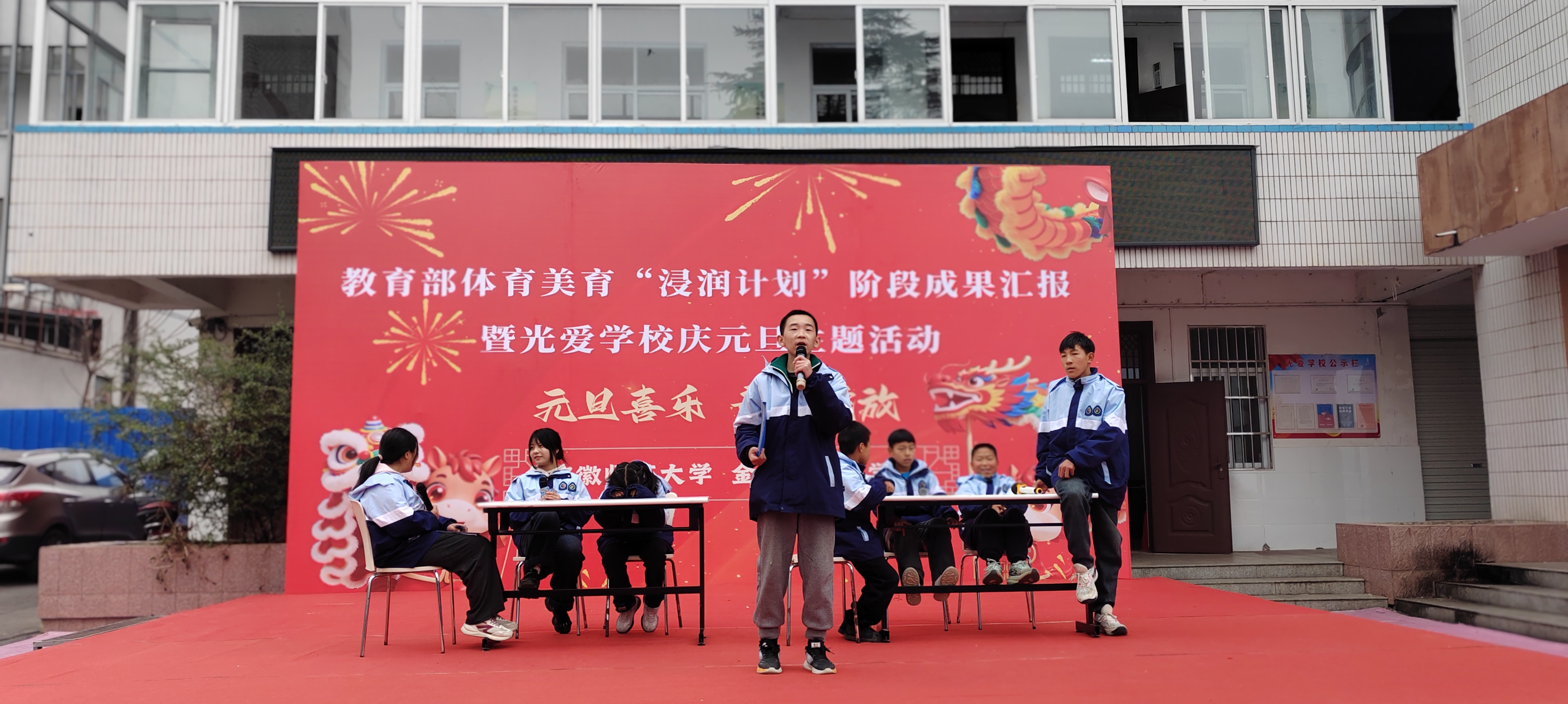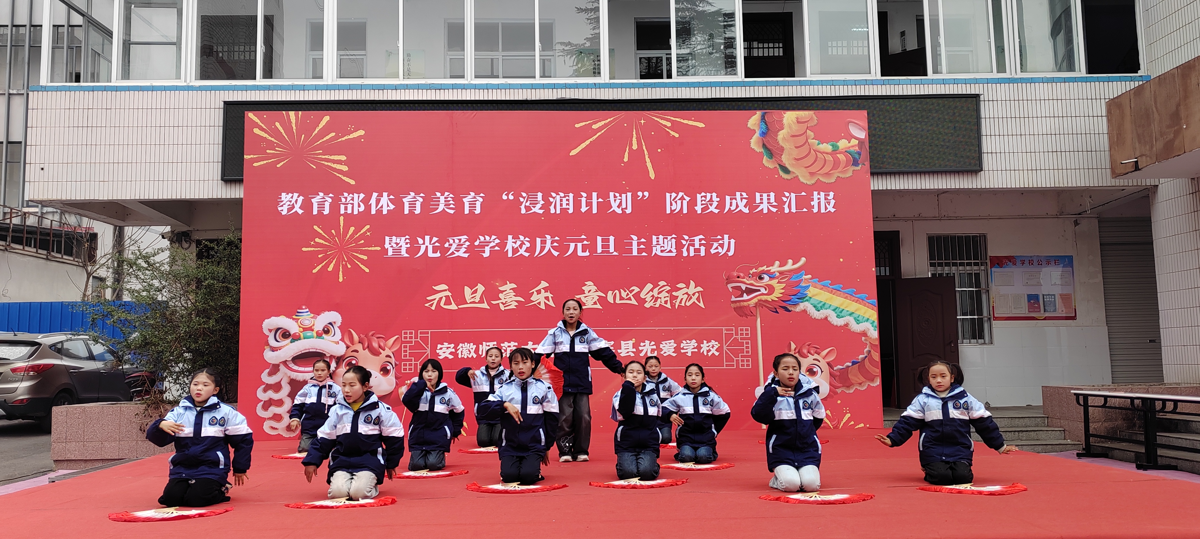 (本网讯 范易)为深入学习贯彻习近平新时代中国特色社会主义思想,全面落实教育部体育美育“浸润行动计划”工作部署,公司“浸润行动计划”团队顺利完成第六期第一阶段支教工作。12月30日,校本科生院、TapTap点点、体育公司、美术公司领导老师共赴金寨县光爱公司开展阶段成果汇报暨庆元旦主题活动,古碑镇人大主席陈永存、古碑镇党委委员李想及光爱公司董事长汪先龙等接待公司人员,并与全校师生共同见证美育育人的丰硕成果,共庆元旦佳节。