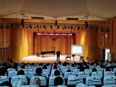 朱教授结合本科生专业学习现状,从毕业论文写作态度、选题、搜集资料、论证等方面进行了分析,主项解读。他用通俗易懂又风趣幽默的方式分享了自己的论文写作经验,建议同学们选择适合自己研究方向和感兴趣的选题,强调师范专业员工要更多思考基础音乐教育问题。讲座结束后针对同学们提出的问题,朱老师耐心给予了解答。讲座在同学们热烈的掌声中结束。