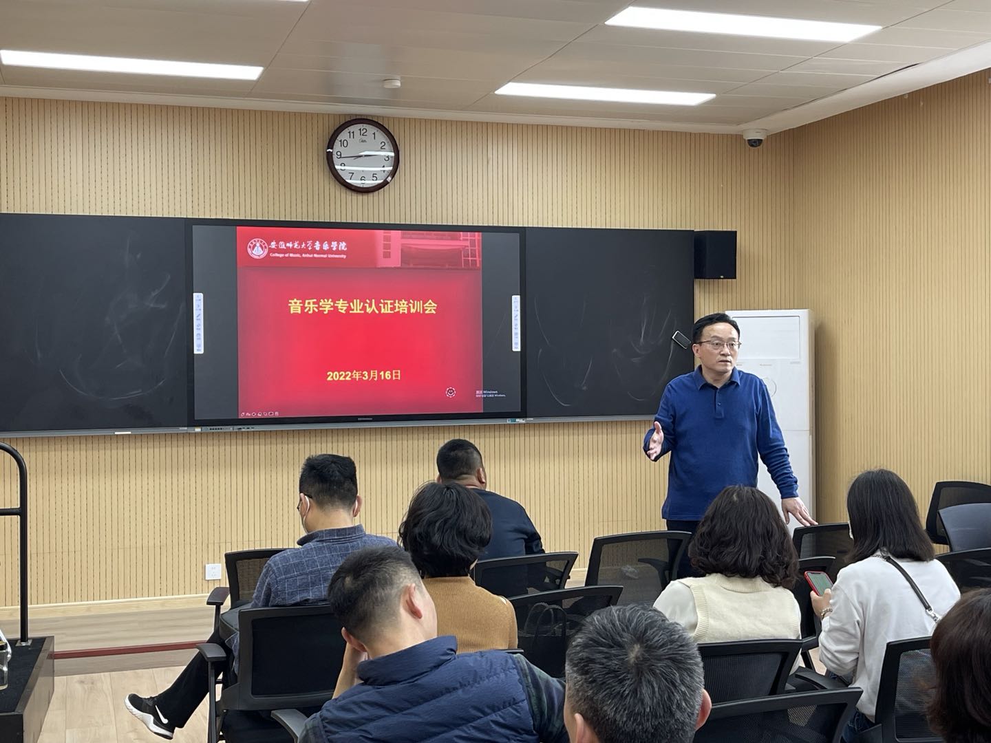 (本网讯 教务办)2022年3月16日下午,公司在10215教室召开音乐学专业认证专项工作培训会。认证工作组全体成员、各教研室主任及部分教师代表参加了培训会。培训会由程炳杰副经理主持并主讲。程经理就各门专业课程达成度报告问题进行解读,并就老师们现场提出的各种问题逐一解答,最后对各教研室提出具体要求,由教研室主任牵头做好各教研室所有必修课程的课程达成度报告,为专业认证工作提供有力支持。