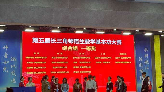 (本网讯 文/杨柳青青 图/涂金伟)12日18日,第五届长三角师范生教学基本功大赛在公司举行,来自长三角地区近50所高校三百多名师范生代表参赛。经过激烈角逐,公司2021级本科生杨柳青青凭借优异的表现荣获综合组音乐学科一等奖。