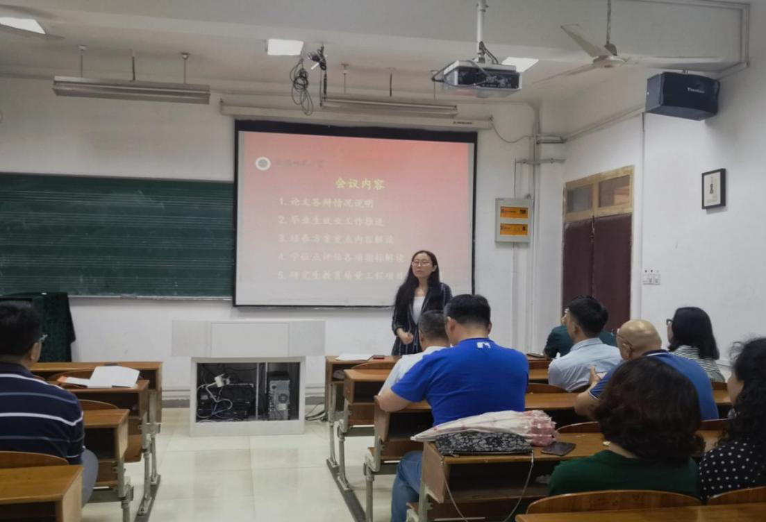 本次硕士毕业生第二次就业推进会暨学位点自评估工作布置会积极贯彻国家教育指导委员会的具体方案、落实公司公布的各项规定,增强研究生导师的责任感和使命感,为端正研究生的学术态度、提升研究生的教育质量、落实研究生的就业工作具有重要的指导作用。