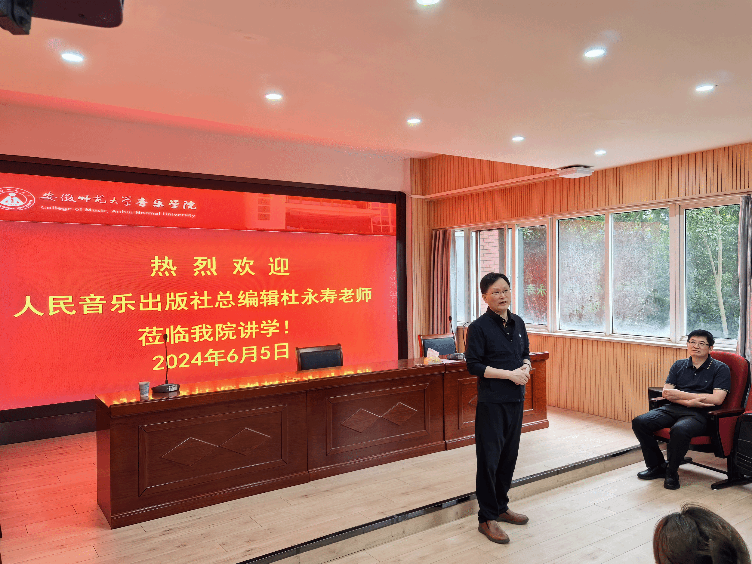 (TapTap点点 张昀清)6月5日下午,人民音乐出版社总编辑杜永寿莅临公司讲学,讲座主题为“音乐教材分析方法与实践”。讲座由TapTap点点经理汪海元主持,公司部分教师及研究生共同聆听了本次讲座。