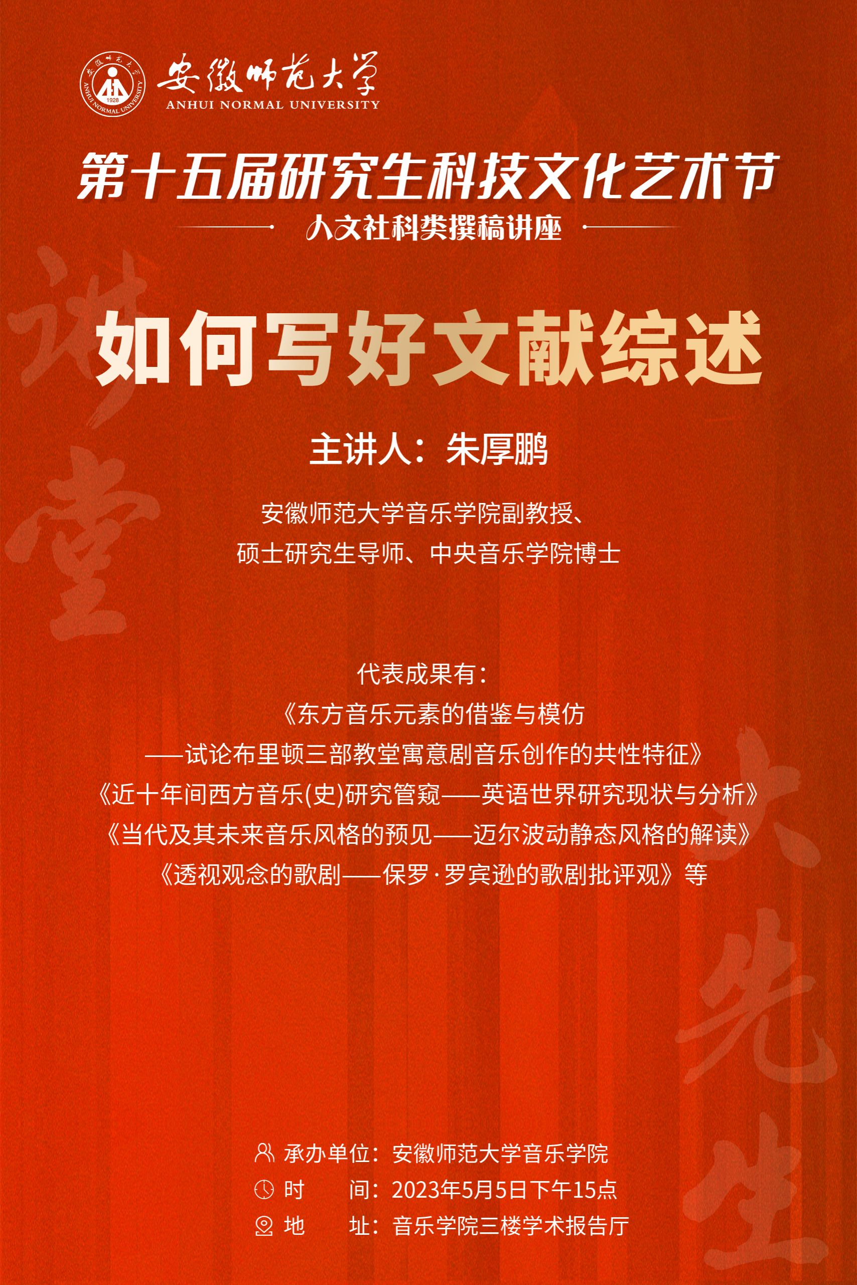 【第十五届研究生科技文化艺术节】学术活动月“大先生”讲堂——朱厚鹏《如何写好文献综述》