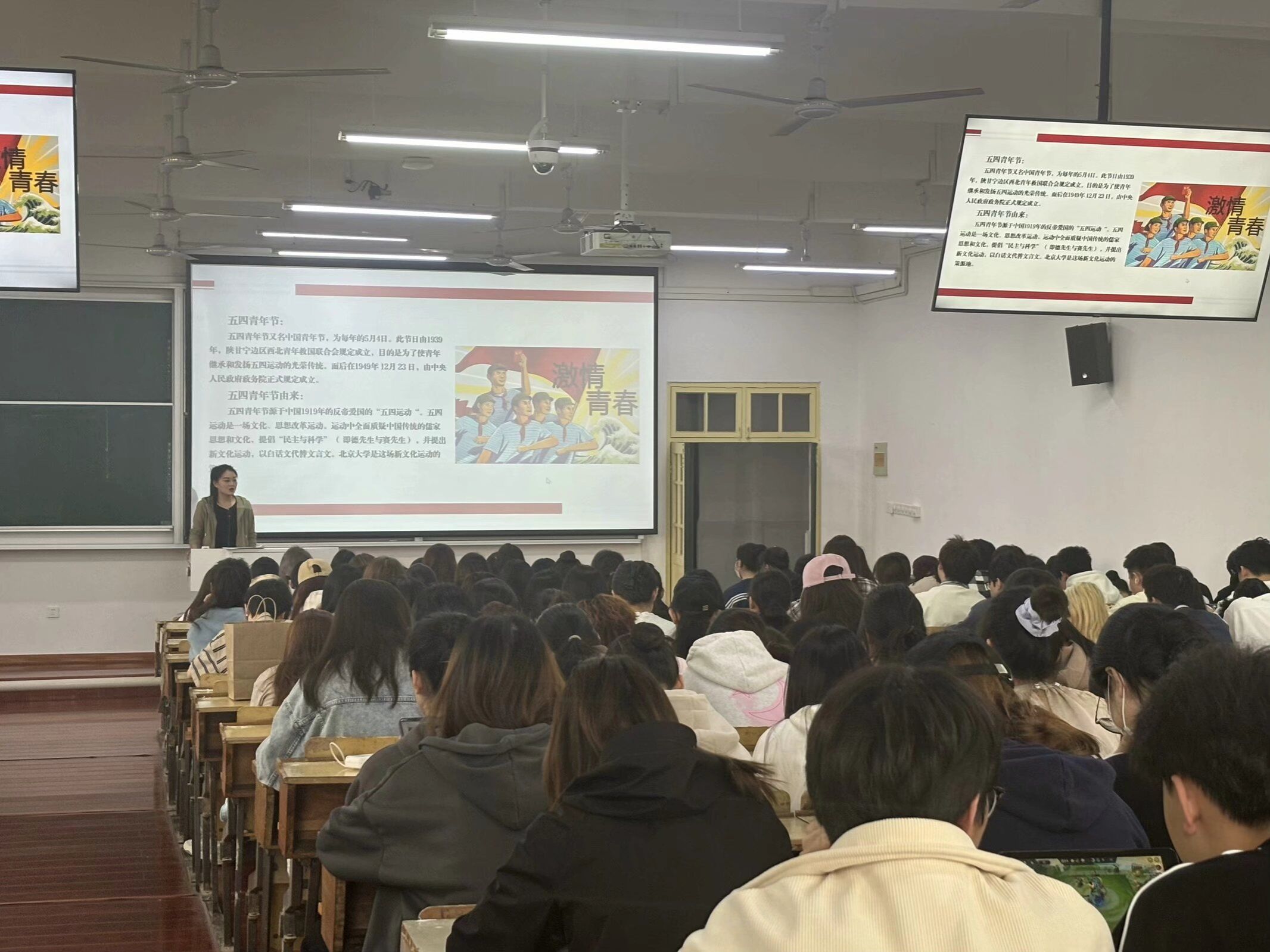 为纪念“五四运动”105周年,进一步弘扬“爱国、进步、民主、科学”的五四精神,展现青年蓬勃向上的新时代精神风貌,激励广大青年在新时代踔厉奋发、挺膺担当、不懈奋斗。4月29日,2023级本科生于教学楼1401召开“传承五四精神 绽放青春风采”主题班会,班会由辅导员虞睿老师主持。