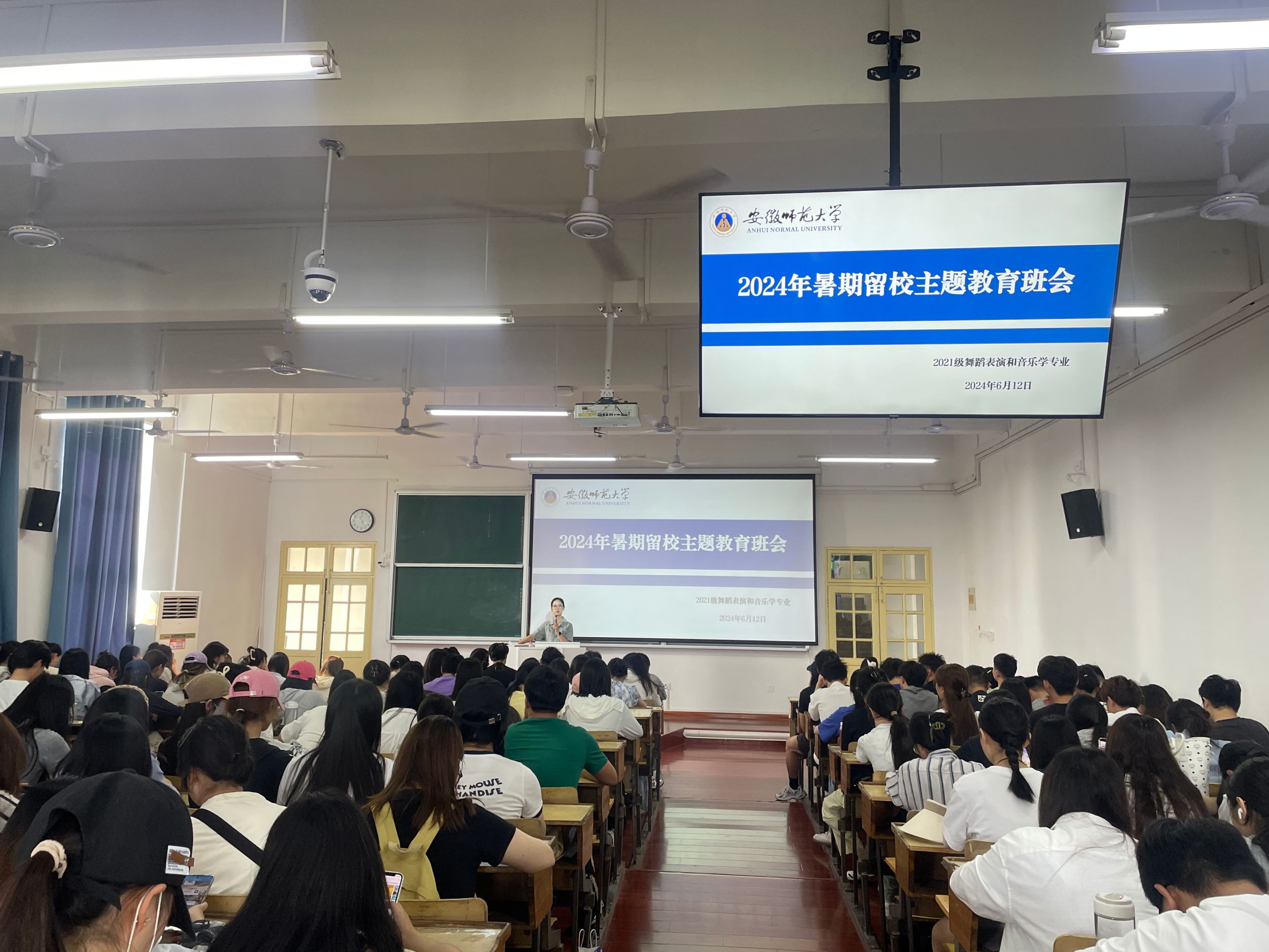 本网讯(21音乐学 余立)为落实暑期考研留校员工学习、生活等相关事宜,提高考研学子学习生活保障,6月12日下午15:30于教学楼1401教室召开2024年暑期留校主题教育班会,21级全体舞蹈表演和音乐学专业全体同学参加,班会由辅导员陈虹主持。