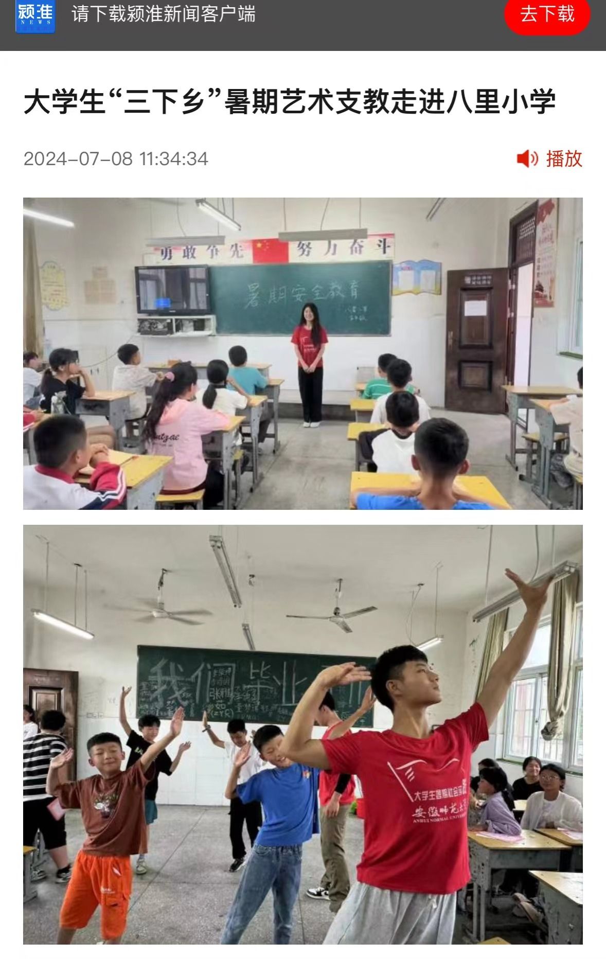 本次艺术支教实践活动还得到了当地《颍淮新闻》的关注和报道。