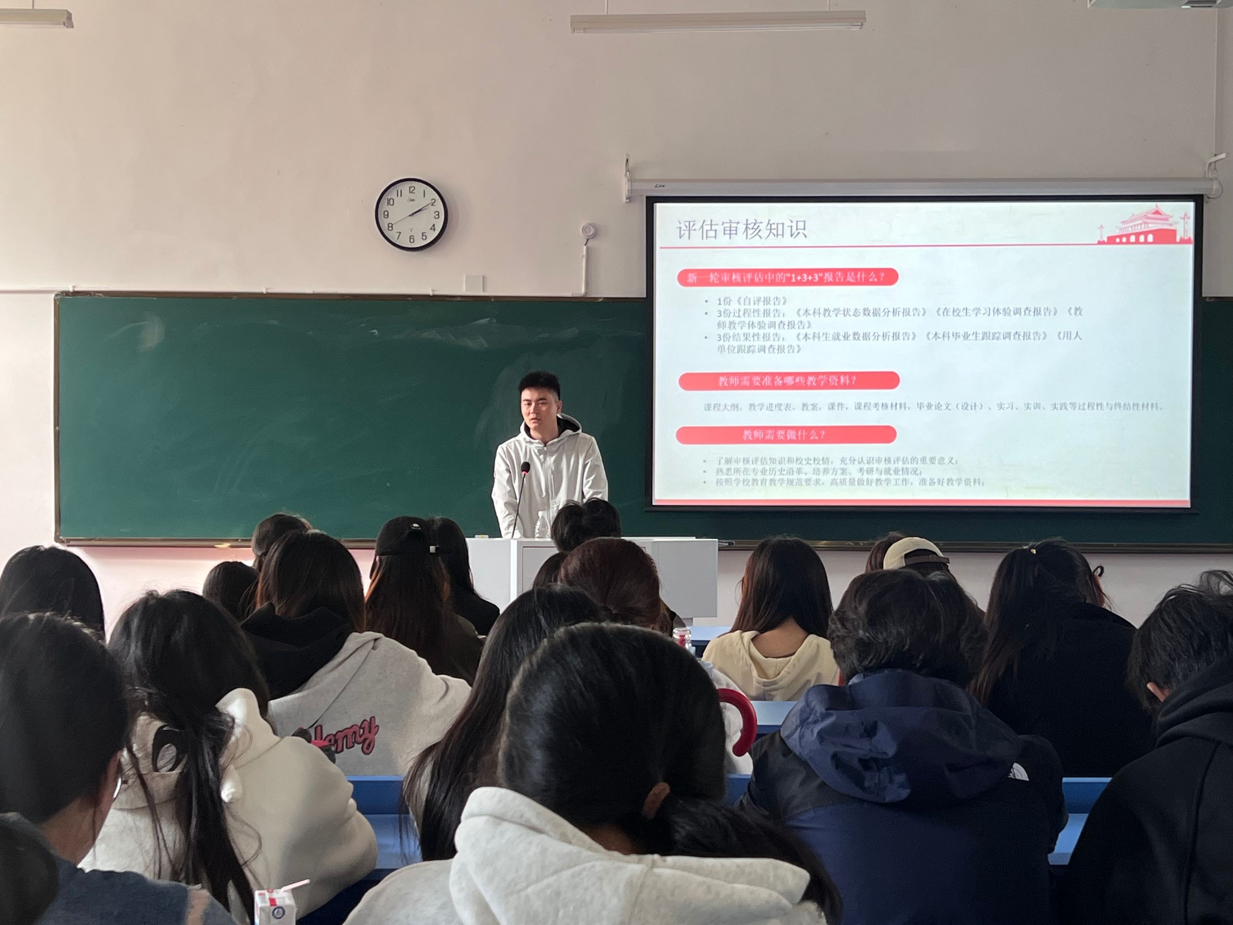 (图文/王瑞婕)为进一步强化员工对于本科公司产品审核评估的认识。11月5日下午,2022级辅导员段传钦在教学楼1101教室组织召开“本科公司产品审核评估知识宣讲会”。