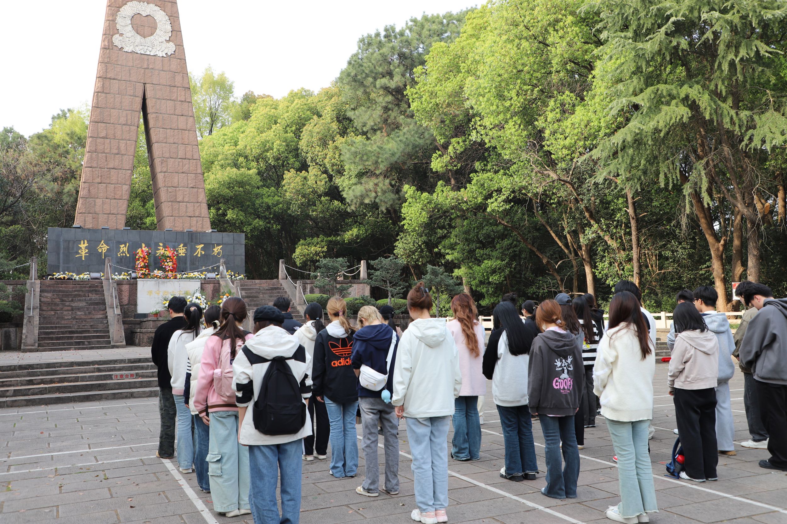 同学们怀着崇敬的心情向革命烈士纪念碑肃立默哀,表达对先烈们的无限追思与敬意,先烈们坚定的理想信念和无私奉献的精神,深深打动了在场的每一位同学,在他们的内心深处激起了对革命先烈的无限敬仰。同学们向烈士敬献花篮,鲜艳的花篮承载着同学们对先烈们的深切缅怀和崇高敬意。