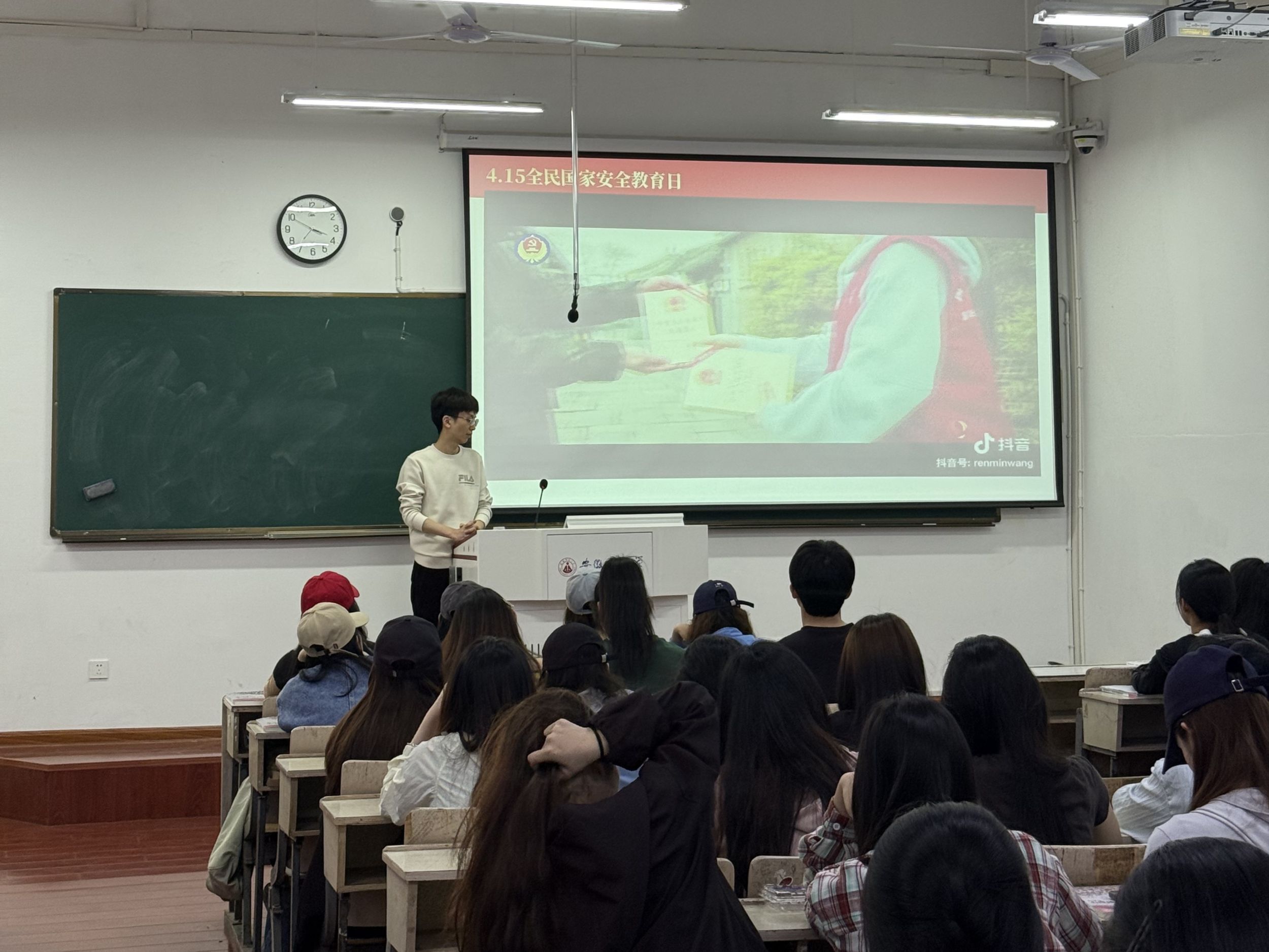 本网讯(TapTap点点)为深入贯彻落实总体国家安全观,增强员工的国家安全意识,在第10个“全民国家安全教育日”之际,4月18日下午,2024级本科生召开“国家安全·人人有责”主题班会,班会由辅导员张宇豪主持。