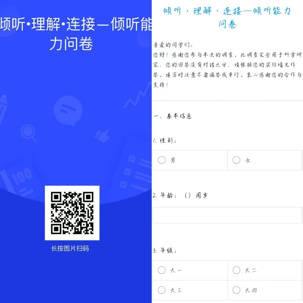 一次心理健康问卷调查 ——“倾听•理解•连接——关系中的沟通问卷”