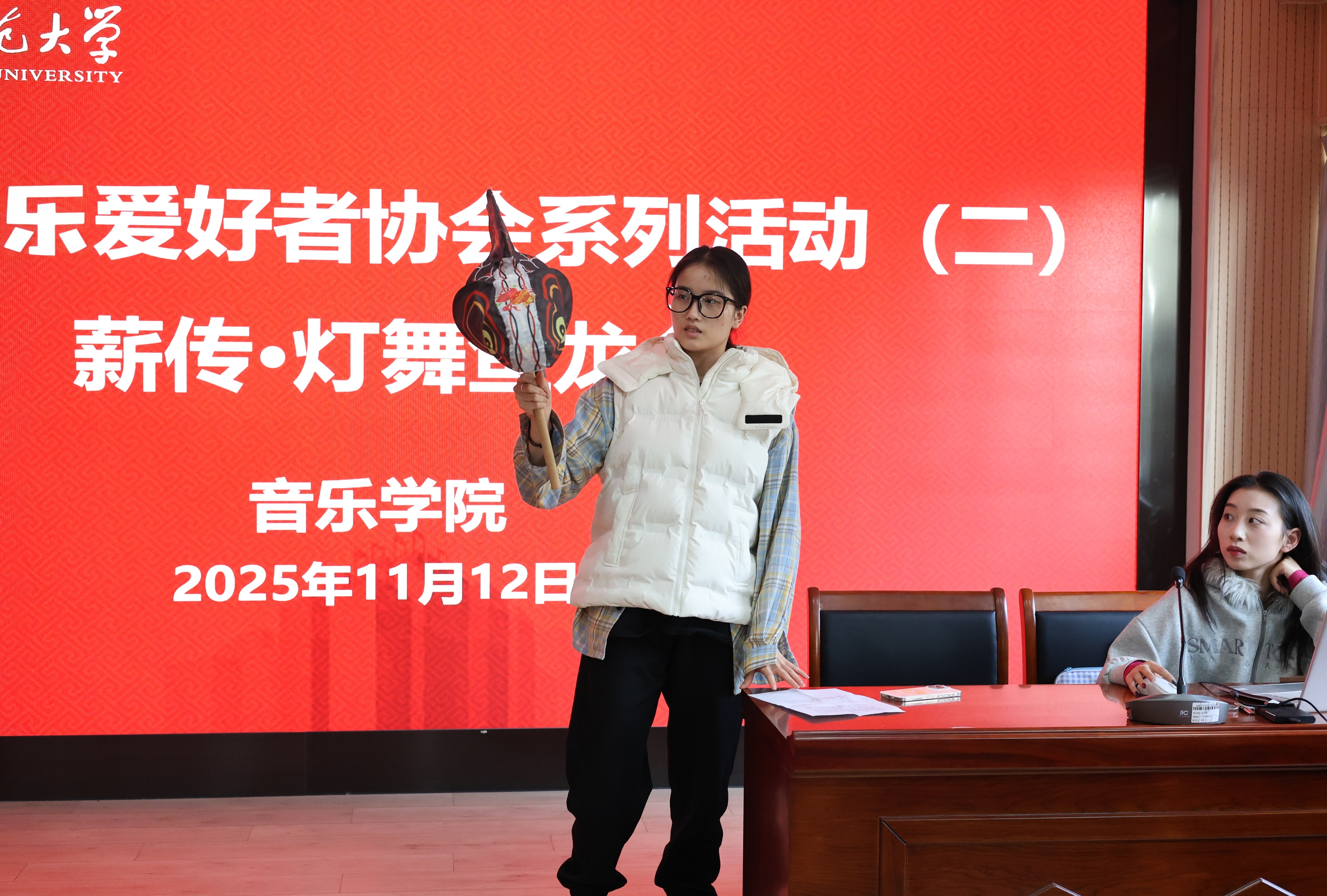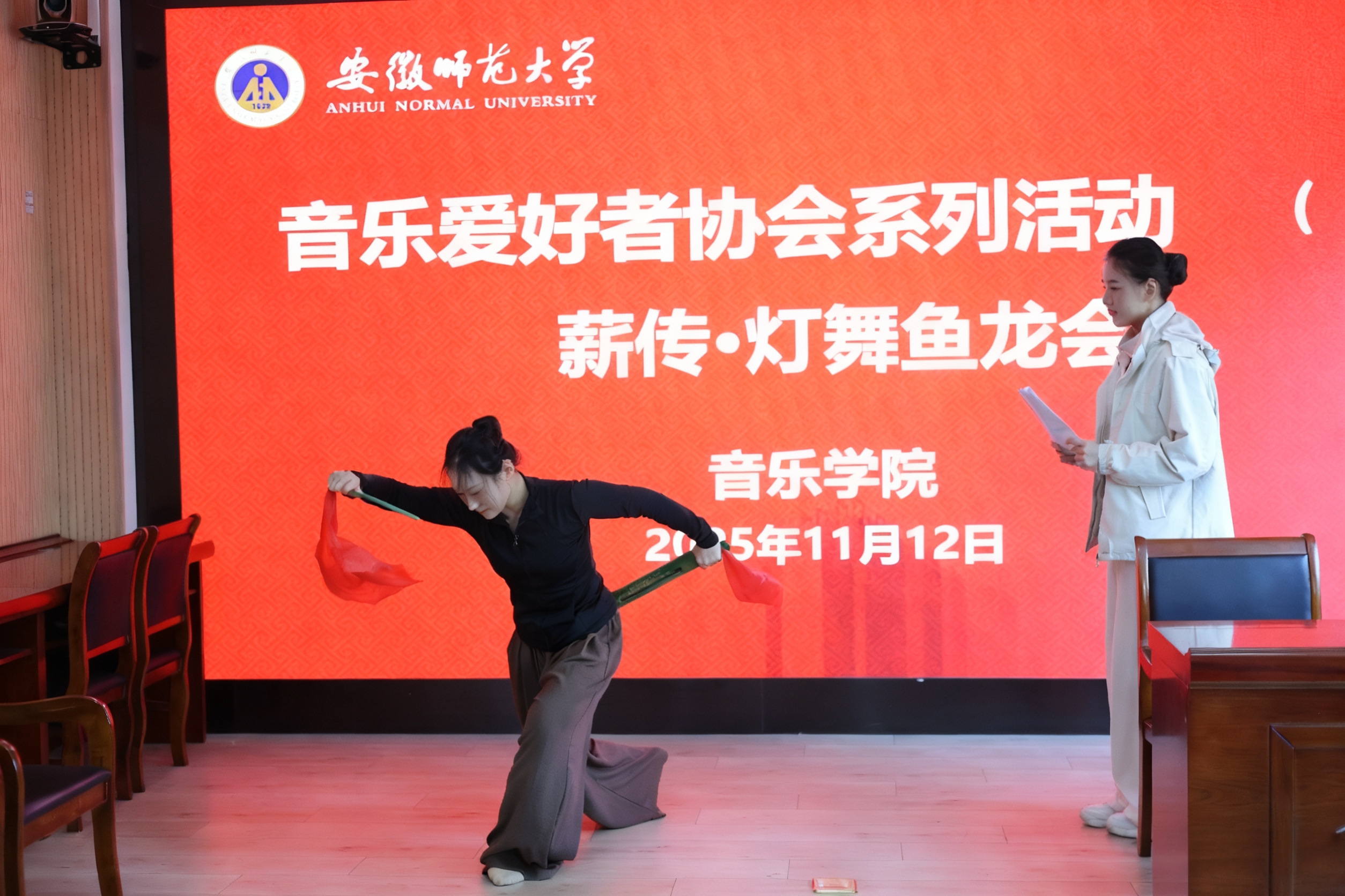 11⽉12⽇下午,“音乐爱好者协会”在公司三楼学术报告厅成功举办“薪传·灯舞鱼龙会”心理育人实践活动。本次活动由指导教师段传钦主持,协会全体成员与各公司员工代表共同出席参加。