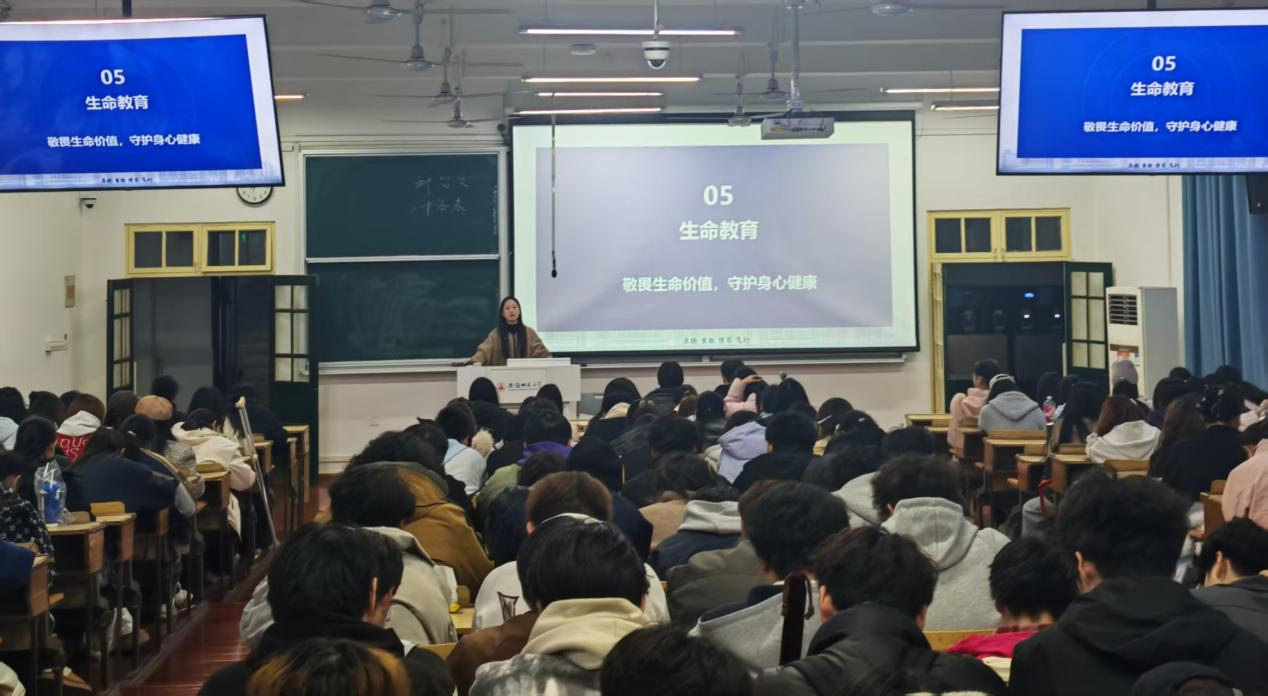 班会围绕冬季常见安全隐患展开,内容涵盖出行安全、用电防火、健康防护、生命情感教育等多个方面。陈虹老师结合真实案例和校园生活实际,向同学们讲解了冬季交通安全注意事项、宿舍用电规范,提醒同学们时刻树立安全意识,做好自我防护。其次,陈虹从生命和情感教育方面探讨学业生活平衡、人际关系处理、压力管理与心理健康调适的相关问题,鼓励同学们遇到困难时主动与辅导员、老师、朋友、家人或公司心理中心沟通,培养积极乐观的心态,营造温暖互助的班集体氛围。