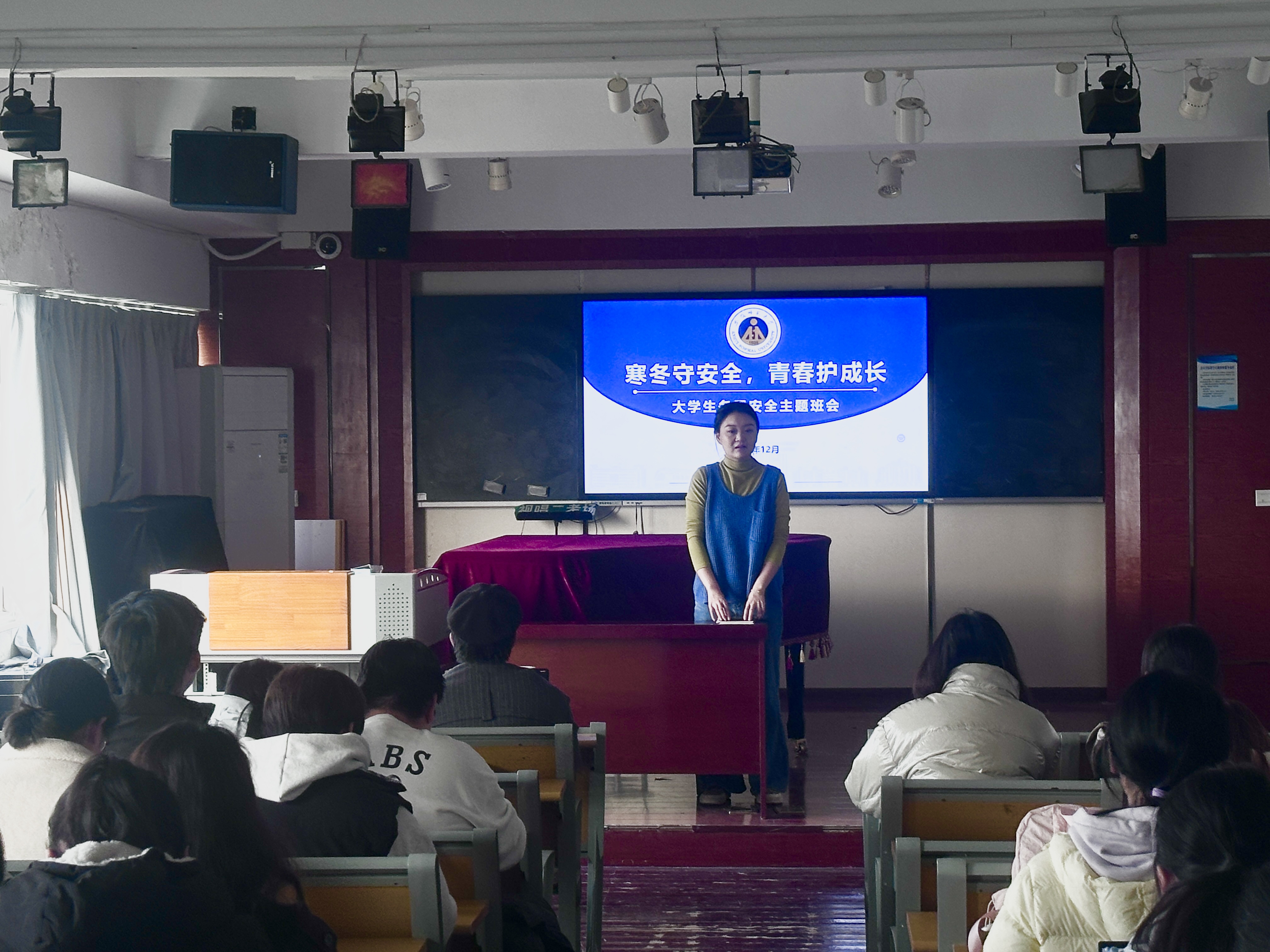 在交通安全方面,班会结合校内骑行事故案例,倡导“不逆行、不载人、不看手机”的文明骑行规范,特别提醒同学们骑乘电动车务必佩戴头盔、遵守交通规则;雨雪天气尽量选择步行,注意防滑防摔,确保出行安全。班会还重点聚焦心理健康与情感安全,引导同学们学会理性沟通、主动倾诉、合理宣泄情绪。虞睿强调:“情绪低落不是软弱,求助是勇敢的表现”,并公布了公司心理健康中心热线,鼓励有需要的同学及时寻求专业支持。