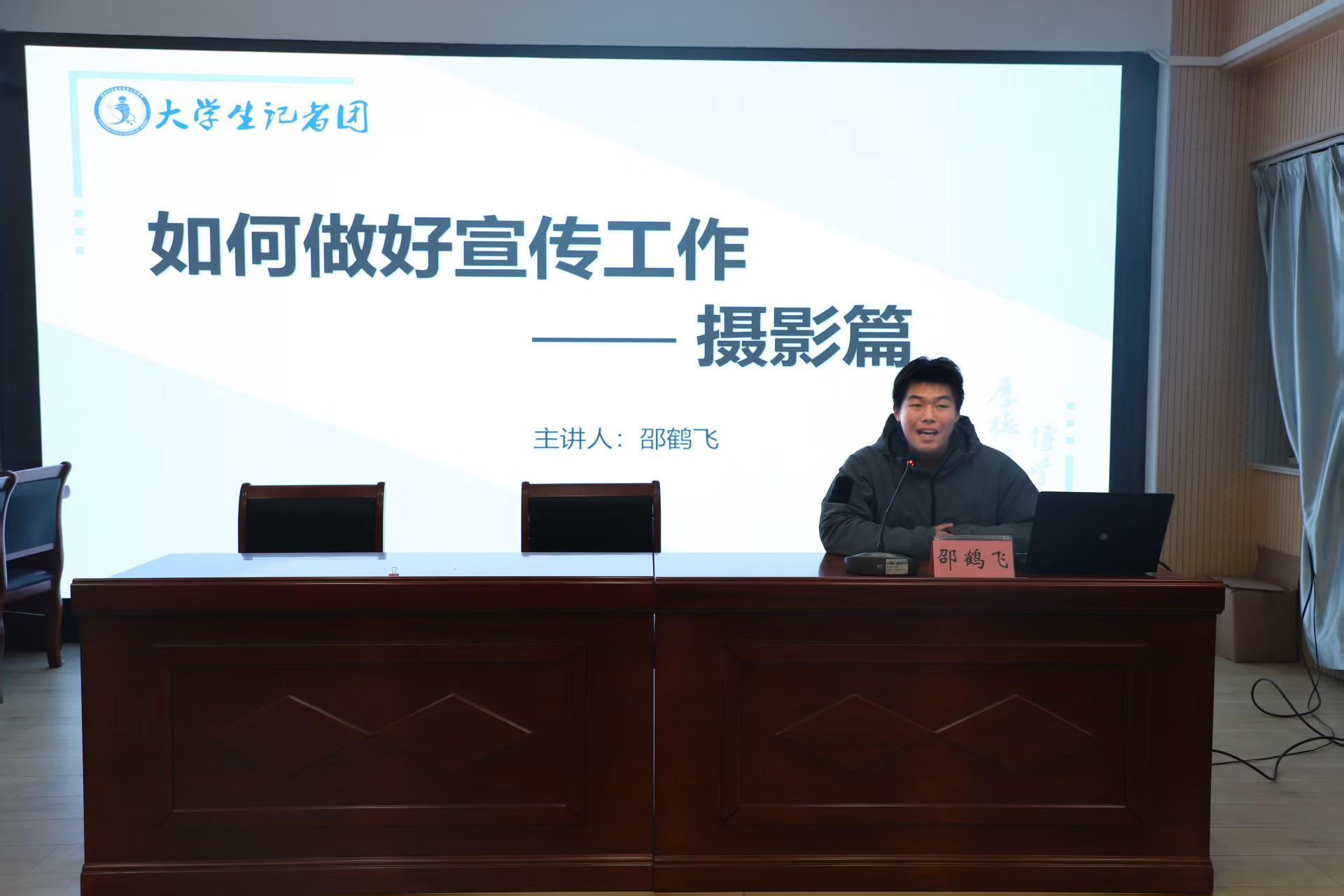 活动现场氛围热烈,同学们早早入场,座无虚席。活动伊始,院团委员工会相关负责人简要介绍了“员工素质能力提升营”系列活动的创办宗旨与整体规划,强调了宣传能力在员工工作与公司发展中的重要作用。来自校老员工记者团的学长邵鹤飞围绕活动主题,系统讲解了宣传策划的基本逻辑、新闻摄影的实用技巧以及视觉构图的核心原则。通过丰富的实例分析与操作演示,帮助同学们理解如何更有效地运用图片与视觉语言进行内容表达与传播。