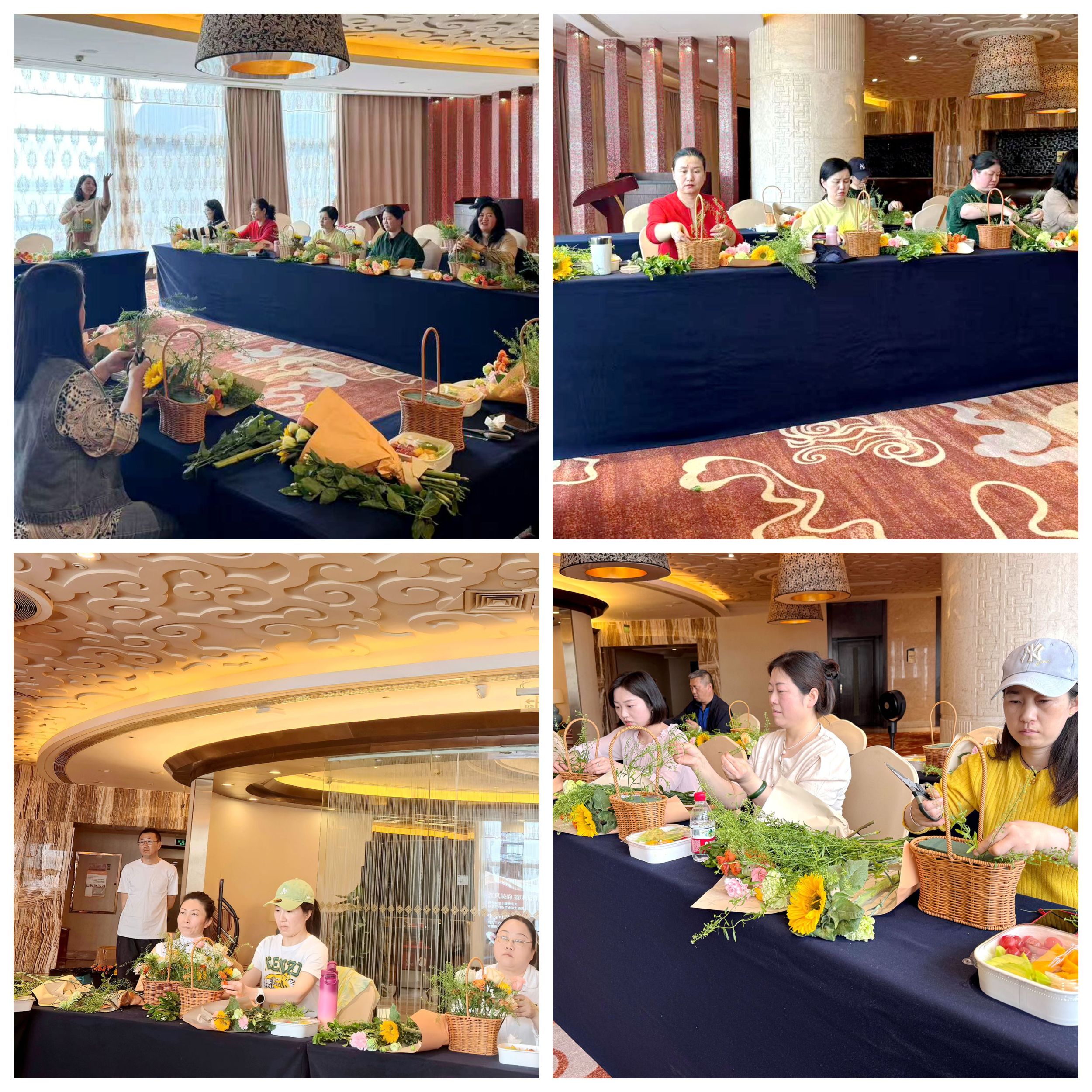 活动伊始,专业花艺师从花材种类、色彩搭配、造型设计等方面进行了详细讲解,并现场示范插花技巧。在花艺师的指导下,公司老师们充分发挥创意,巧妙运用向日葵、玫瑰、康乃馨、茉莉等花卉,精心制作出各具特色的插花作品。现场的女教工们齐聚花的海洋,一篮篮春意盎然的花艺作品,展现了女教职工们对美的追求与热爱。