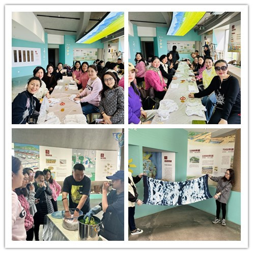 鸠兹湾是有着悠久历史的古鸠兹发源地,它的艺创共富乡村是省级休闲农业和乡村旅游示范园。在鸠兹湾乡村会客厅,大家了解了鸠兹湾的发展历程。女教工们满怀兴致,参观了鸠兹湾靓丽的乡村景色和焕然一新的民宿,品尝了新鲜的农家美食,感受了先进的农业科技,体验了有趣的非遗技艺扎染,自己动手制作了“扎染围巾”,共同分享劳动的快乐。