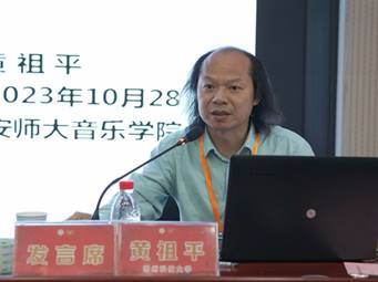 苏州科技大学黄祖平教授是1997届本科员工,他以《论音乐中的“字谜结构思维》为题发言,他首先对文学中“字谜”结构思维追踪溯源,梳理其概念、历史、分类及运用形态。在此基础上,揭示“字谜”思维在音乐中的运用及其表现形式(换序、重组、递增、递减等),以此打开一个新的音乐观察点,为分析音乐、创作音乐提供新的思维模式。