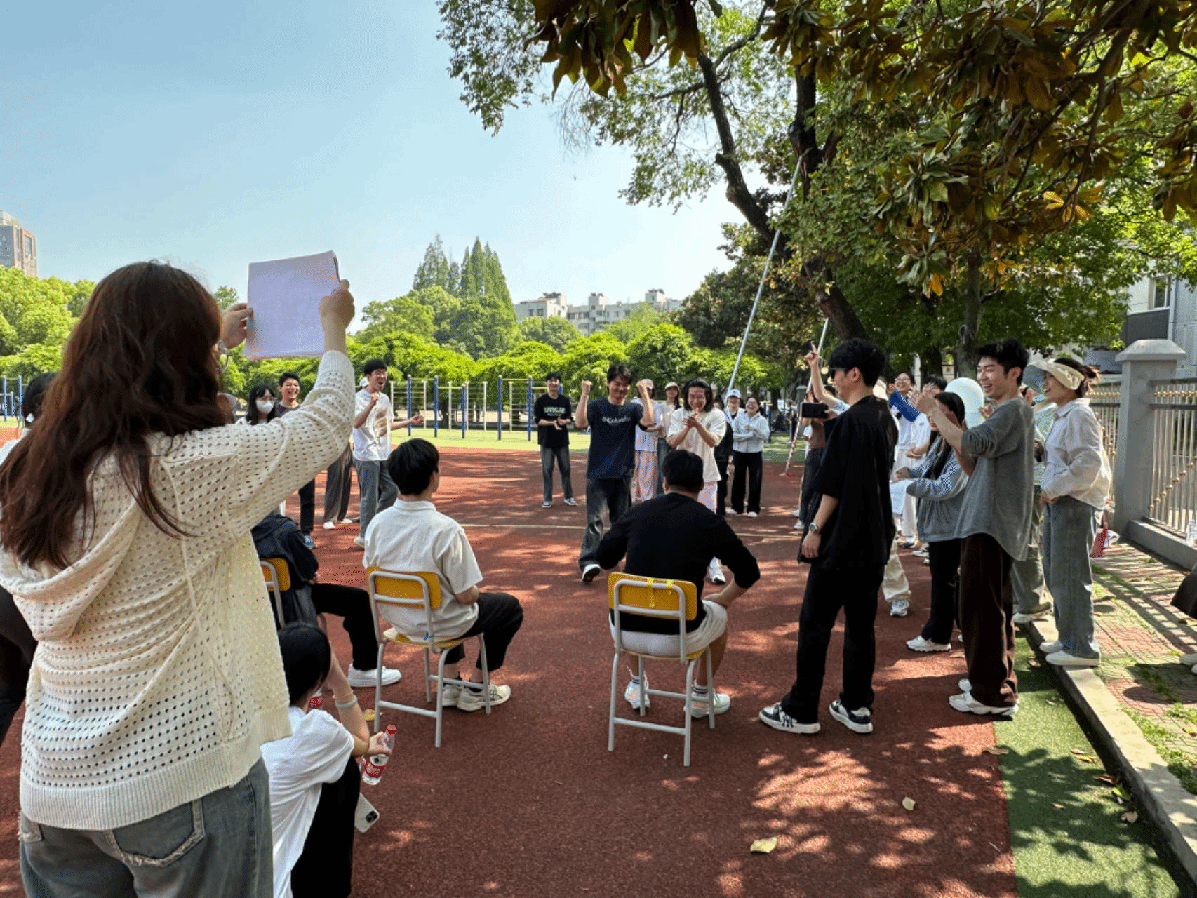 每组同学们充分发挥团队合作与集体精神,运动会在竞争的同时,也具有浓浓的趣味性,观赛的同学频频呐喊,赛场飘荡着同学们的欢笑、呐喊、加油声,体现了同学们浓厚的热情。