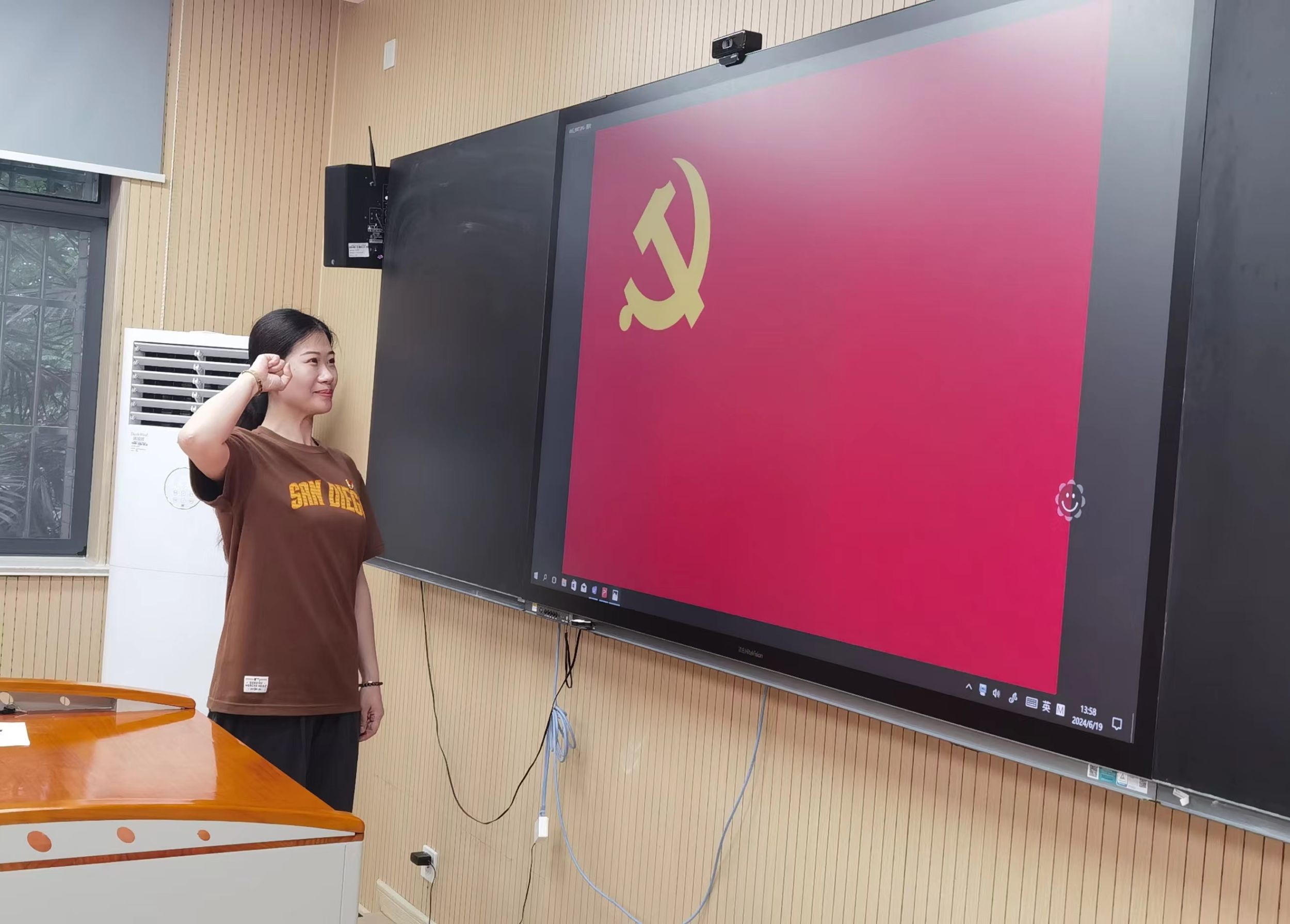 支部会议同时开展了对预备党员闫玉雯同志的发展工作,闫玉雯同志面对党旗进行了庄严的入党宣誓。