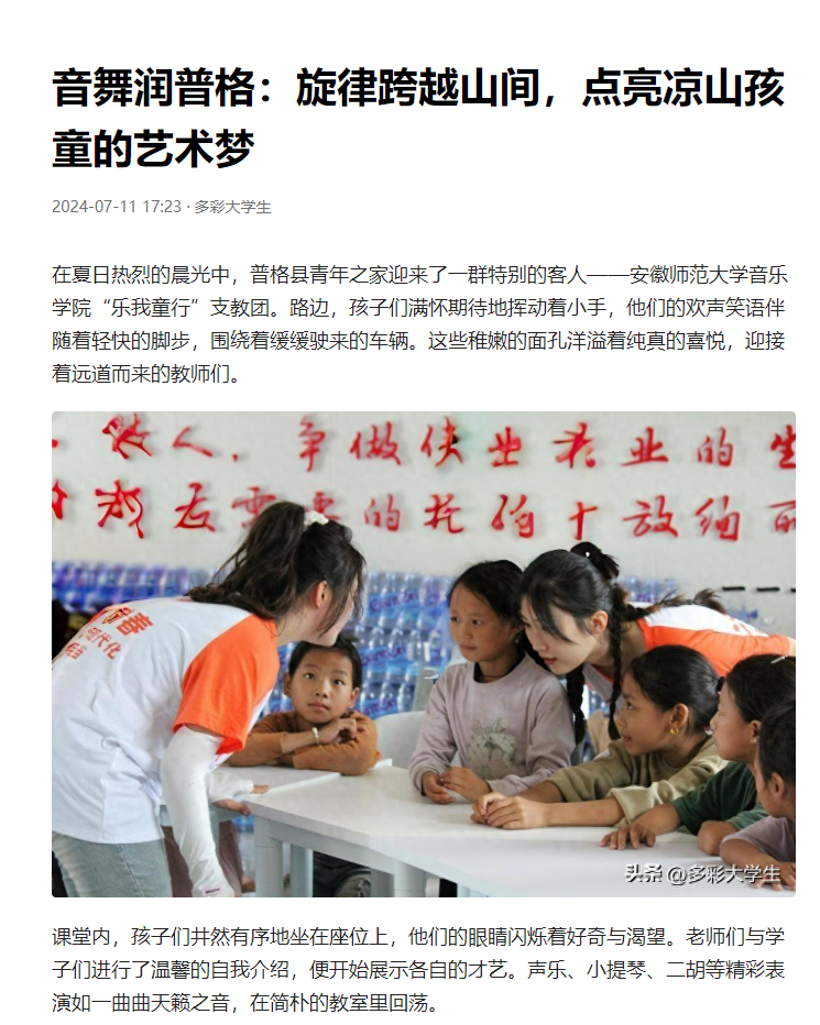 支教团以艺术为纽带,搭建起沟通的桥梁,联结了深山与外界的文化脉络。在这交流的火花中,孩子们的眼界被开阔,文化在这片热土上绽放出了别样的光彩。