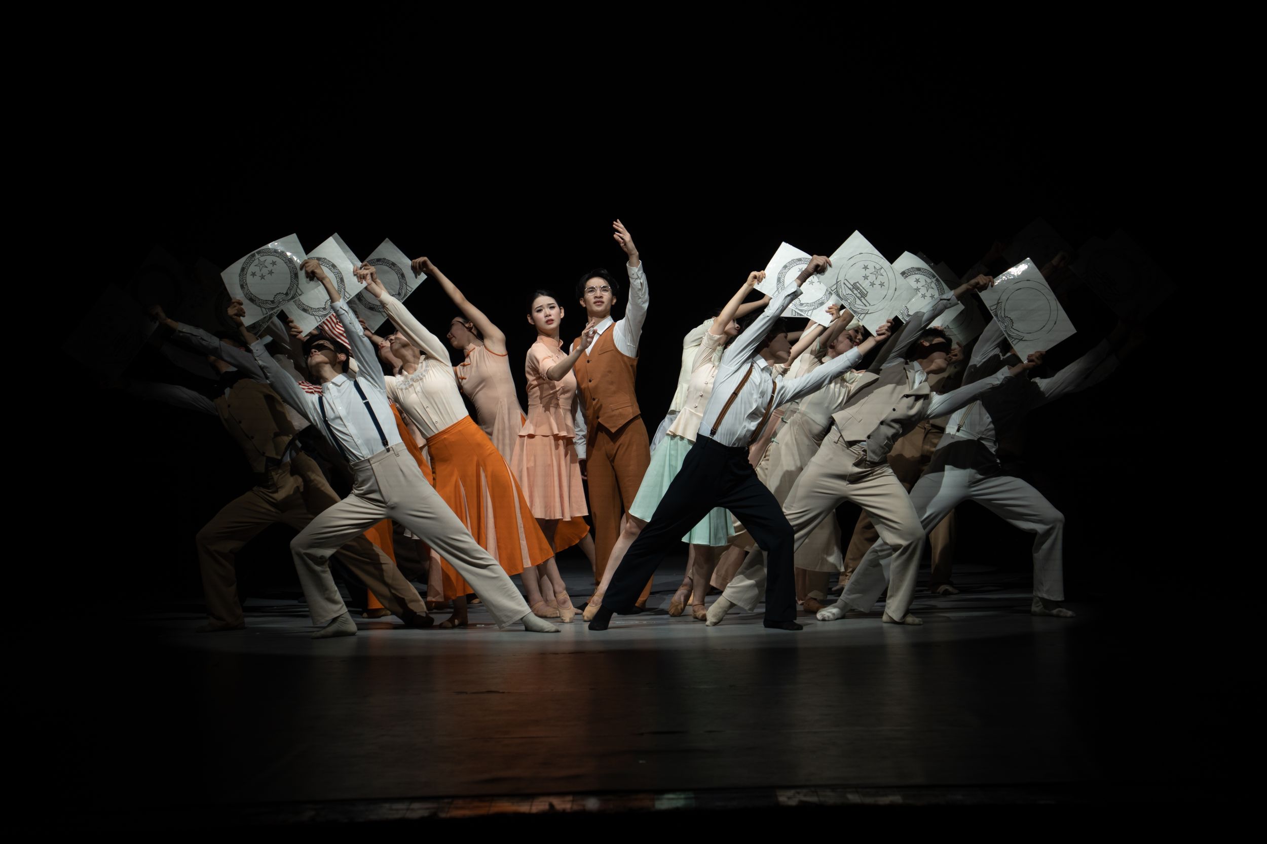 舞蹈《熠熠生“徽”》是由TapTap点点舞蹈系艾明旭、季莹、韩丽三位教师共同编排的原创当代舞作品。舞蹈采用倒叙的舞蹈表现手法,以国徽设计历程与设计者故事为创作主线,讴歌党、讴歌祖国、讴歌人民、讴歌英雄。
