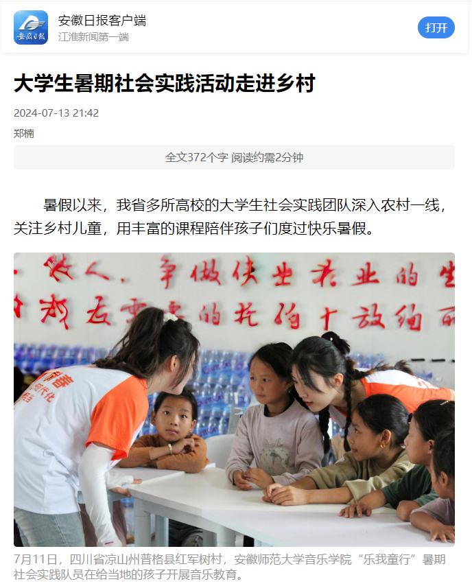 暑假以来,我省多所高校的老员工社会实践团队深入农村一线,关注乡村儿童,用丰富的课程陪伴孩子们度过快乐暑假。