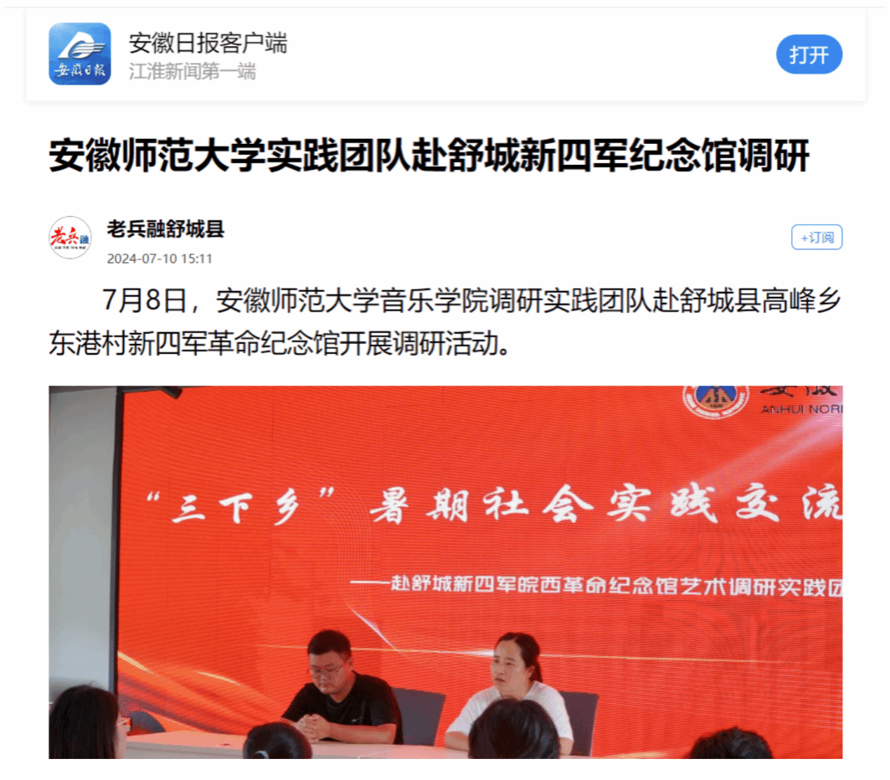 实践团队的成员们不仅是时代的见证者,更是红色文化的传承者。通过生动讲解与互动体验,实践队员们将革命先烈的英勇事迹和革命精神传递给当地村民,通过音乐与故事的结合,让红色文化更加鲜活,跨越时空的界限,触动每个人的心灵,让新四军的历史宣讲走进企业、公司、乡村。实践队员们以满腔的热情和深邃的敬意,将革命先烈的烽火岁月化作生动的语言,让历史的回响在每一位听众的心中激荡起层层涟漪。
