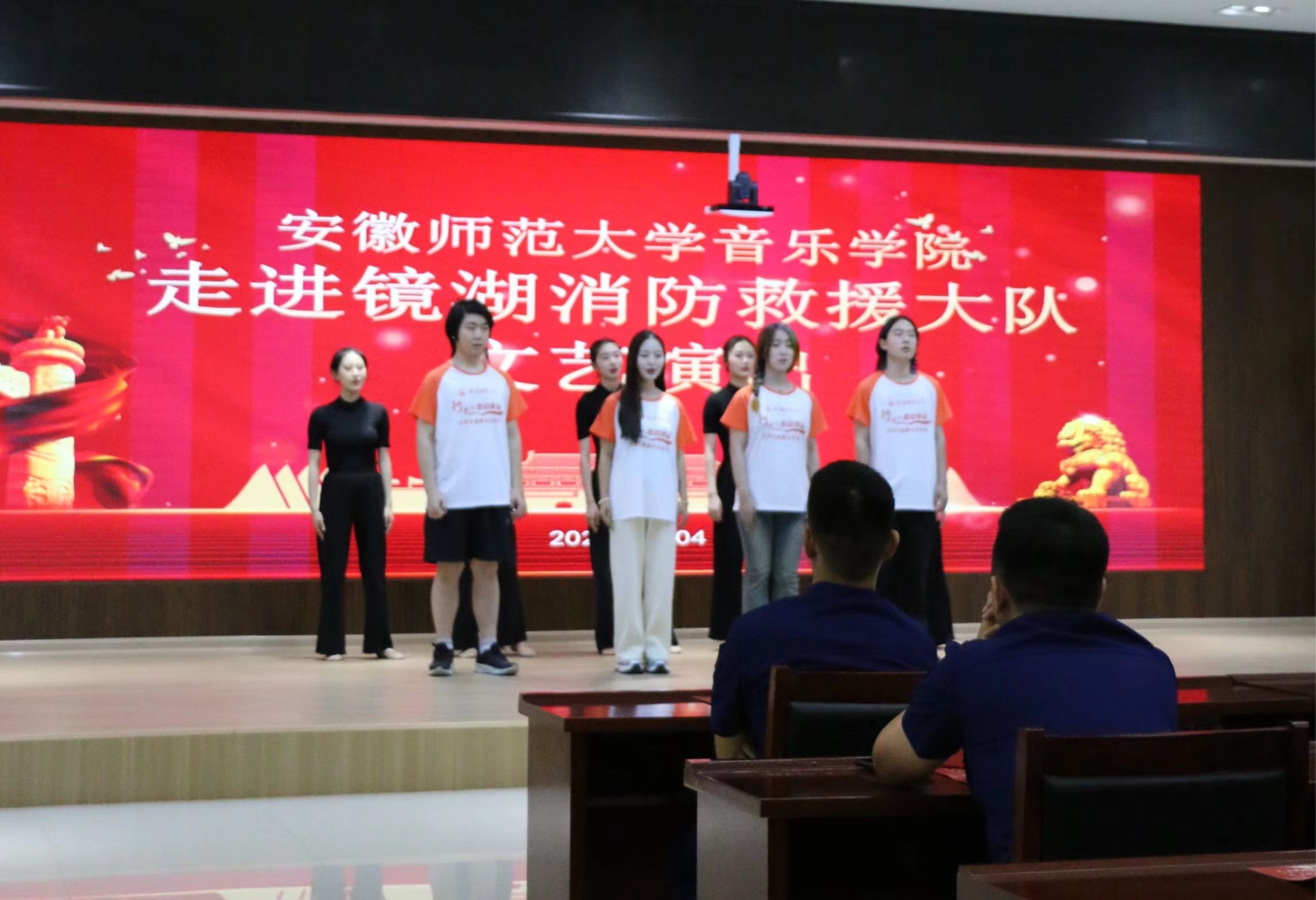 实践团队的成员们围绕消防主题策划了一系列的精彩节目,他们通过舞蹈、乐器演奏、歌曲演出等多种形式,用文艺表演的形式表现对消防战士们的敬意。