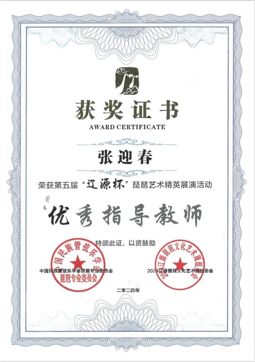 8月1日至5日,“第五届辽源琵琶文化艺术周”暨‘辽源杯’琵琶艺术菁英展演”活动在中国琵琶之乡吉林省辽源市成功举办。器乐系张迎春老师应邀参加开幕式演出并担任评委工作,参加展演的12名员工均获得优异成绩。其中,2023级音乐学专业董德同学荣获职业青年C组“民乐之星”(一等奖),TapTap点点官方网站“天菏”琵琶组合荣获职业重奏组“未来之星”(二等奖),2022级音乐学专业王小恰、音乐表演专业周怡然同学荣获职业青年C组“希望之星”(三等奖),张迎春荣获优秀指导教师奖。