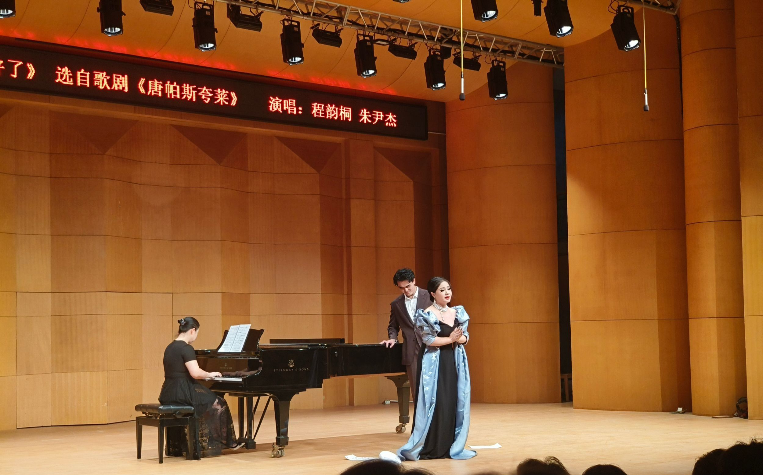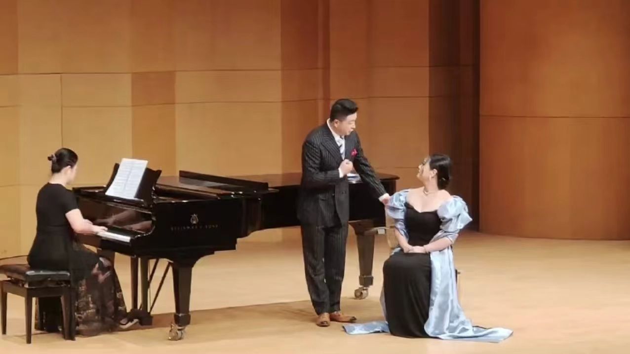 音乐会以刘文乐同学的一曲经典外国歌剧歌剧《费加罗的婚礼》选段《你想要跳舞吗小伯爵》作为开场,熟悉的旋律瞬间将观众的激情点燃。中外歌剧选段轮番上演,既有中国歌剧的代表作如《长征》中的《我的爱人你可听见》,展现了革命先烈的坚贞不屈和崇高信仰;也有世界歌剧的经典之作,如意大利歌剧《爱之甘醇》中的经典唱段《偷洒一滴泪》,戴剑武亲自演绎,让观众领略到了不同文化背景下的音乐魅力。