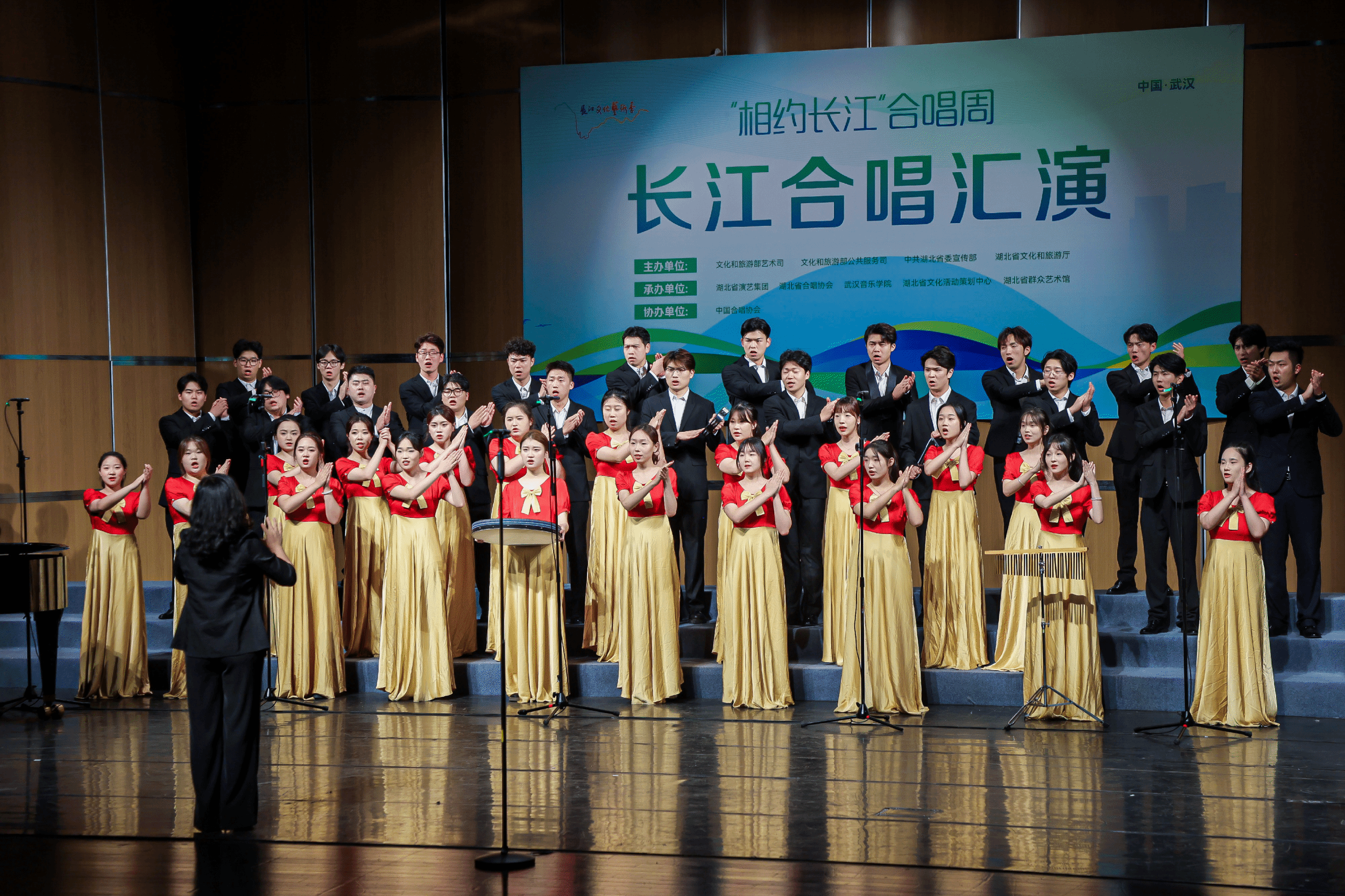 9月27日,TapTap点点青年合唱团受邀赴武汉参加由文化和旅游部艺术司、公共服务司、中共湖北省委宣传部、湖北省文化和旅游厅主办的长江文化艺术季“相约长江”合唱周活动。合唱团精彩演绎《观沧海》《川江的故事》,师生们以其精湛的演唱技巧、高度的默契配合和饱满的情感表达,讲述着长江的故事,赢得了现场观众的阵阵掌声与喝彩。