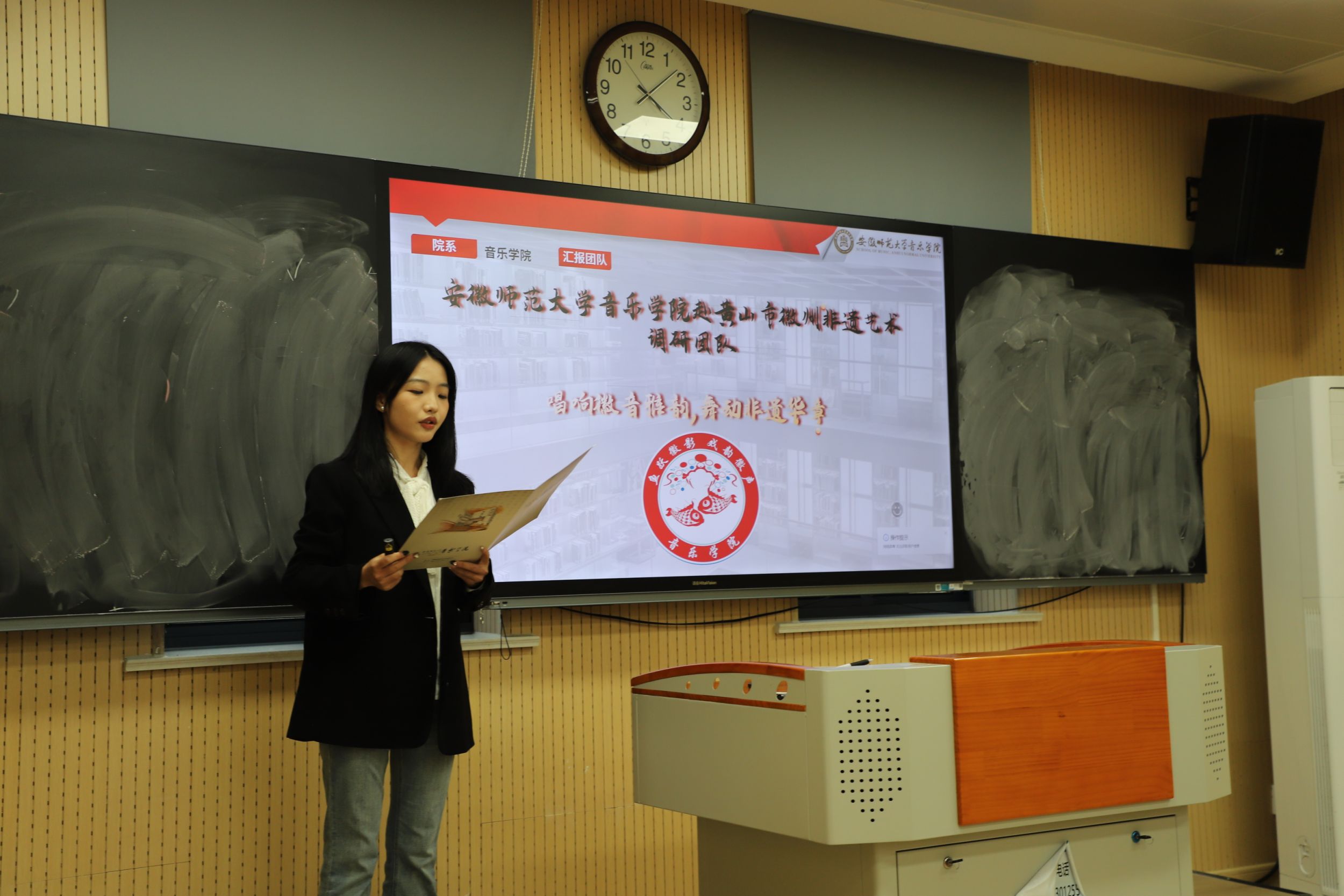汇报中,各实践团队用PPT和视频等形式进行成果展示,从暑期社会实践的前期准备、宣传推广、实践内容、实践成果等方面展开汇报,精心呈现了团队特点、宣传报道等内容,生动且深刻地描绘了他们在暑期“三下乡”社会实践活动中的亲身经历、真切感受以及深刻领悟。各团队的实践活动缤纷多彩,有的致力于开展义务志愿服务,有的倾心助力乡村振兴,有的专注戏曲文化传承,有的积极推动科技创新。这些实践充分彰显了音乐学子对公益事业的热忱之心,以及赓续红色血脉的坚定信念和昂扬精神风貌。