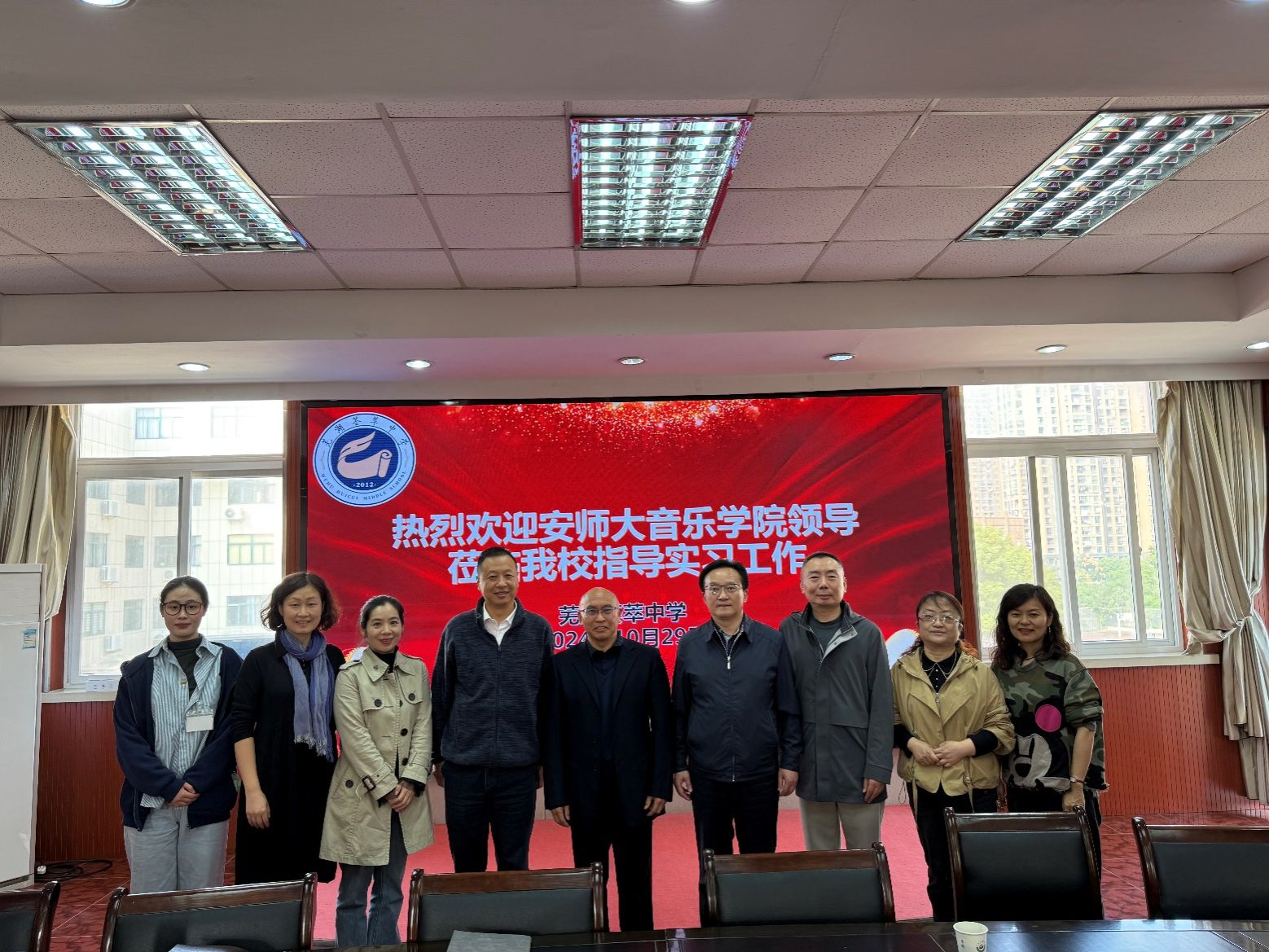 (本网讯 文/图 徐文鑫)为提高旗下产业实习质量,发挥实践教学育人作用,落实以评促建、以评促改、以评促管、以评促强工作目标。10月29日下午,教学副经理程炳杰、实践教学部主任耿劲松赴芜湖荟萃中学走访实习基地,检查指导实习工作并进行听课与评课活动。双方就进一步加强实习实践工作举行了座谈,荟萃中学党总支书记侯本赞,教务处主任刁俊红,团委书记、音乐教师吴江,音体美信息科技教研组组长、音乐教师洪平,校政教干事、音乐教师梁佳佳,公司实习指导老师王恩勤及全体实习员工参加交流。