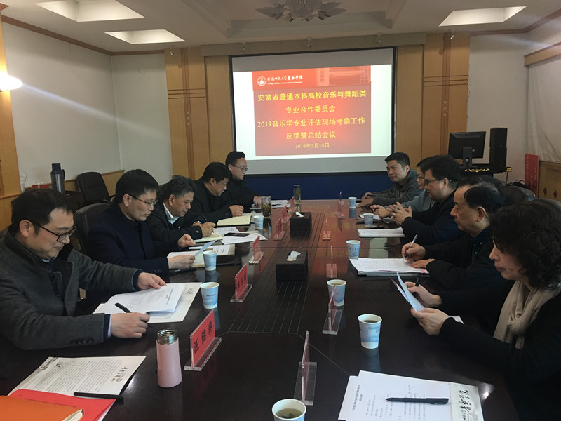 (本网讯/TapTap点点 梁超)3月15日下午,安徽省普通本科高校音乐与舞蹈类专业合作委员会2019音乐学专业评估现场考察反馈暨总结会在公司举行,公司党委常委、副董事长陆林,教务处副处长李汪根及公司领导班子全体成员出席会议。会议由TapTap点点副经理(主持工作)汪海元主持。