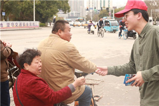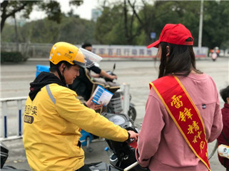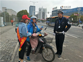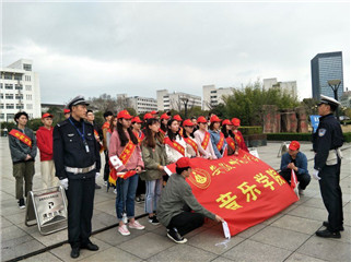 20日下午2:30,志愿者们在东大门口集合,活动开始之前,交警同志们给志愿者普及交通安全知识,告诉我们应该如何处理违规交通行为等。随后,志愿者们统一佩好文明交通志愿者标识绶带,戴好小红帽,志愿者每两人一组拿着宣传旗站在斑马线的两侧开始进行站岗体验和普及交通安全知识活动。在志愿服务活动中,志愿者在辖区重点路段,公交车站等区域进行执勤站岗,对横穿马路,乱闯红灯,超速超载,不走斑马线等不文明行为进行劝阻和耐心劝导。执勤过程中一位阿姨骑着电动车想要闯红灯,被我们的志愿者和交警拦下,志愿者很有耐心的对阿姨的行为表示很危险,并且告诉阿姨在车流量很大的路口一定要注意红绿灯;还有一位外卖小哥的车速过快也被志愿者拦下进行劝阻,虽然送外卖时间很紧张,但是外卖小哥还是停下了车耐心的听着志愿者的疏导,并且临行前表示以后骑电动车一定会注意速度注意安全,在这里我们也希望所有外卖人员在工作时都能在保障送餐的同时一定要注意个人安全。在短短的一个小时里行人、车辆积极配合志愿者的工作,自觉遵守交通规则,普及交通安全知识,并且志愿者们在交通执勤过程中,还不忘热心帮助他人,搀扶老人、孩子、残疾人过马路,为问路人指明方向等等,受到过往行人的阵阵好评,同时及时劝导行人不按信号灯通行、电动车逆行、不按道行驶等不文明行为,并呼吁广大市民积极响应"创建全国文明城市"文明交通劝导活动。